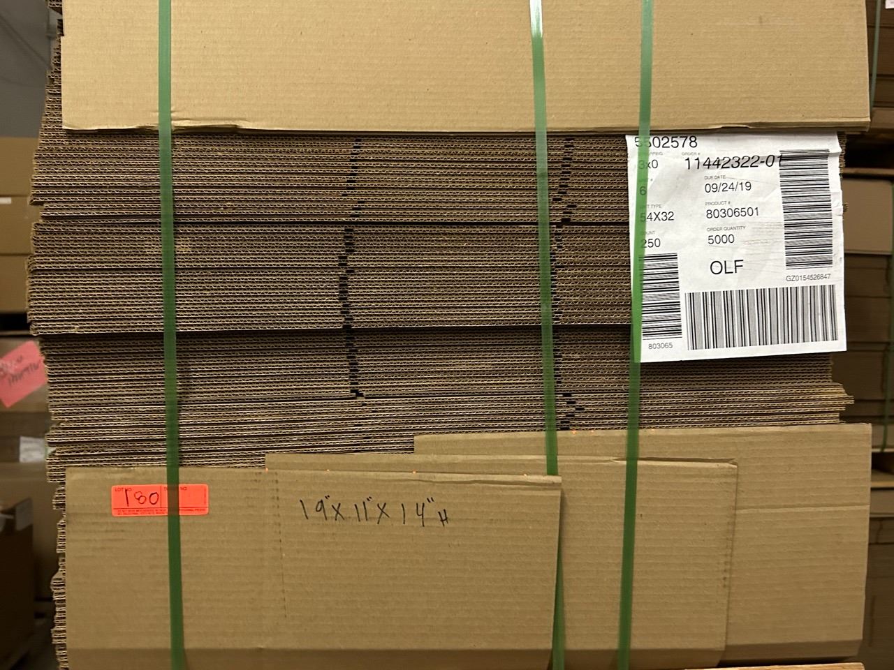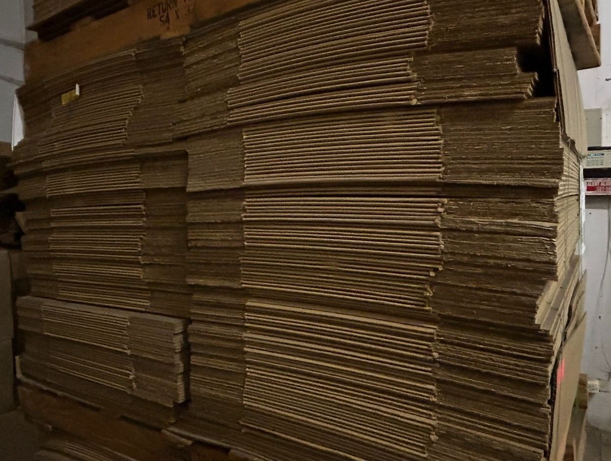 Qty 250 Unused Cardboard Boxes w/ Ed & Don's Logo 19 x11 14 H (all strapped onto 1 pallet)