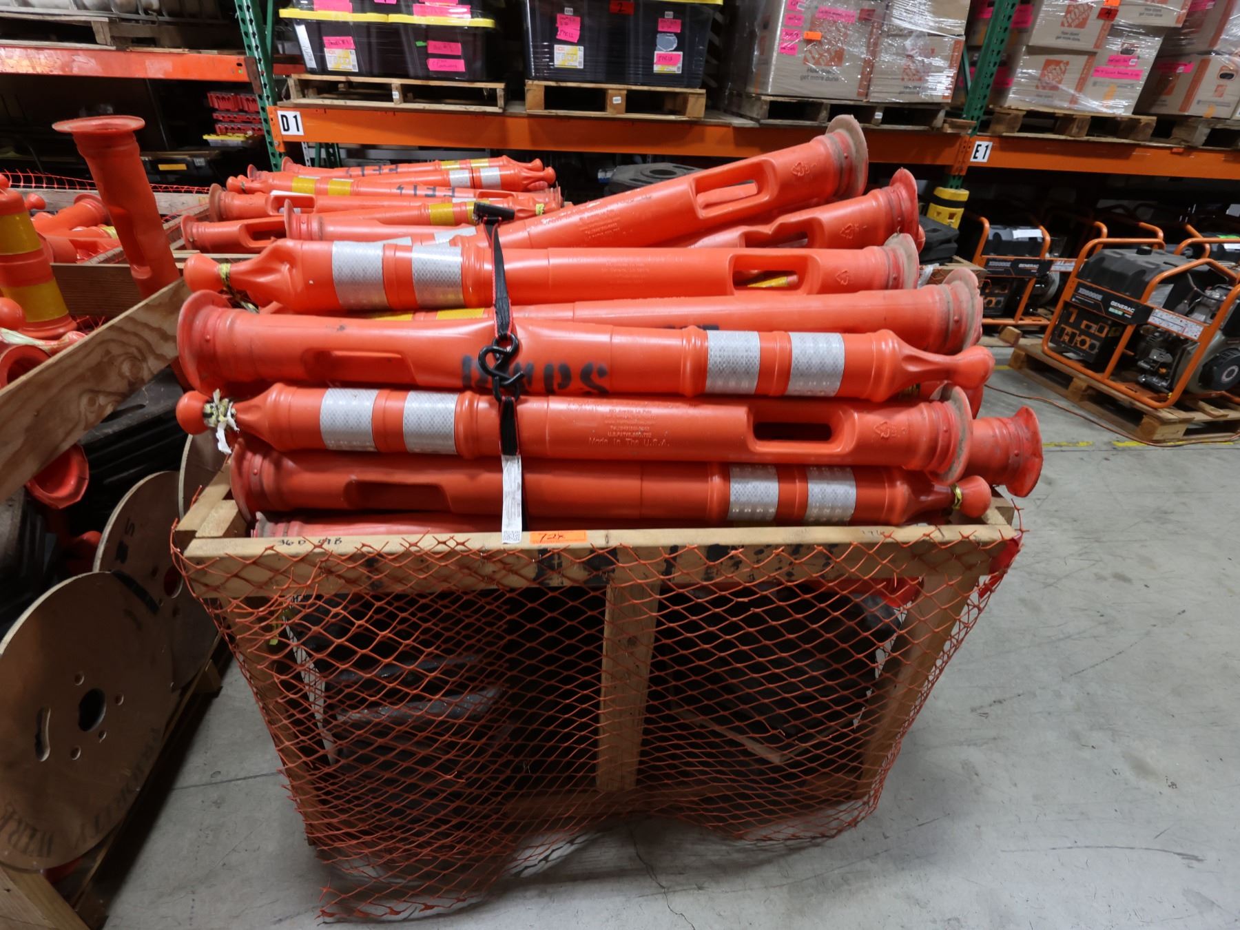 Qty 252 Traffic Safety Delineator Bases (misc thickness) & 176 Orange Posts