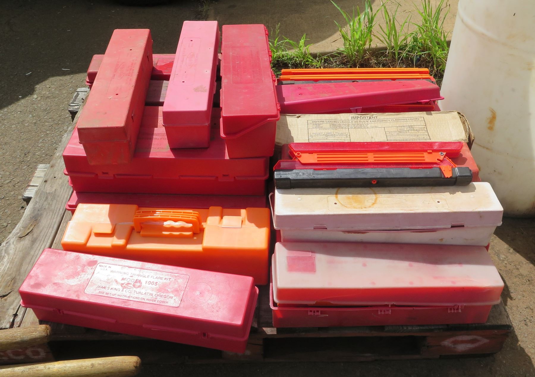 Qty 26 Folding Emergency Triangle Highway Warning Kits in Plastic Cases