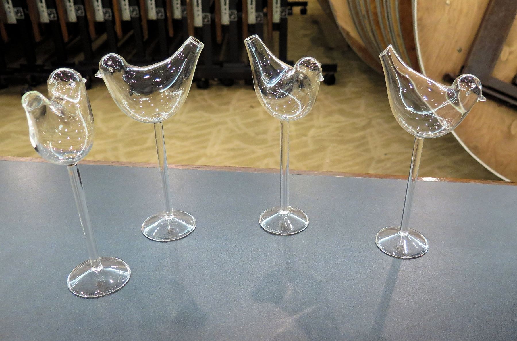 Qty 28 Glass Bird Glasses w/ Stem Pedestal Base. Winning Bidder needs to bring boxes to pack and transport