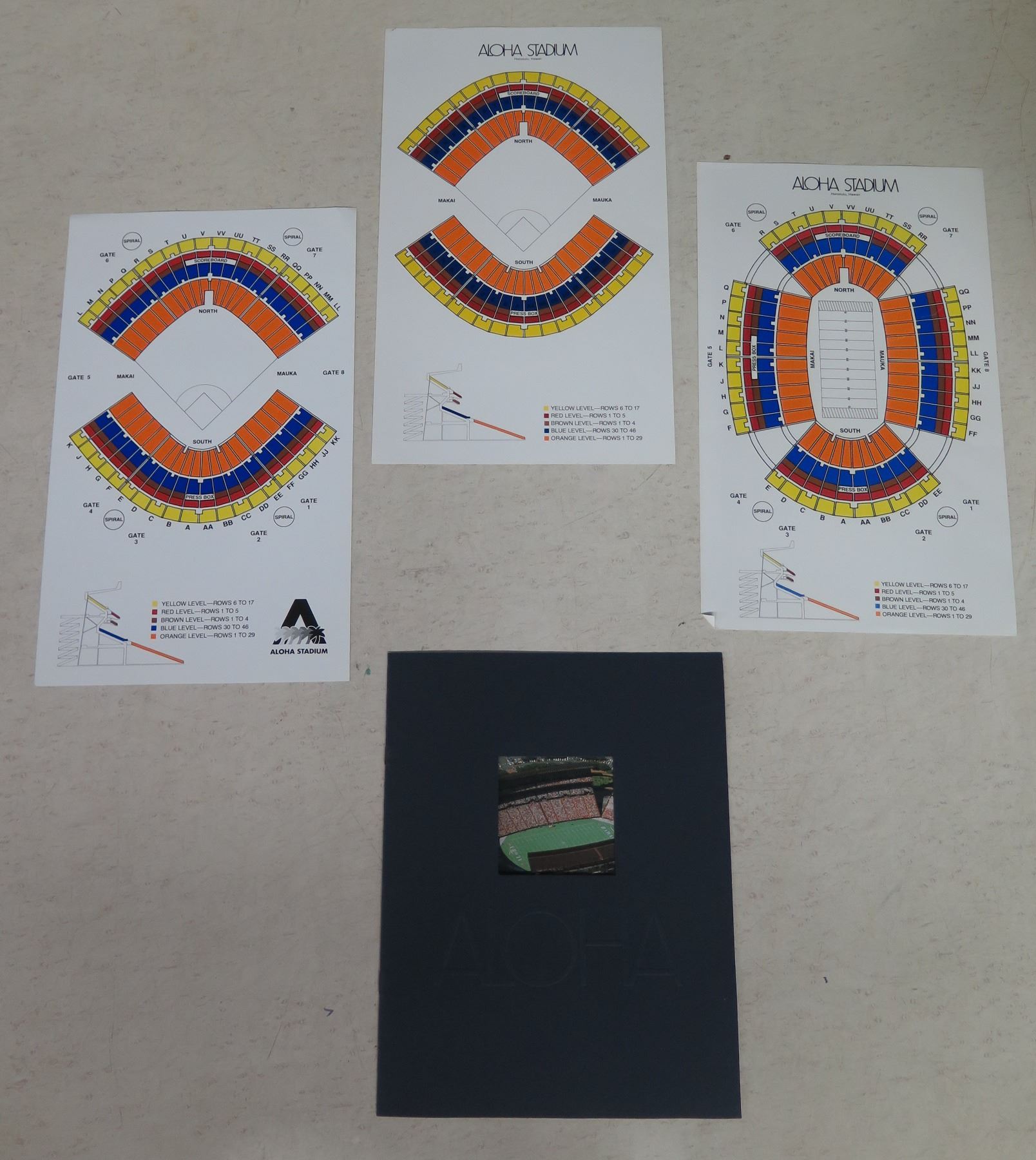 Qty 3 Aloha Stadium Seating Charts in Different Configurations 9"x14" & Information Folder. This is a stock photo that is generally representative of the item(s) in this auction lot. Conditions may vary.