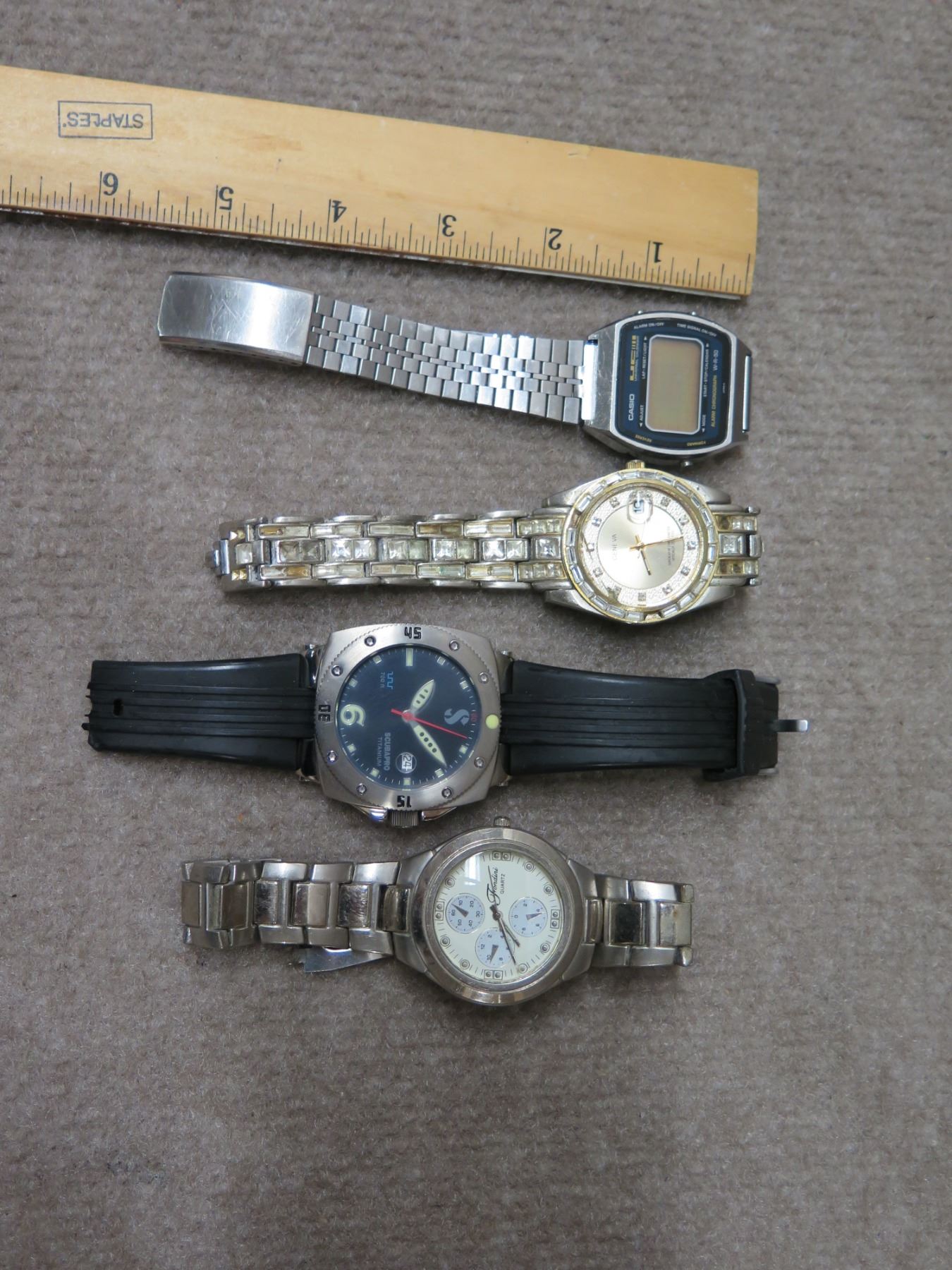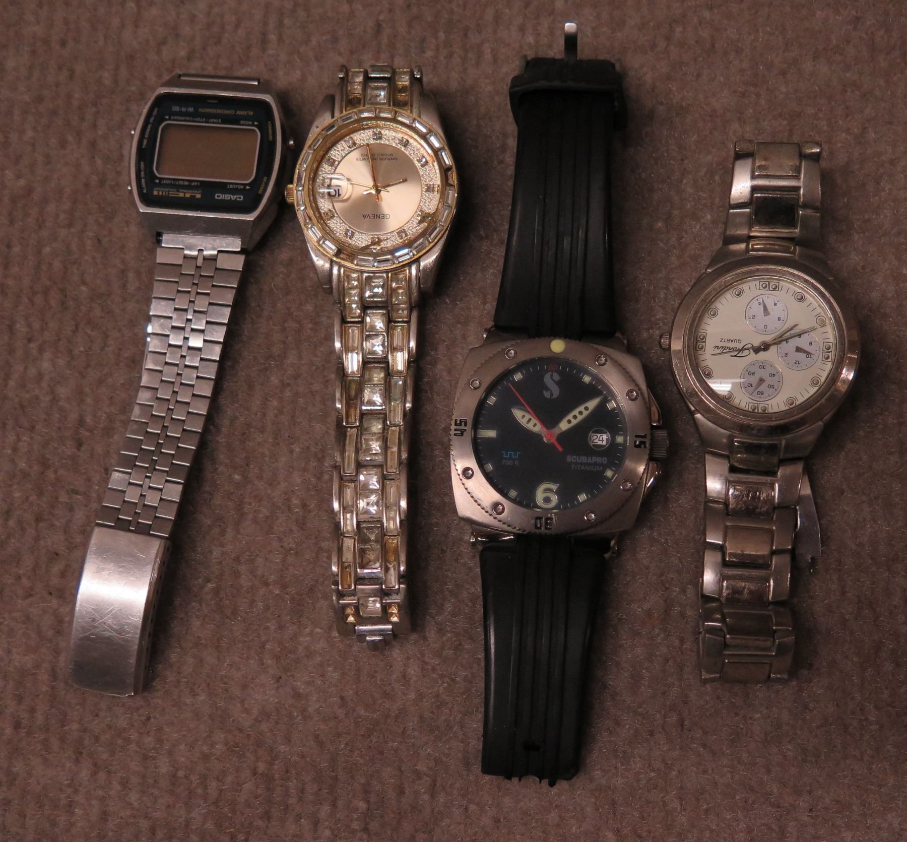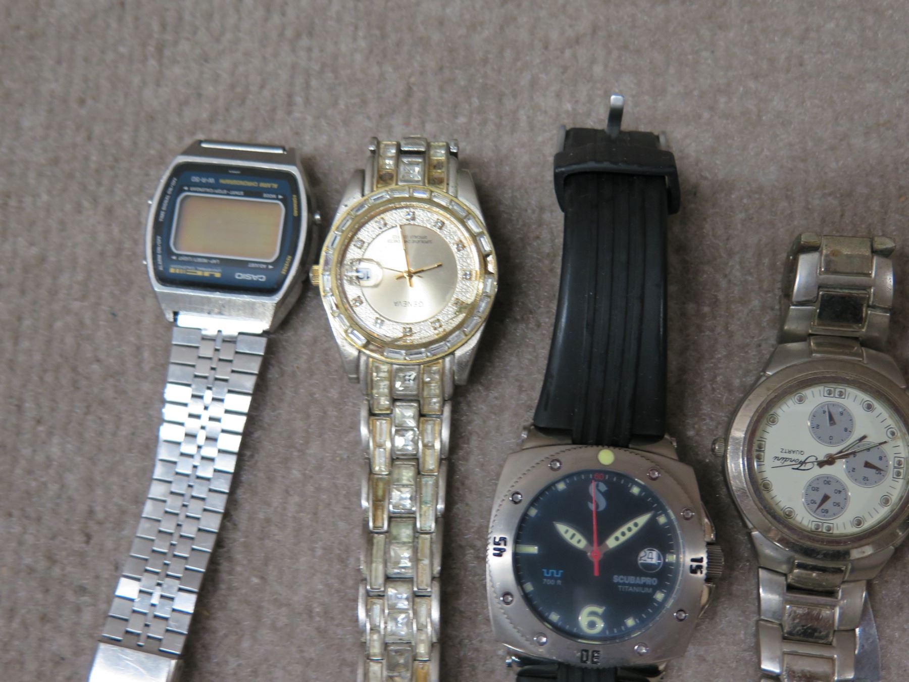 Qty 3 Analog Watches - 2 w/ Metal Straps, 1 ScubaPro & 1 Digital w/ Metal Strap