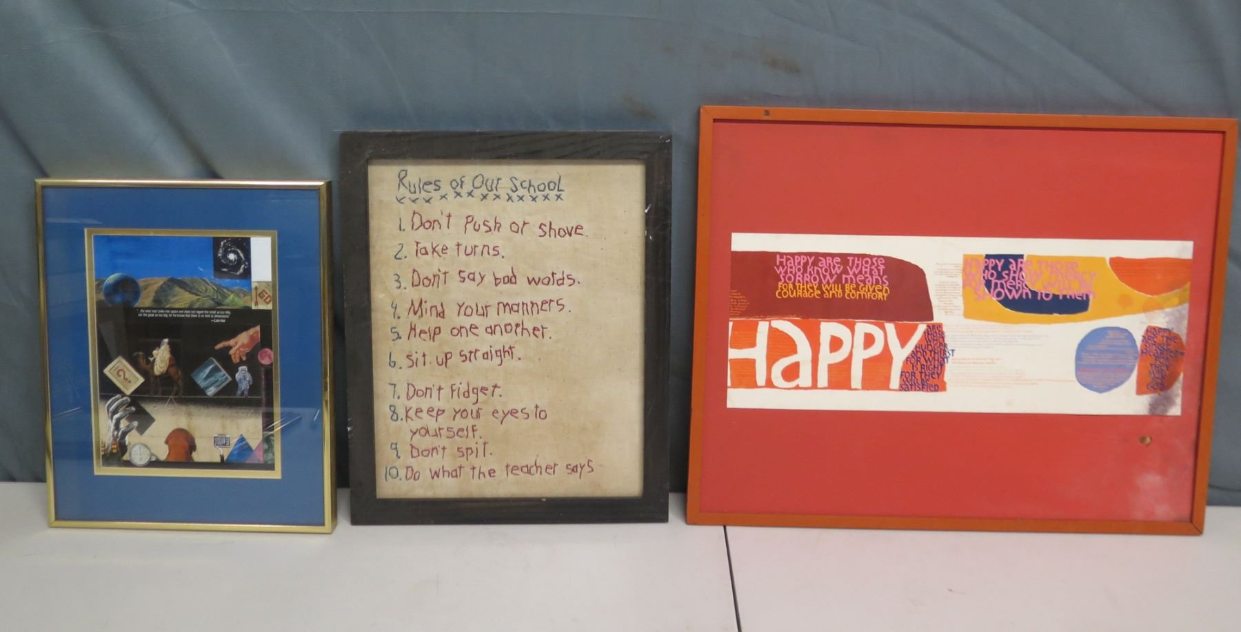 Qty 3 Artworks: Happy Quote, School Rules & Lao-Tse Collage, Misc Sizes