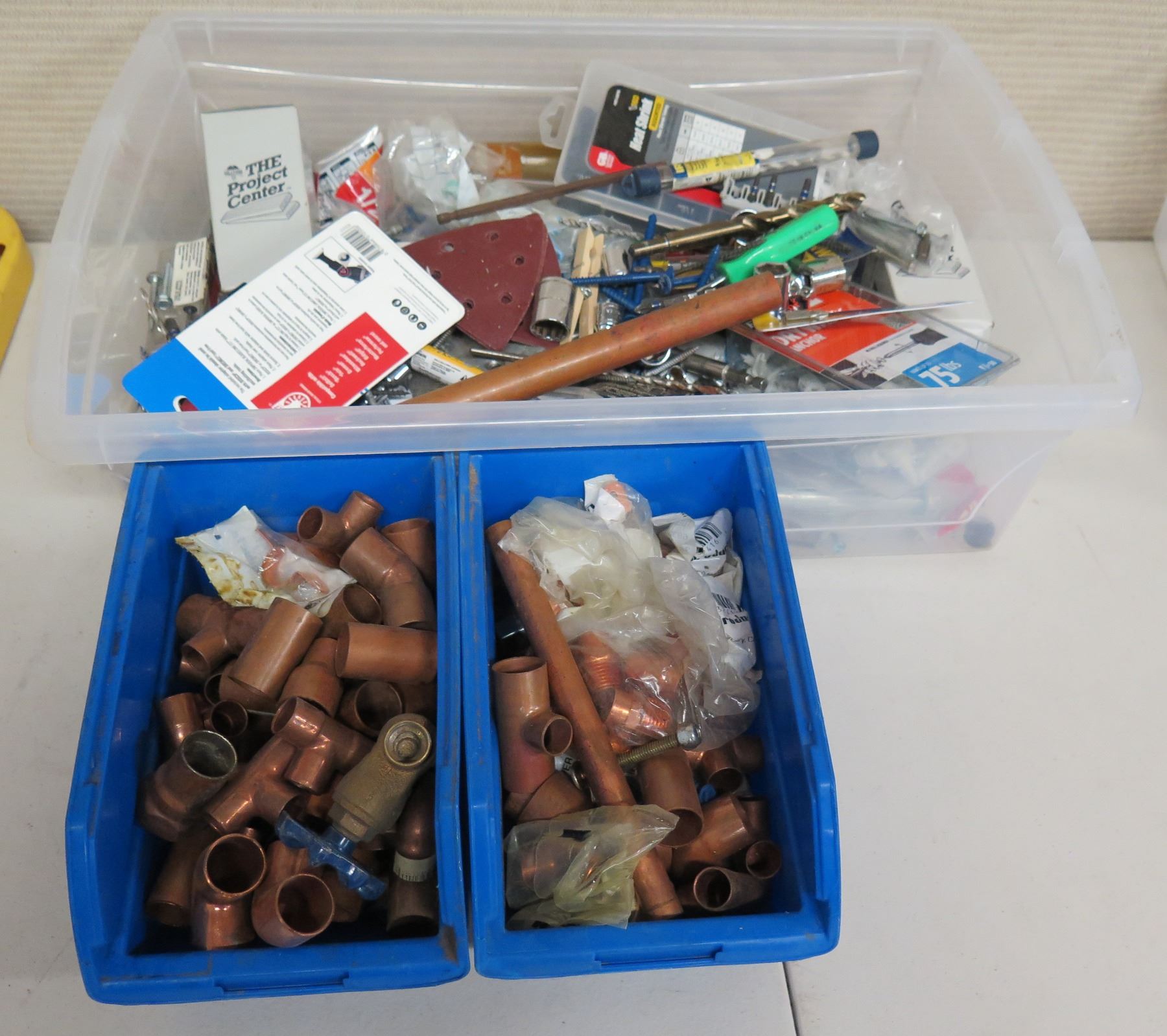 Qty 3 Bins Hardware: Tools, Fittings, Elbows, Bolts, Heat Shrink, etc