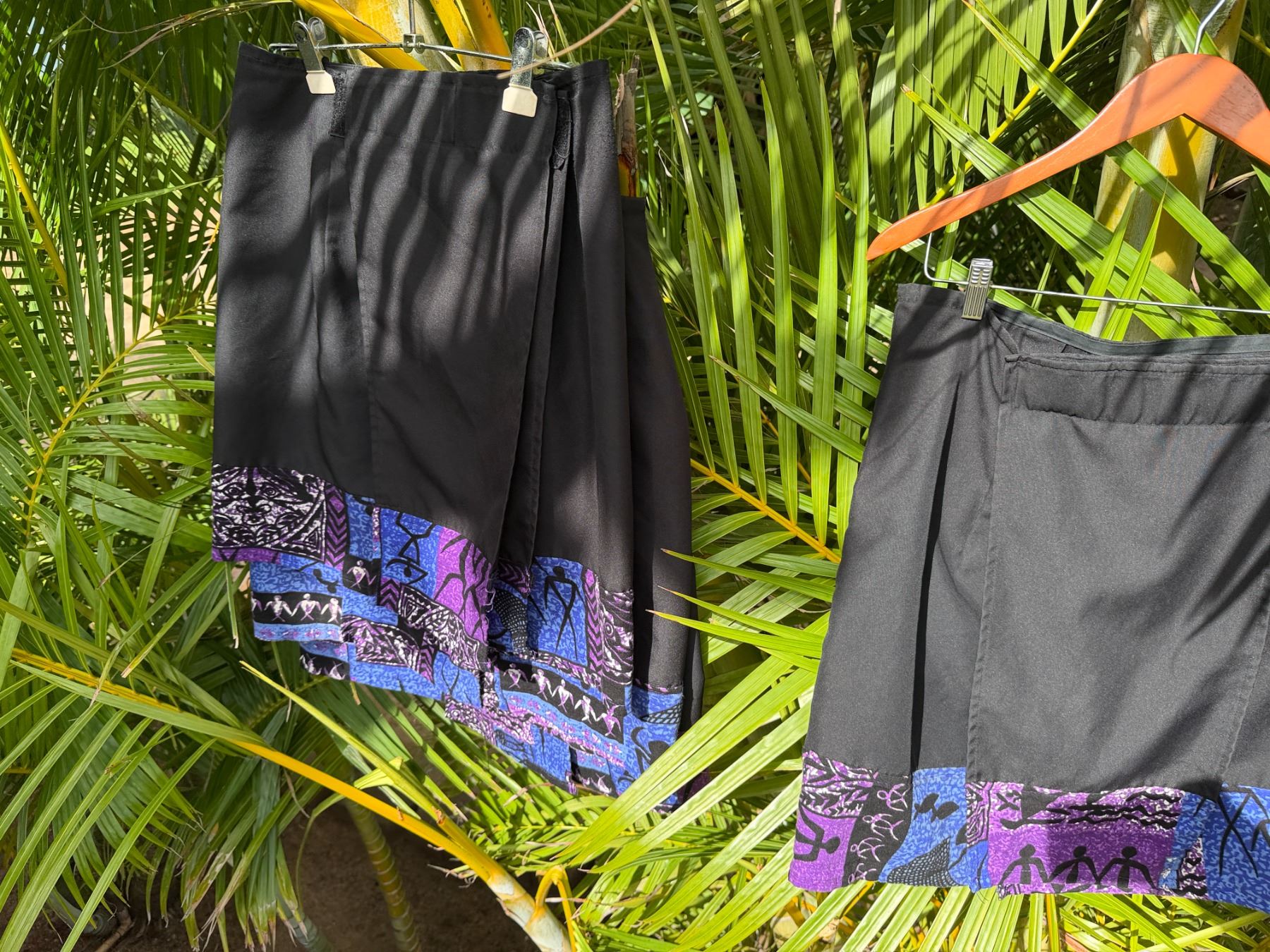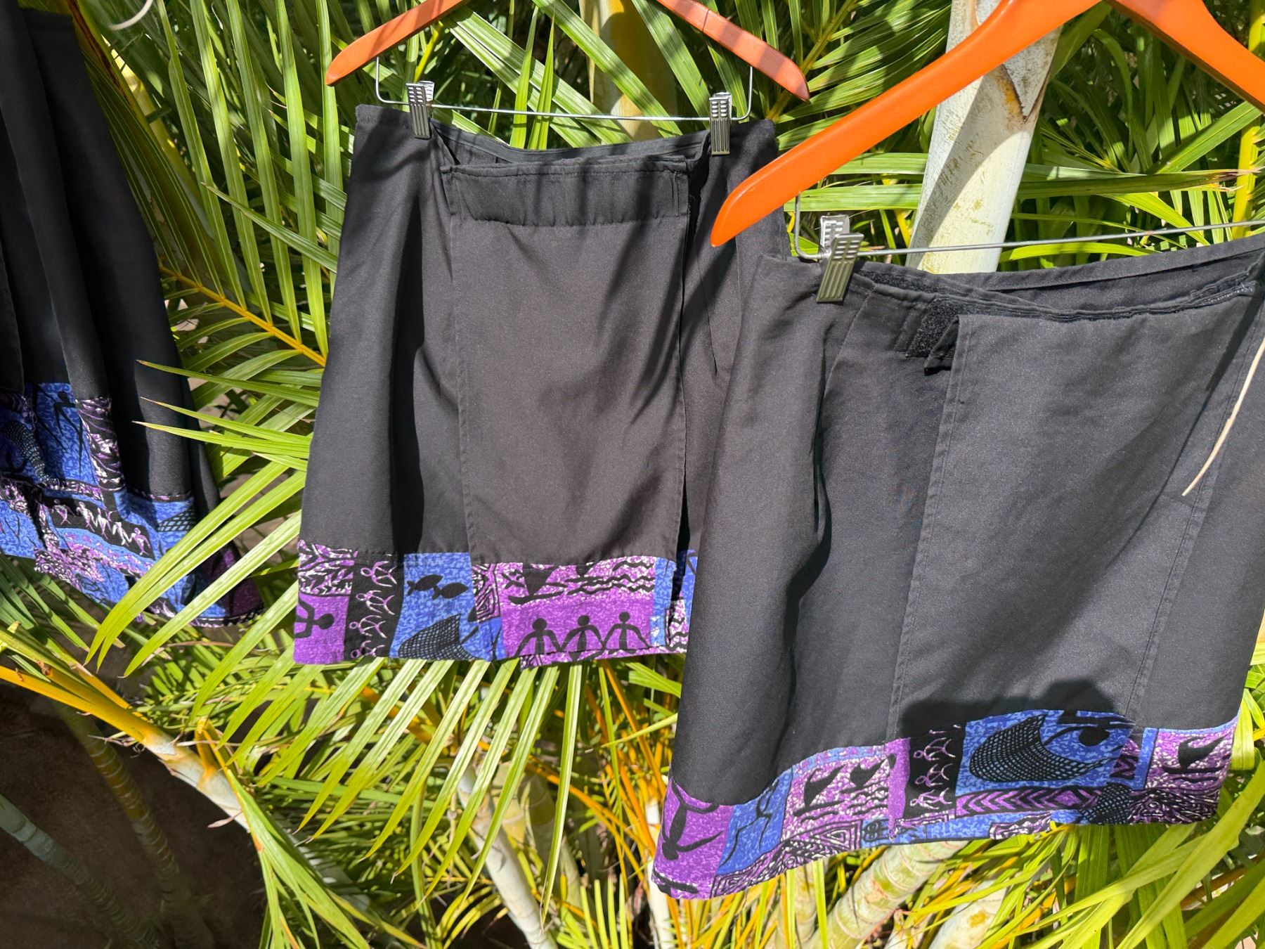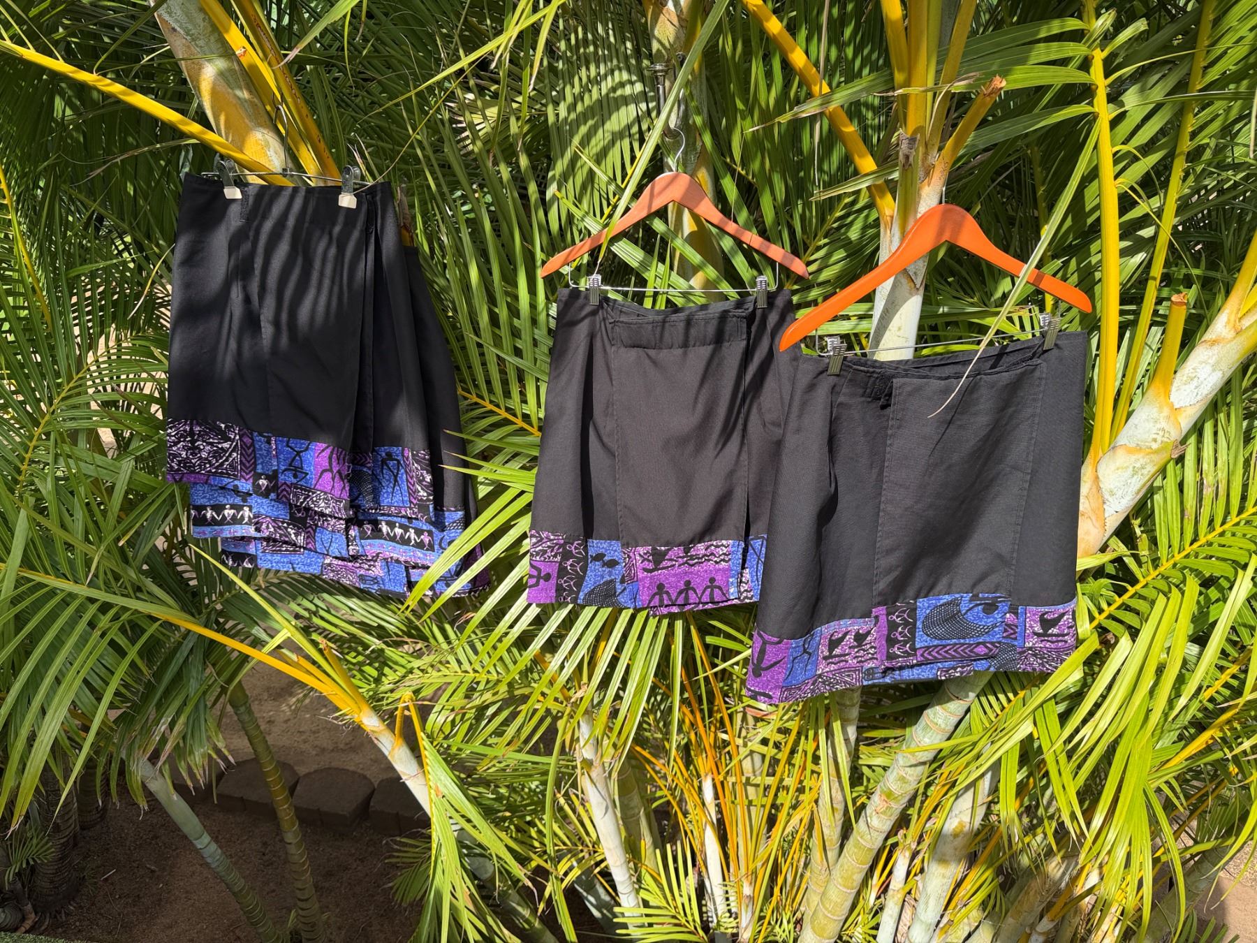 Qty 3 Black Skirts w/ Purple Tapa Edges