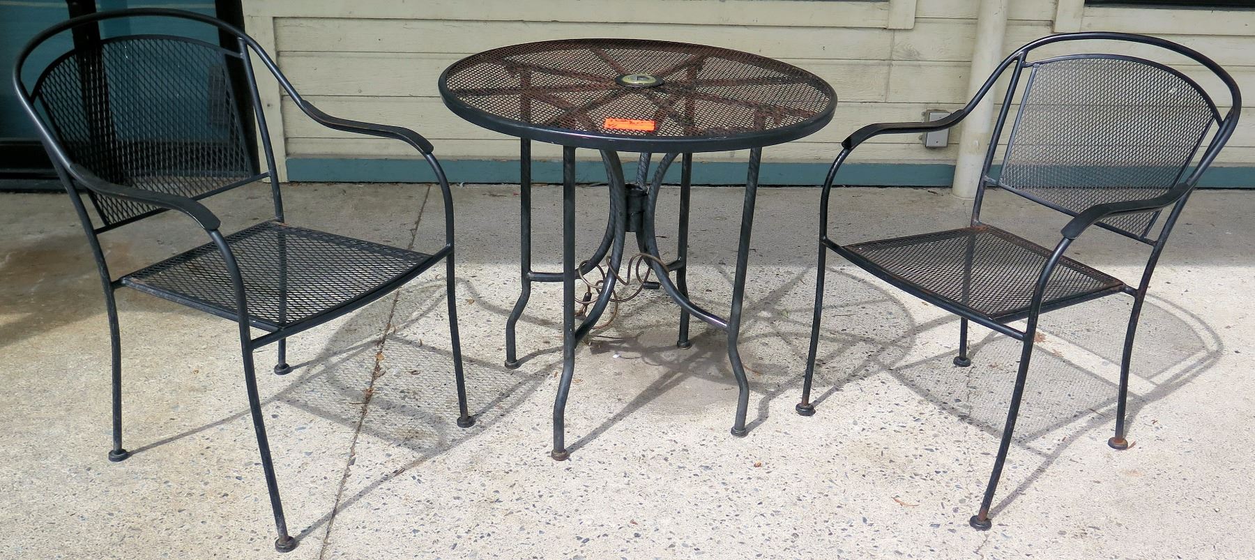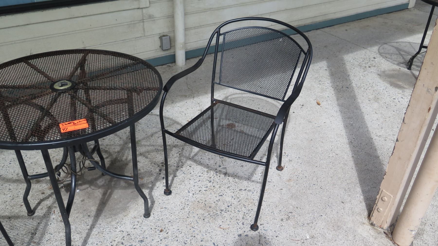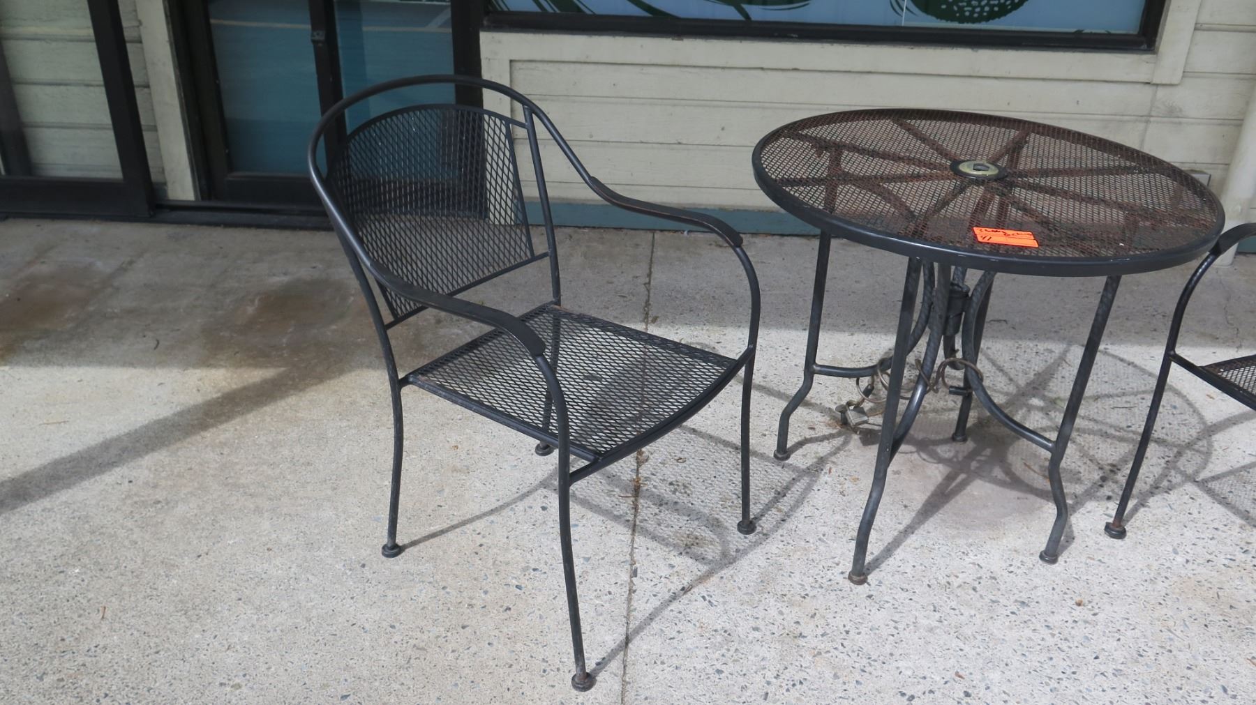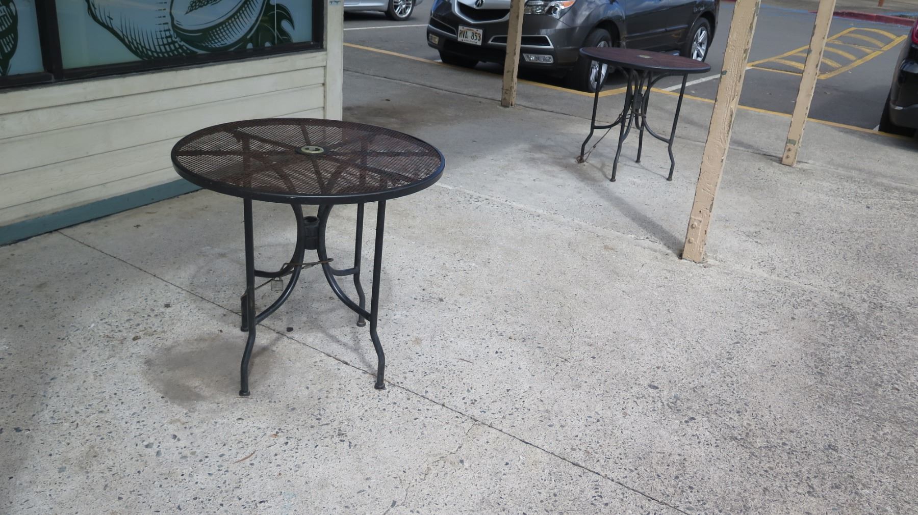 Qty 3 Black Wrought Iron 30" Outdoor Tables & 6 Matching Chairs