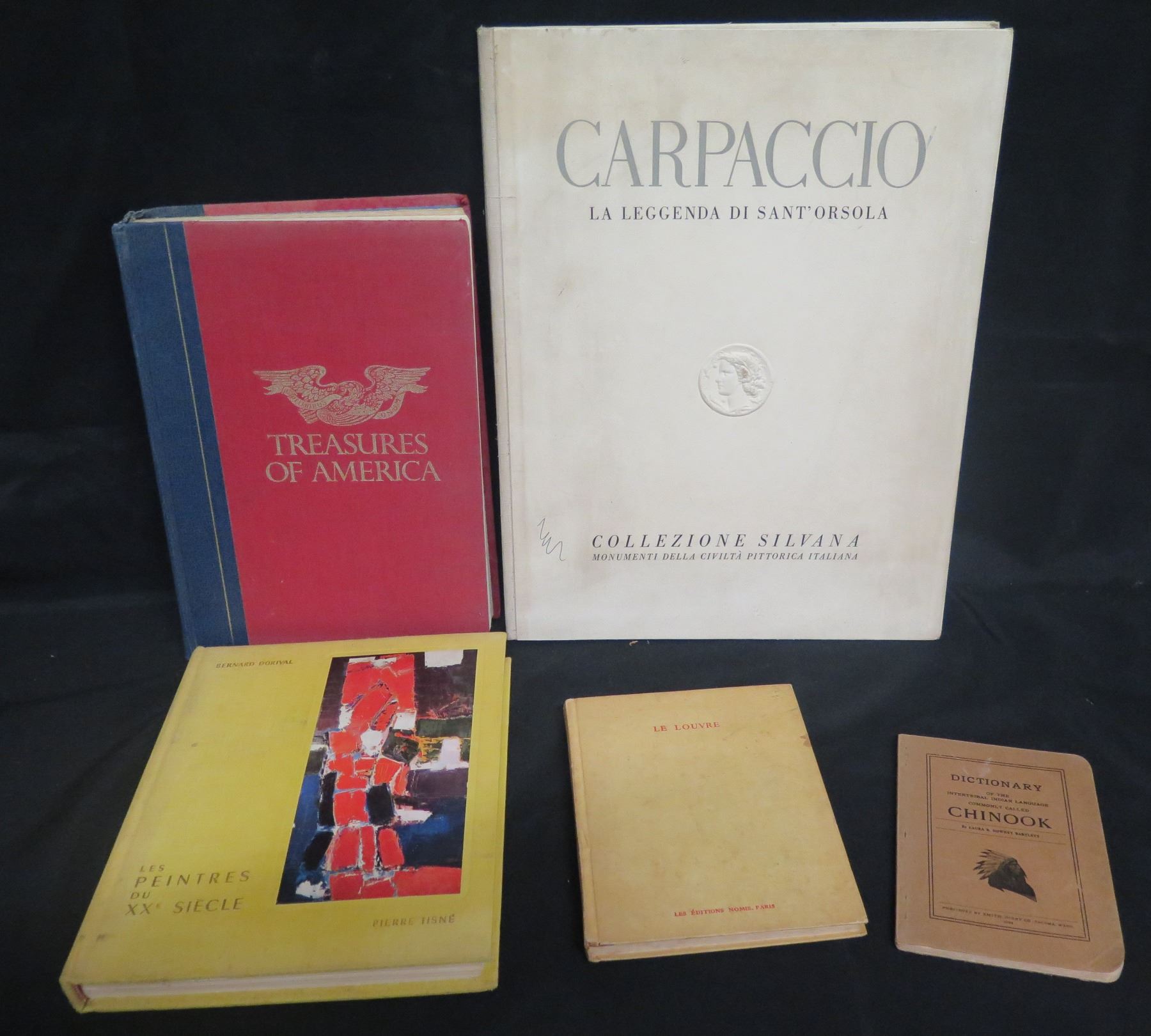 Qty 3 Books: Carpaccio, Treasures of America, Le Louvre, Chinook Dictionary, etc