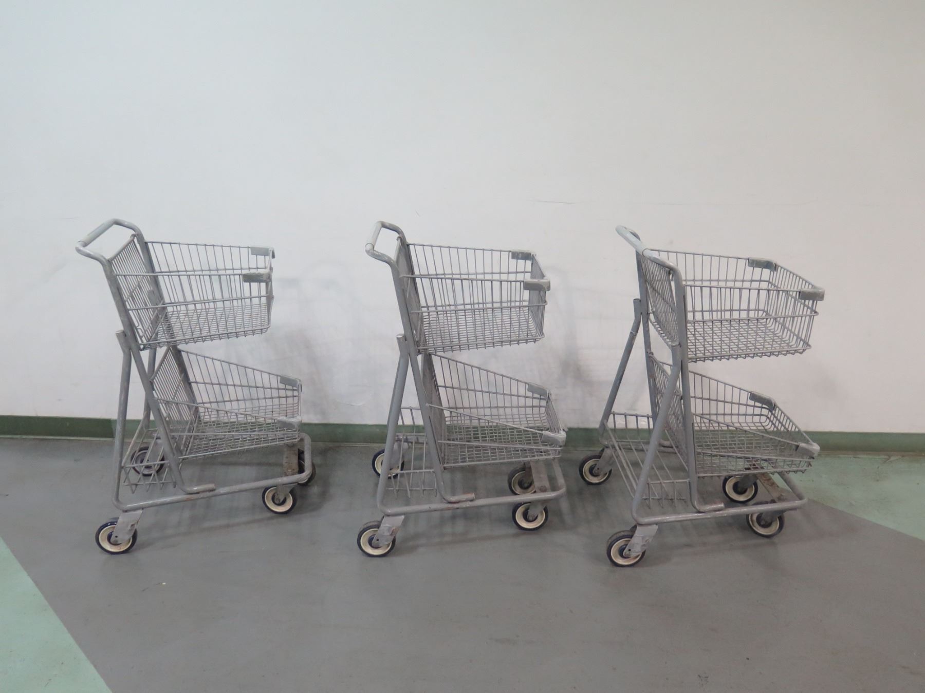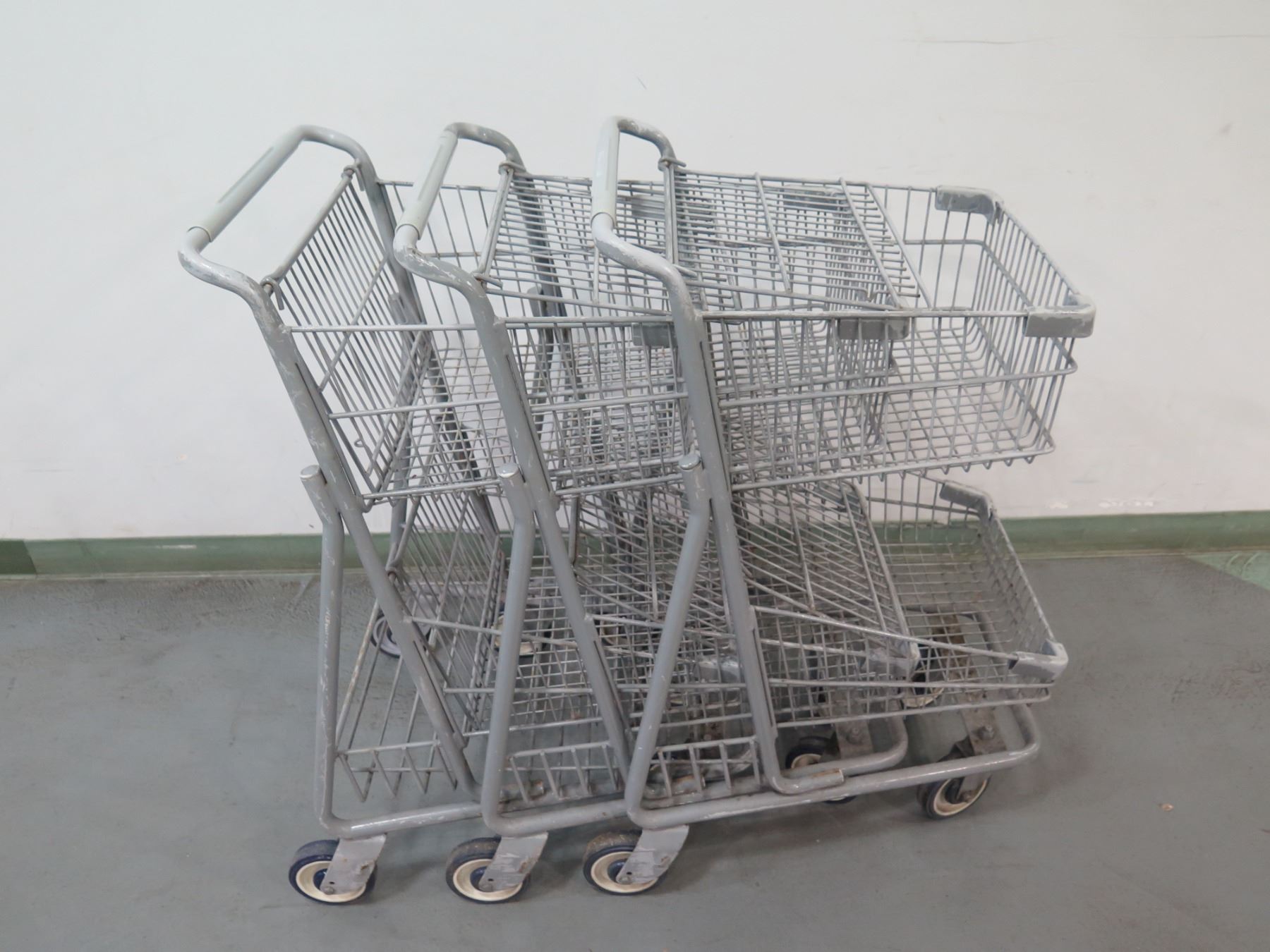 Qty 3 Cari-All Double Basket Express Shopping Carts. These are stock photos, representative of item. Condition may vary.