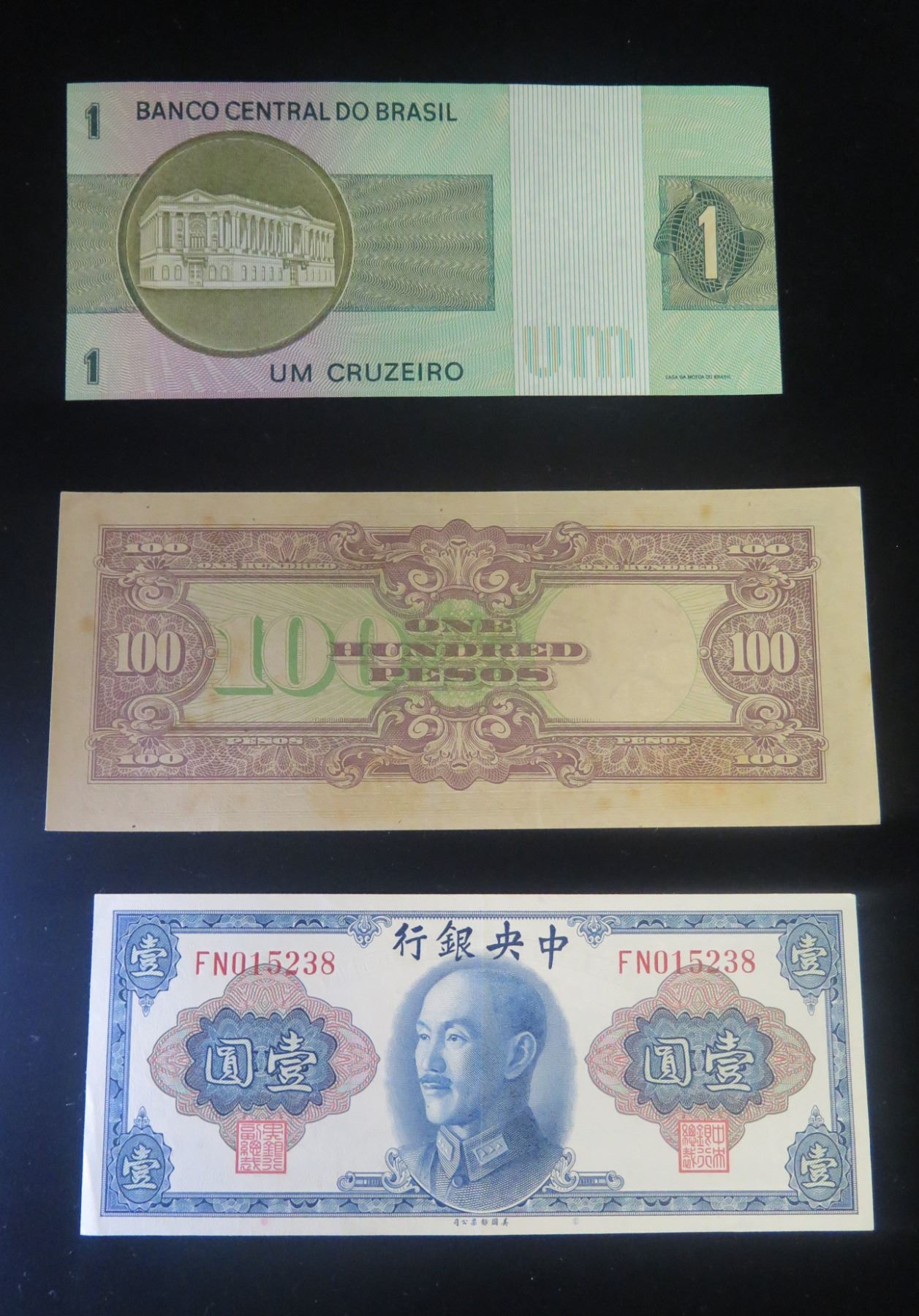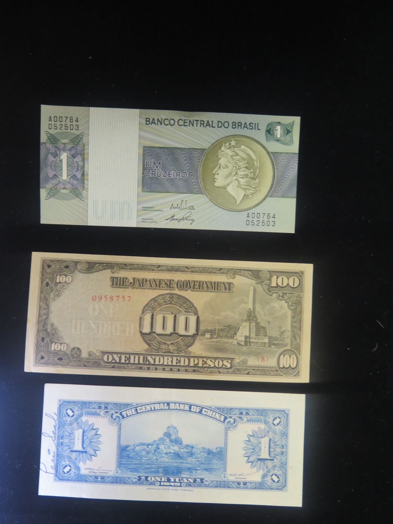 Qty 3 Collectible Bills Banco Central Do Brasil, Japanese Government & Central Bank China