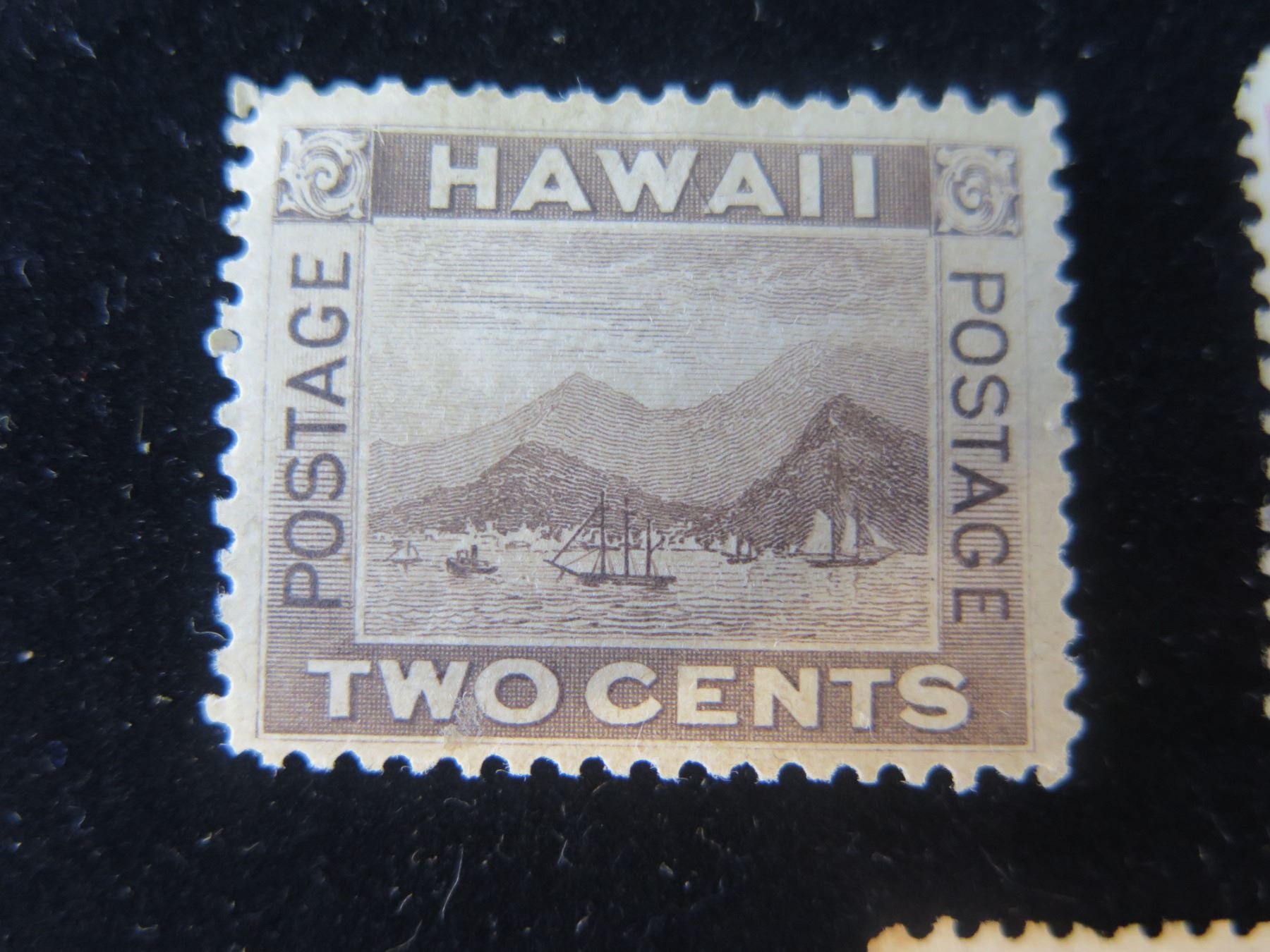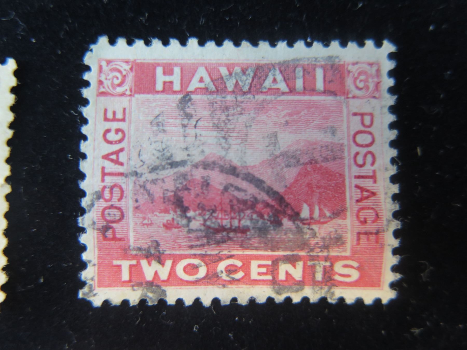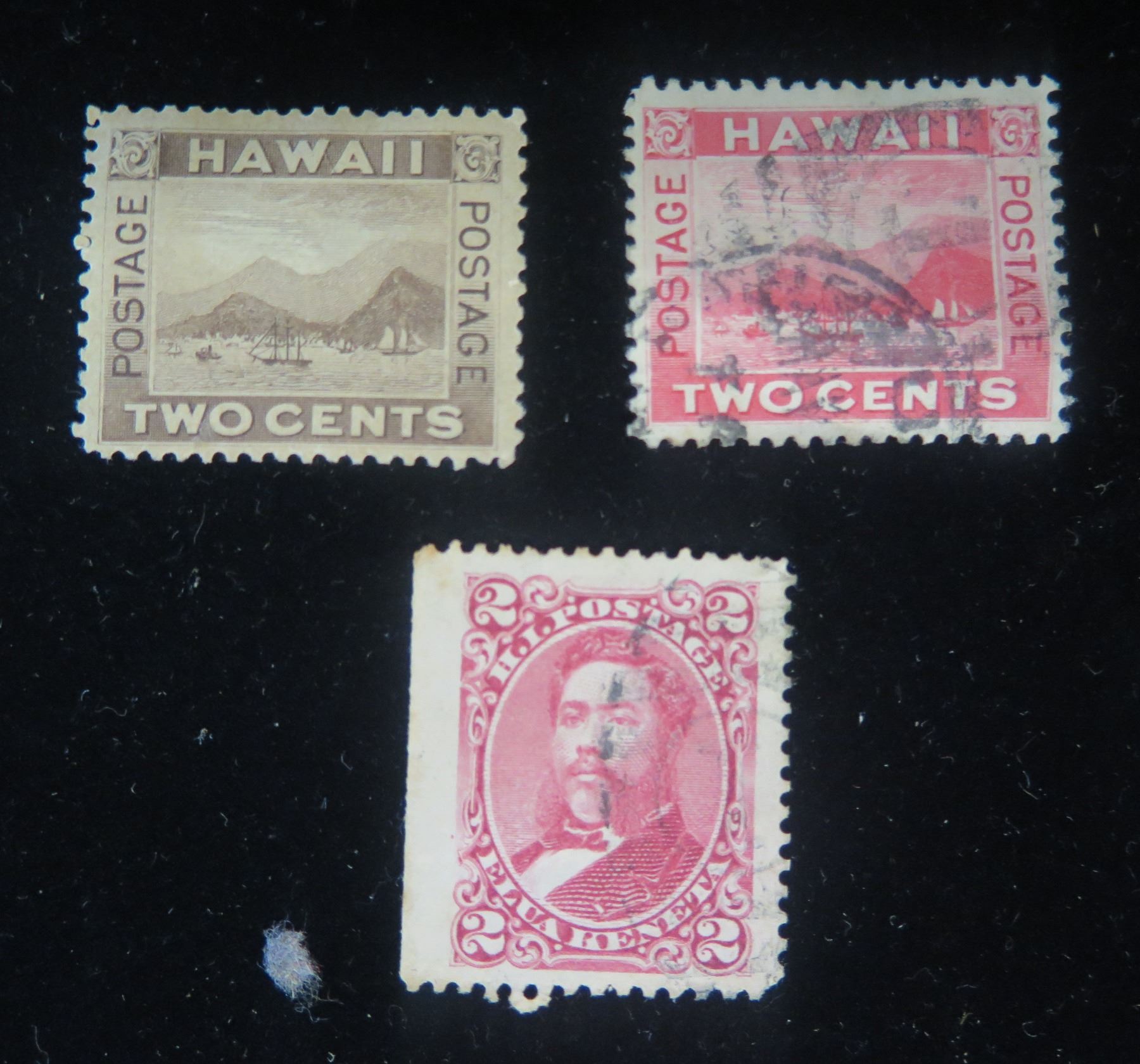 Qty 3 Collectible Hawaii Stamps: Elua Keneta & 2 @ Two Cents Sailing Scene - 1 Stamped