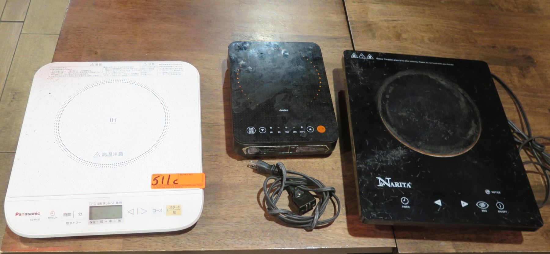 Qty 3 Cooktops: Panasonic KZ-PH31, Dretec DI-214 & Narita NT-8000