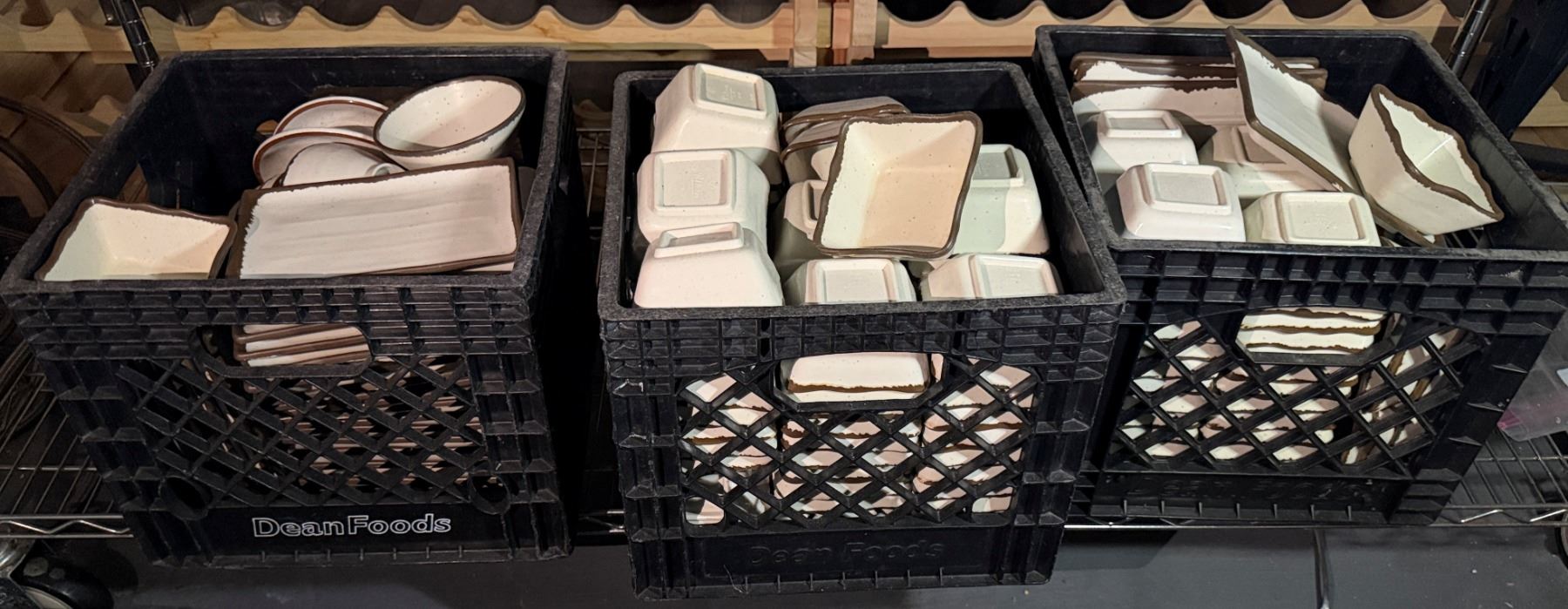 Qty 3 Crates Misc Bowls, Ramekins, Ceramic Trays, etc Misc Sizes