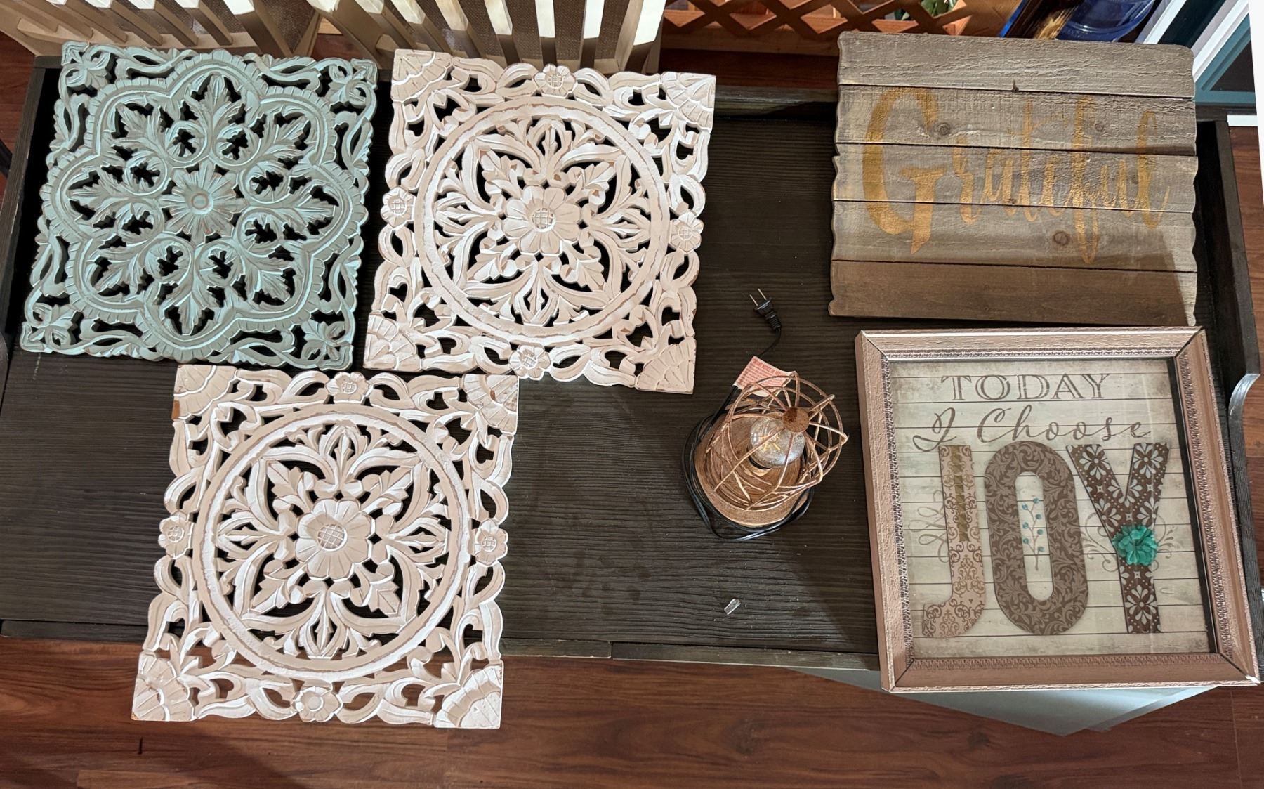 Qty 3 Cut-Out Trivets, Grateful & Joy Artwork, Table Lamp, Misc Sizes