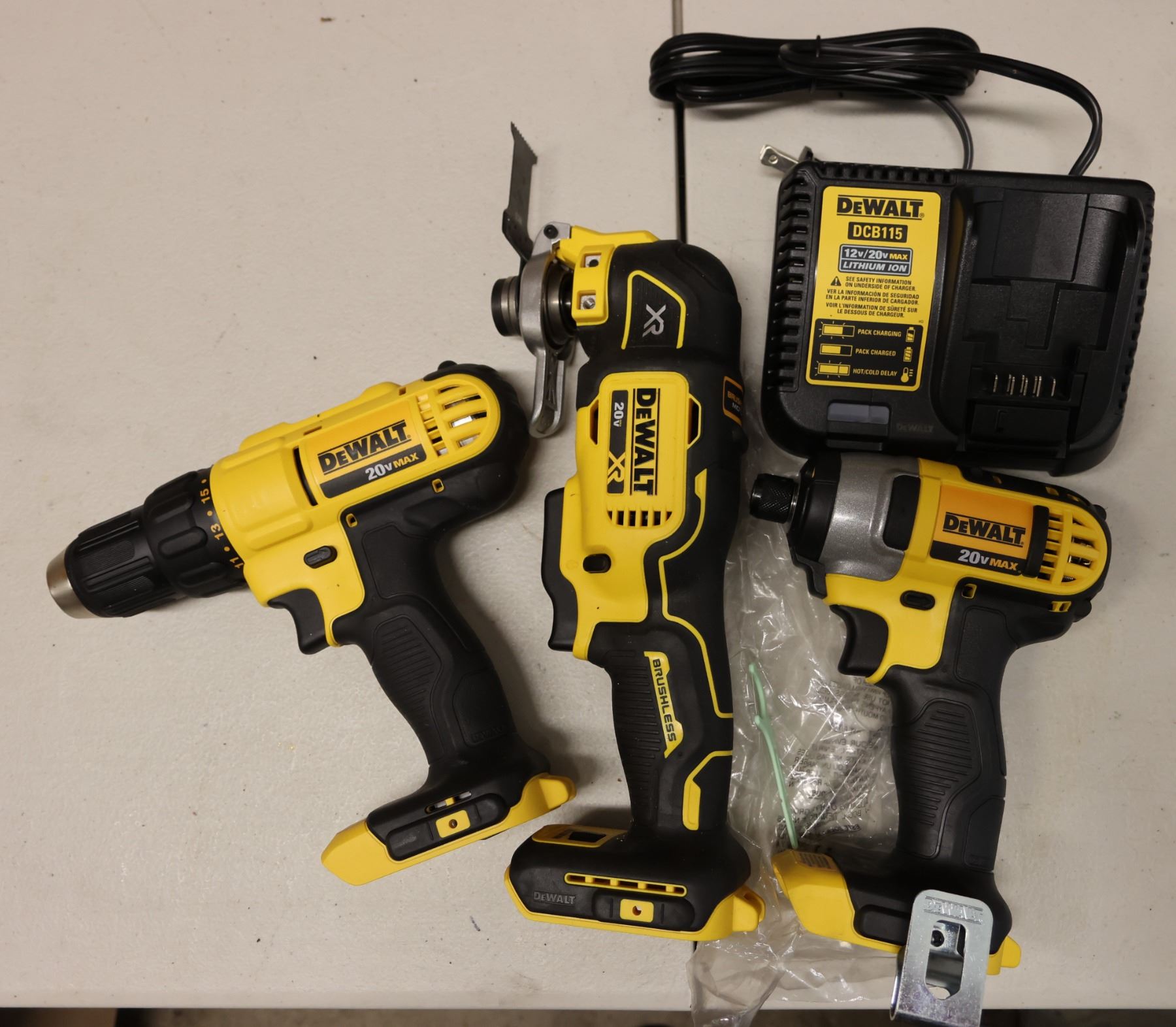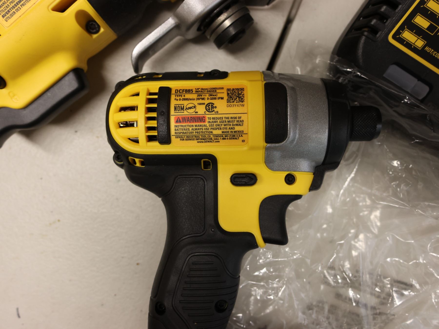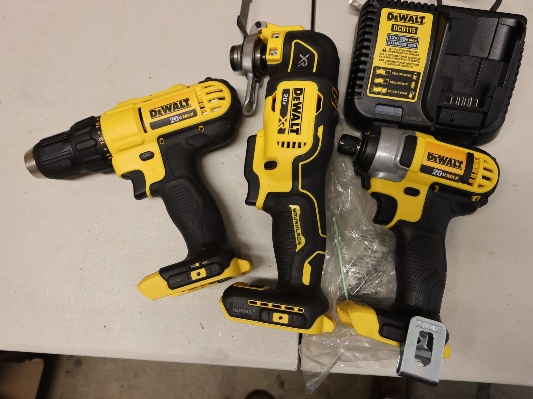 Qty 3 DeWalt Power Tools & 1 Charger: DCS356 Multi-Tool, DCF885 Impact Driver & DCD771 Drill Driver