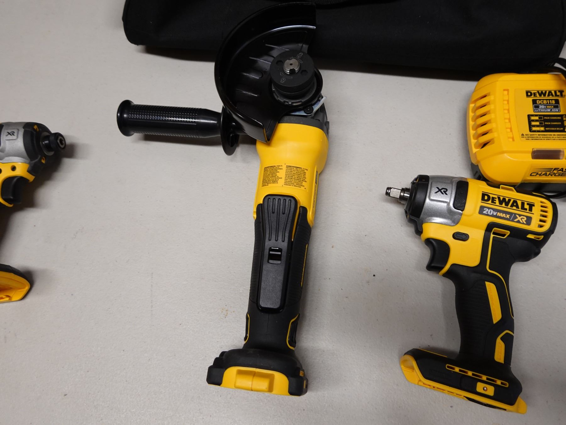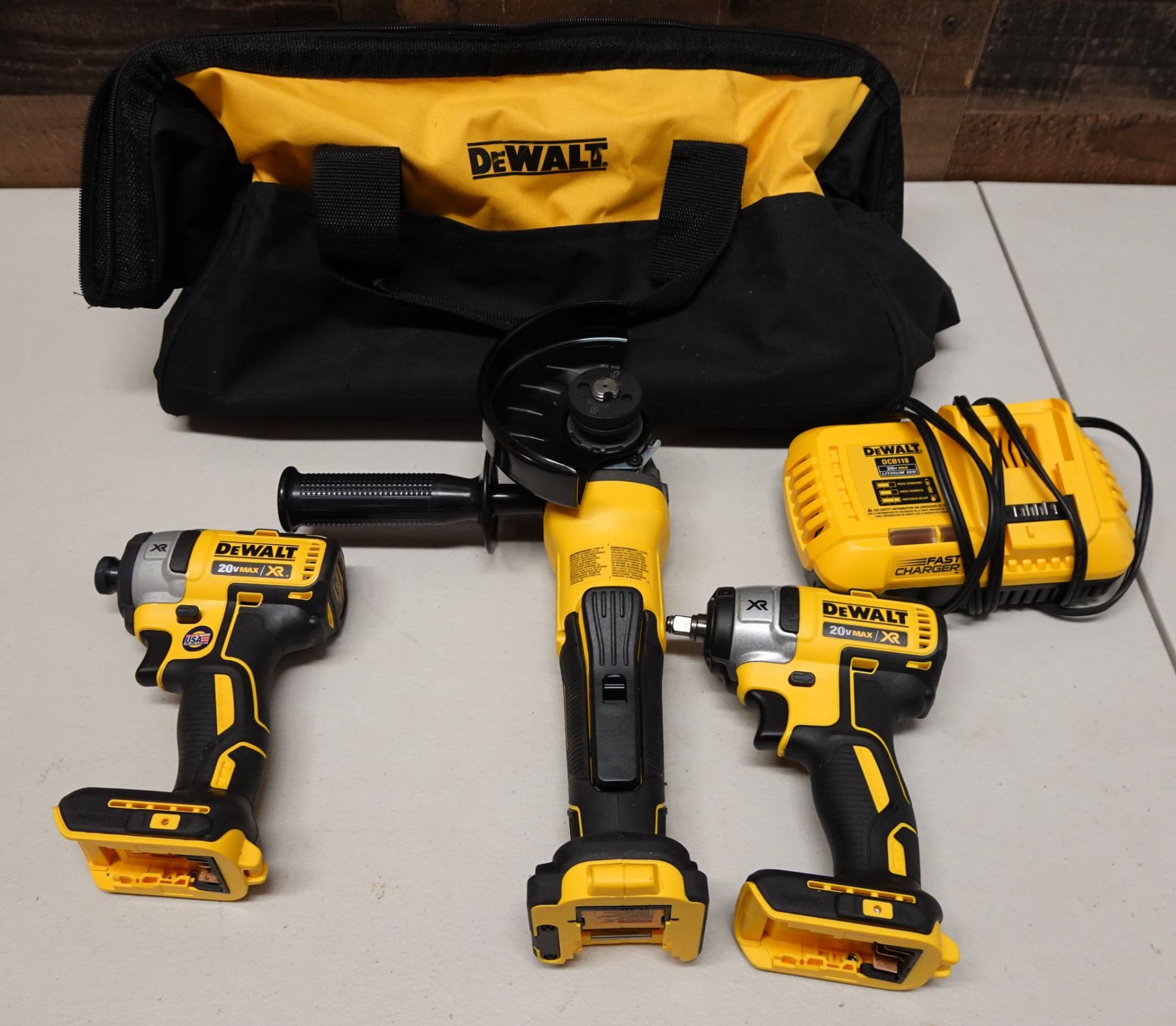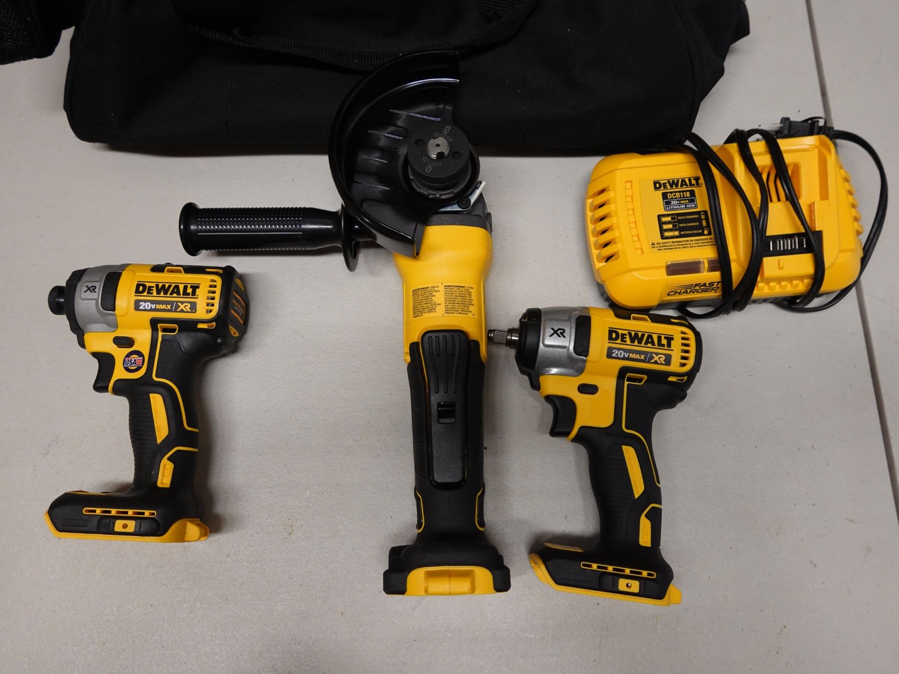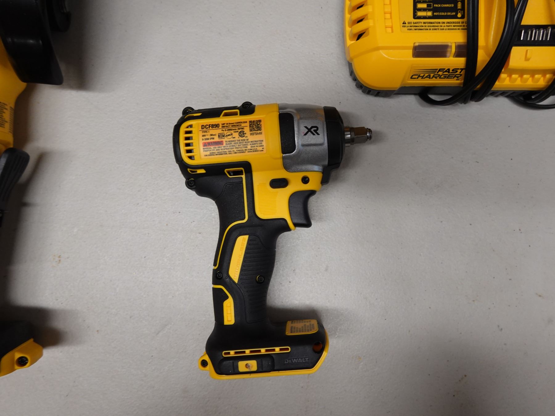 Qty 3 DeWalt Power Tools, Charger & Case: DCG416 Grinder, DCF890 Impact Wrench & DCF887 Impact Driver
