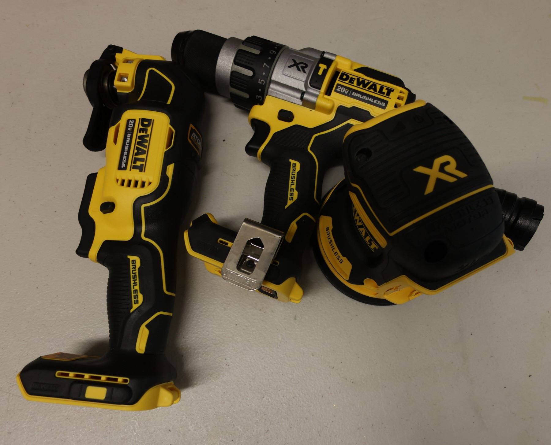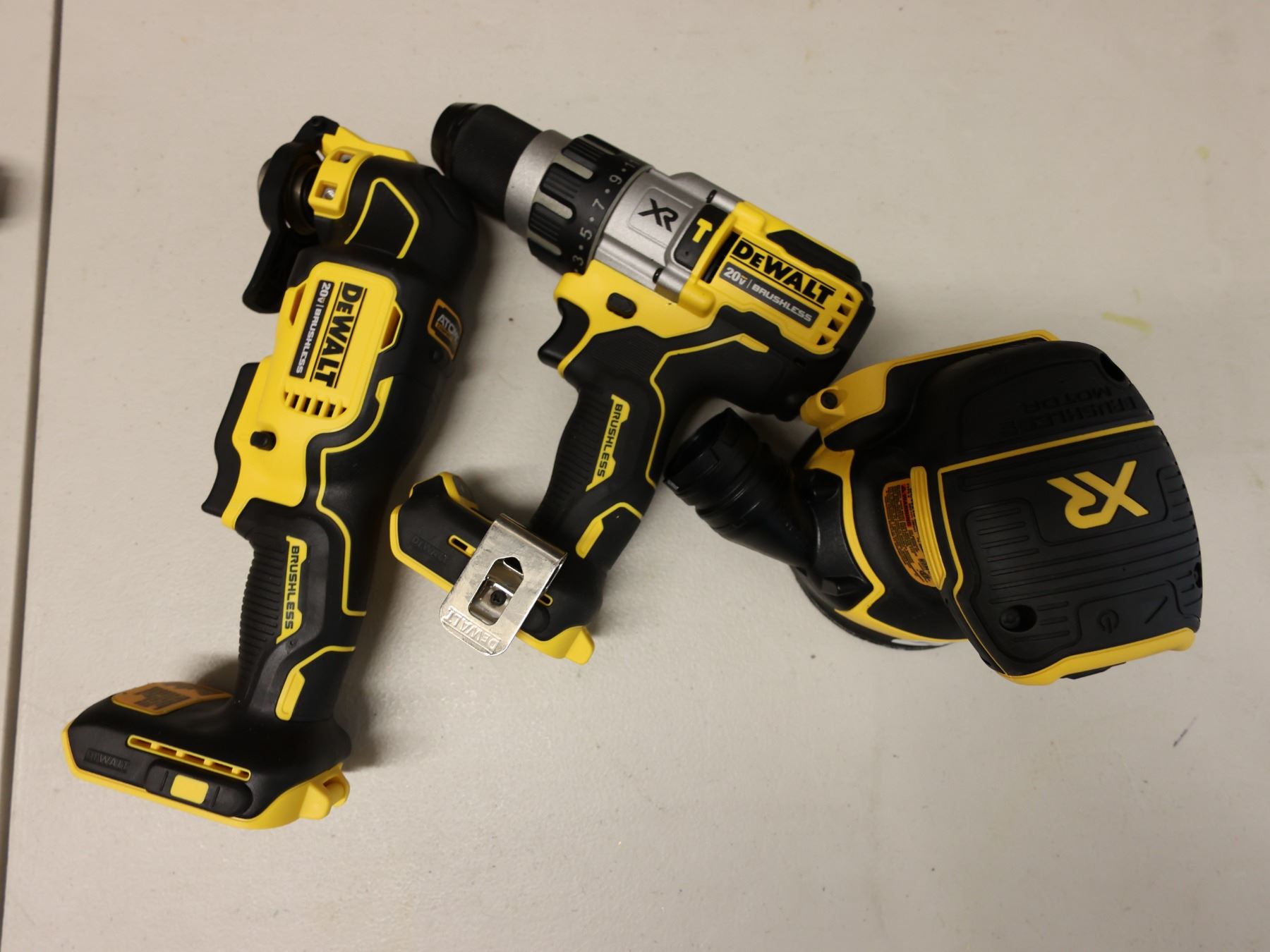 Qty 3 DeWalt Power Tools: DCW210 Palm Sander, DCS354 Multi-Tool & DCD996 Hammerdrill/Driver