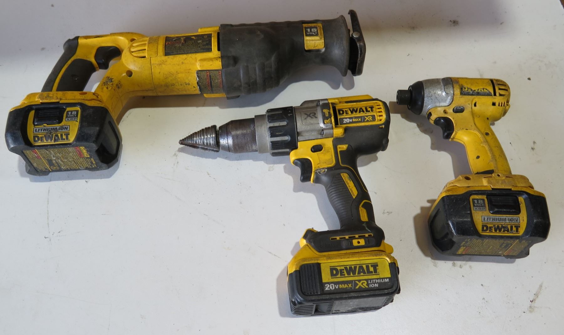Qty 3 DeWalt Tools: DC385 Reciprocating Saw, DCD996 Hammer Drill & Driver