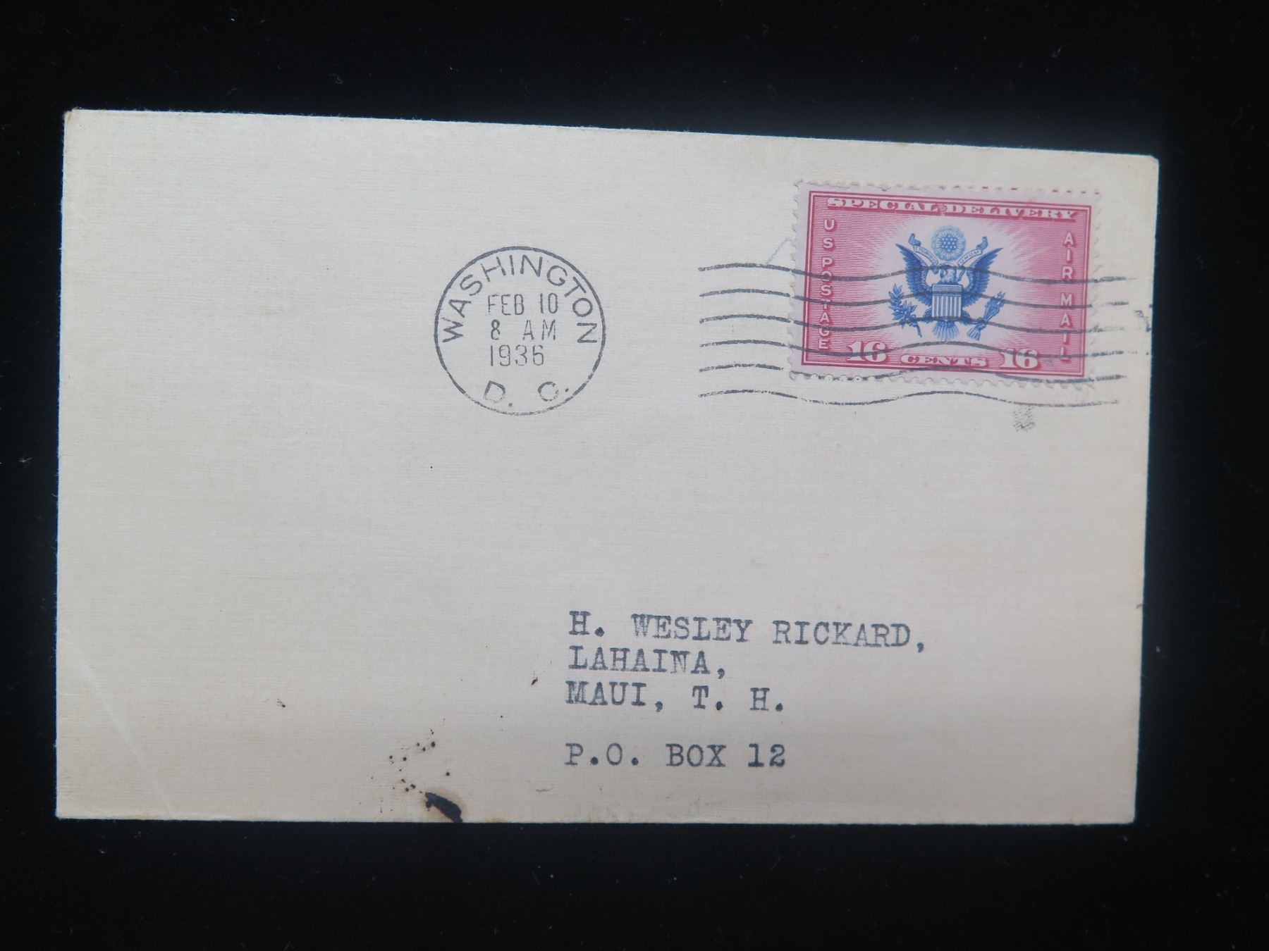 Qty 3 Envelopes: Trans-Pacific Air Mail, Special Delivery & Wailuku Maui
