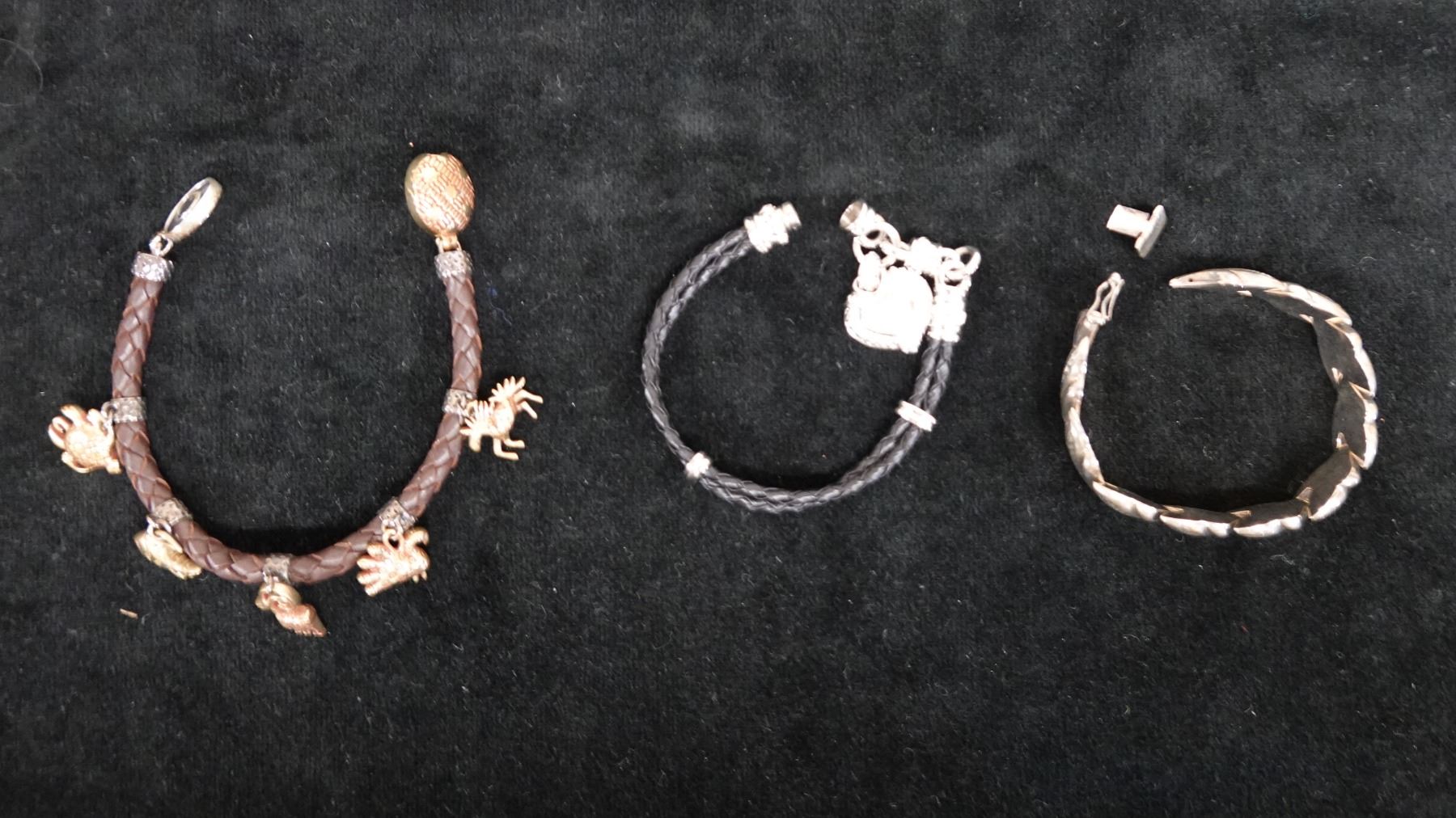 Qty 3 Fashion Bracelets, Misc Sizes (1 missing clasp)