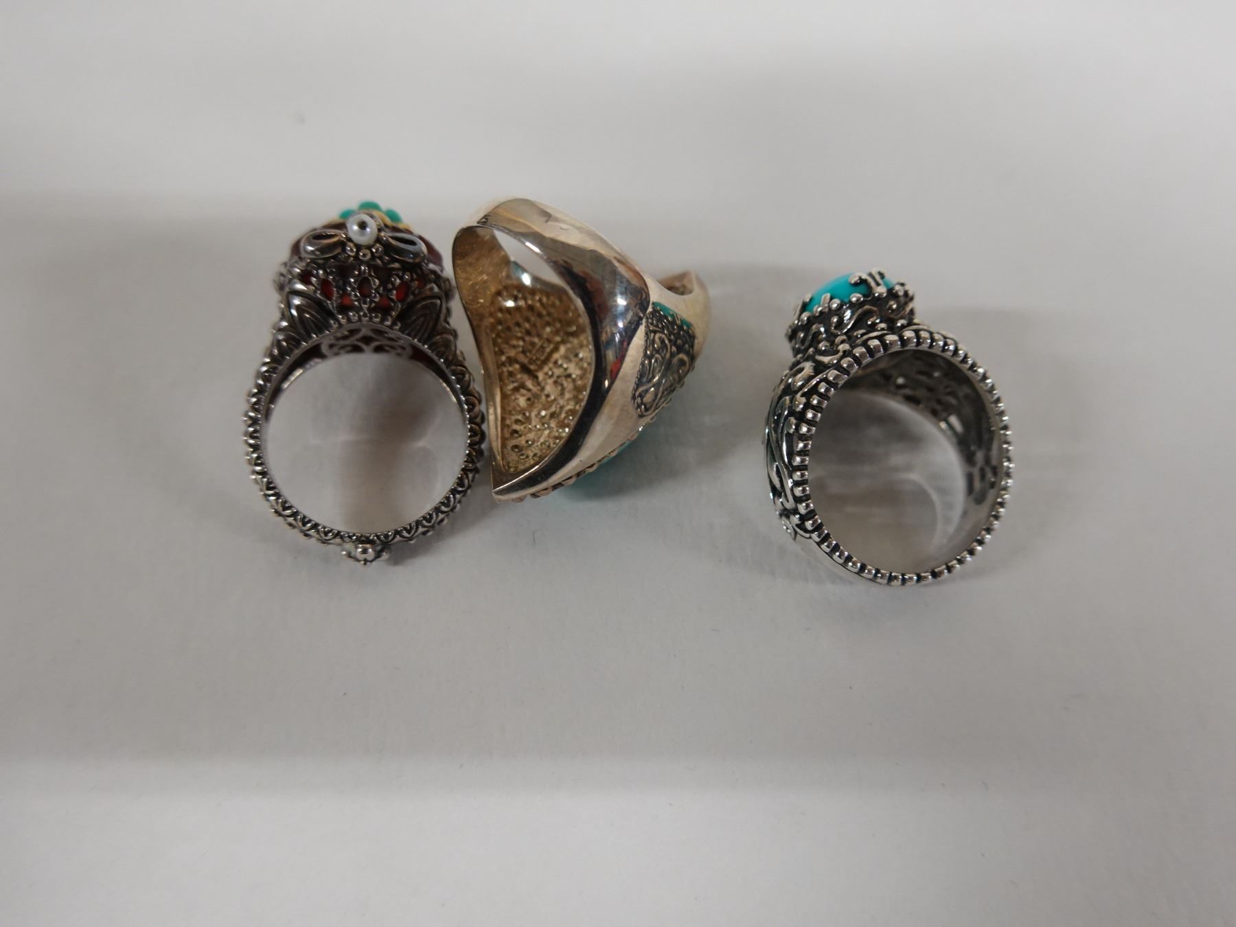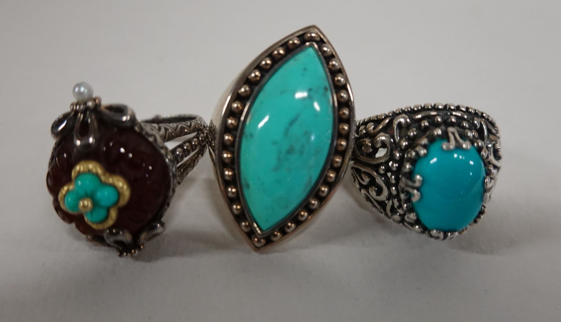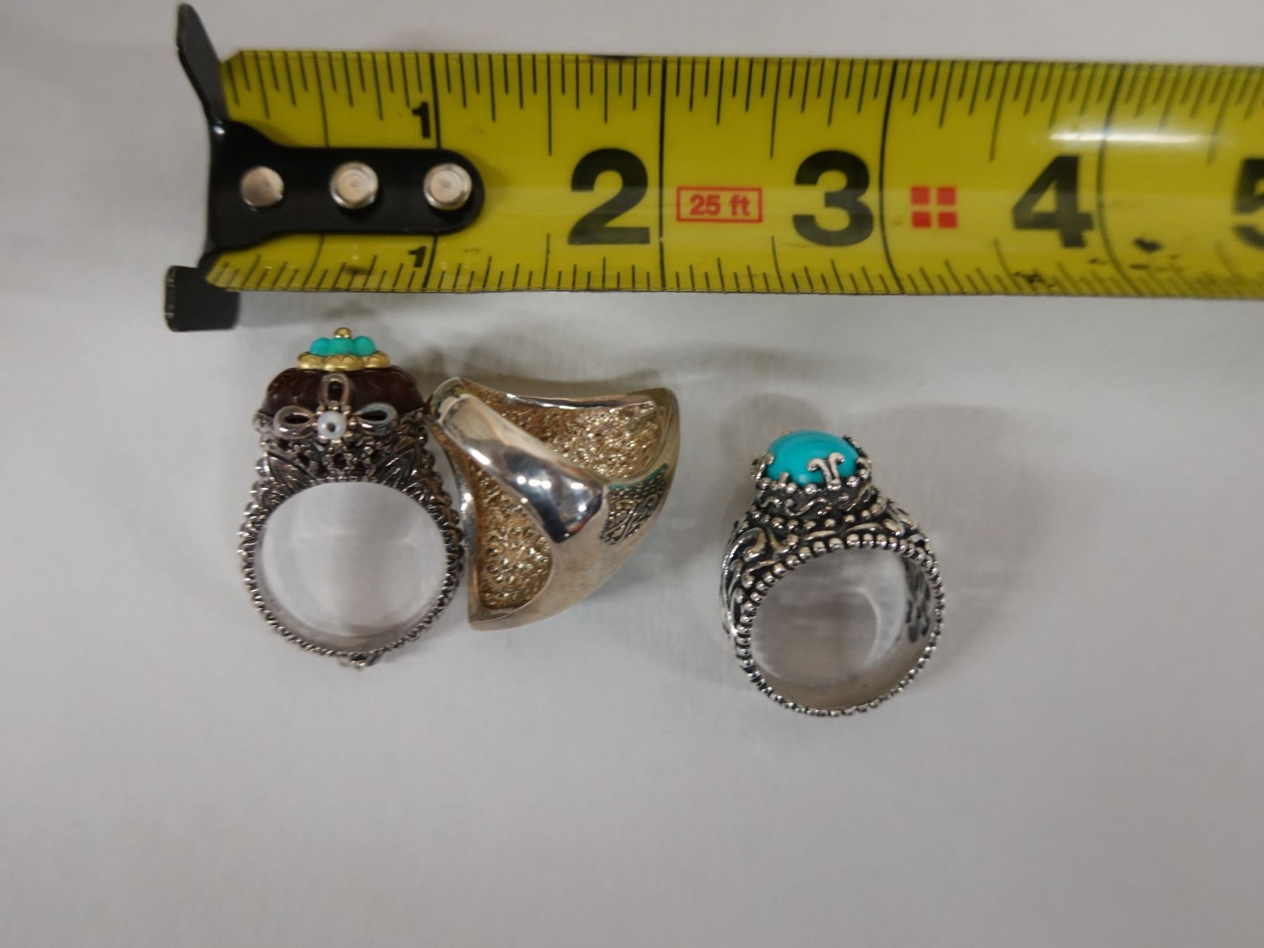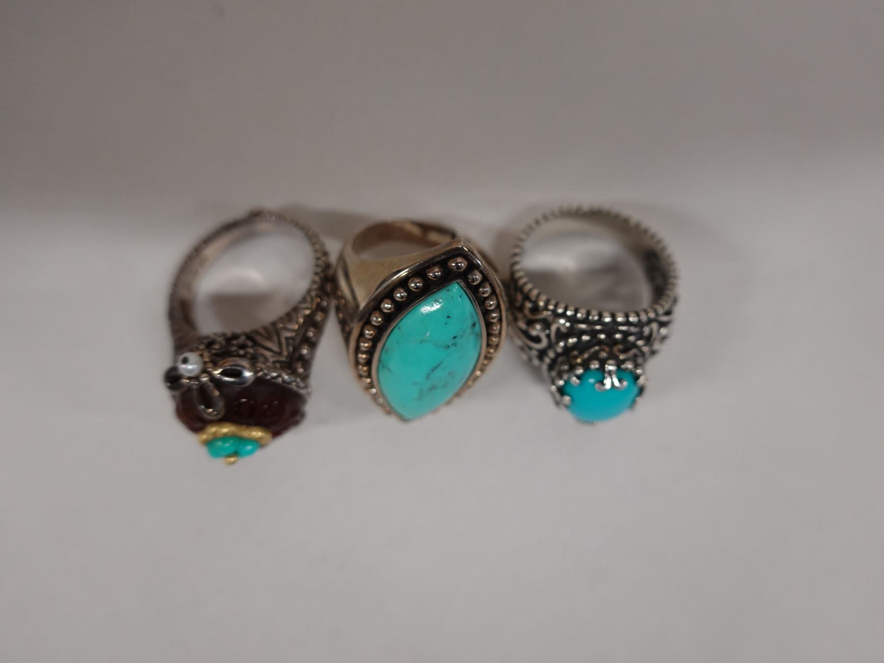 Qty 3 Fashion Rings w/ Turquoise Stones, Misc Styles & Sizes