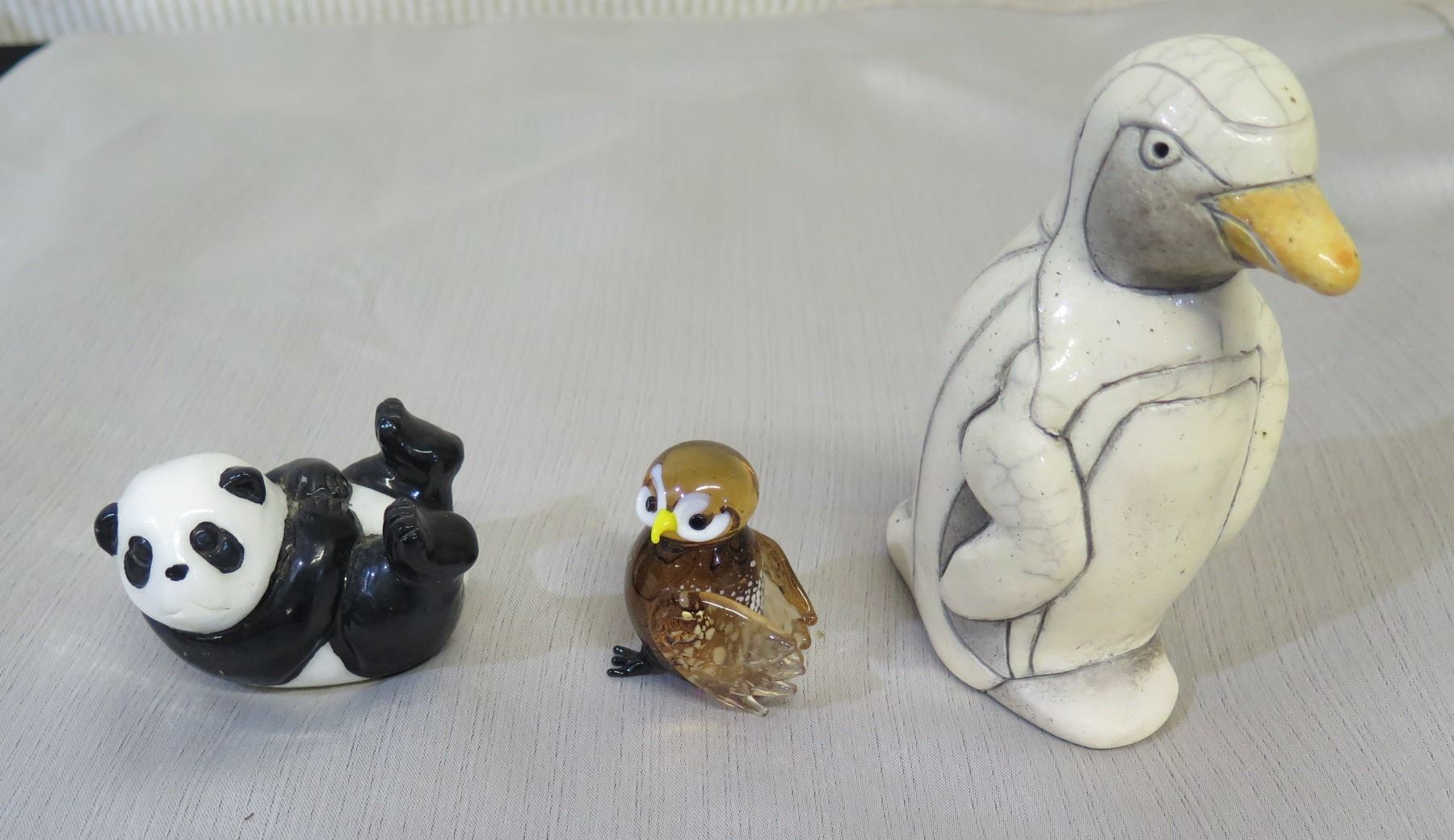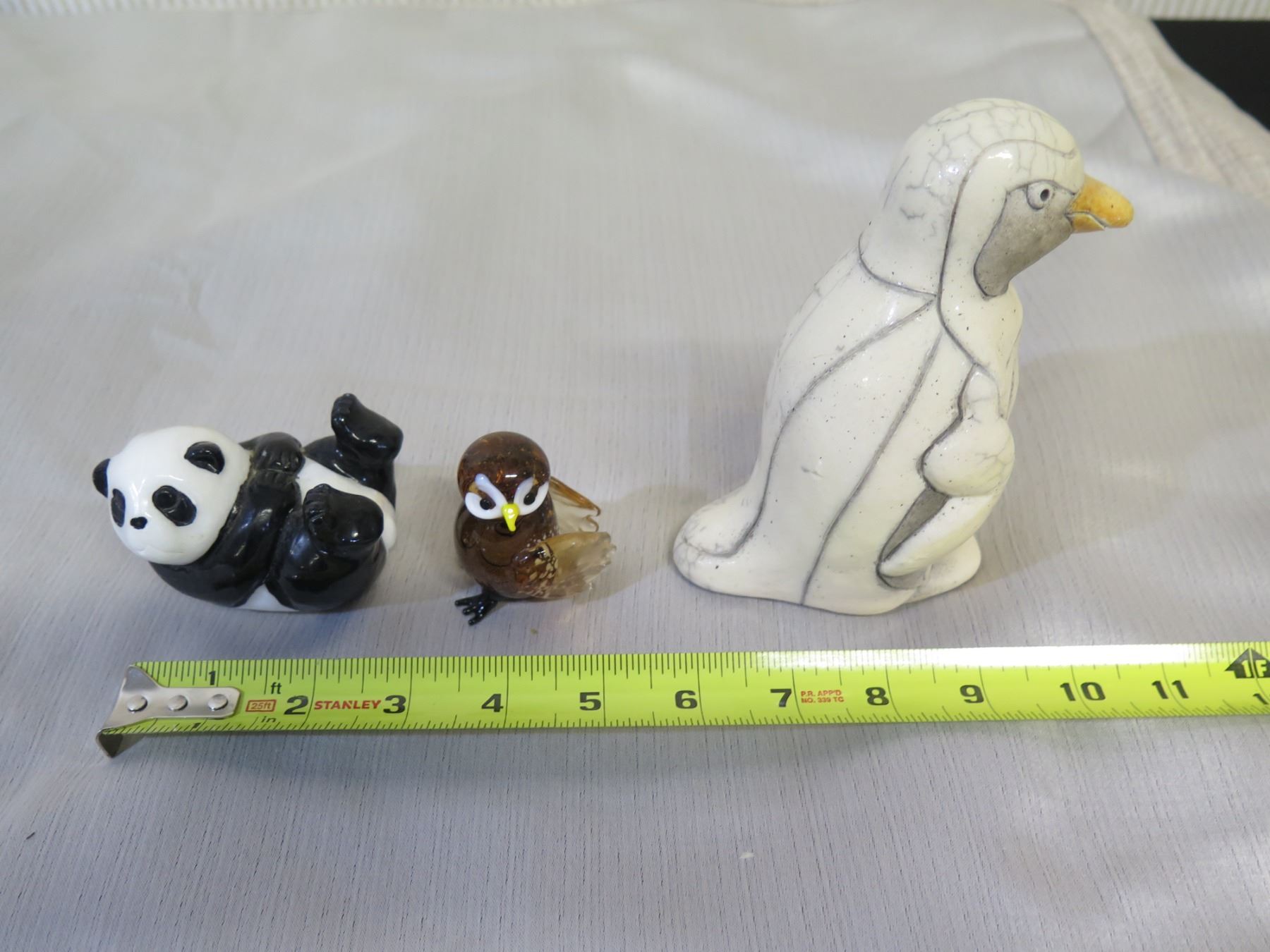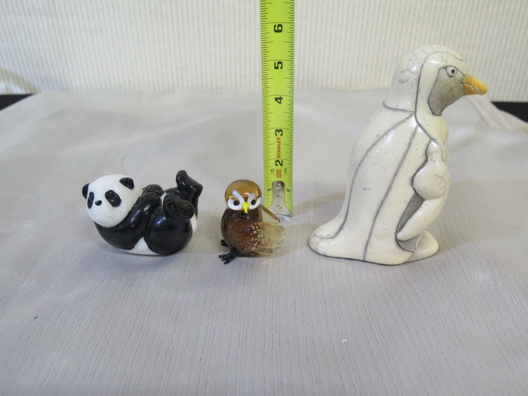 Qty 3 Figurines: Penguin Made in Africa, Owl & Panda Bear, Misc Sizes