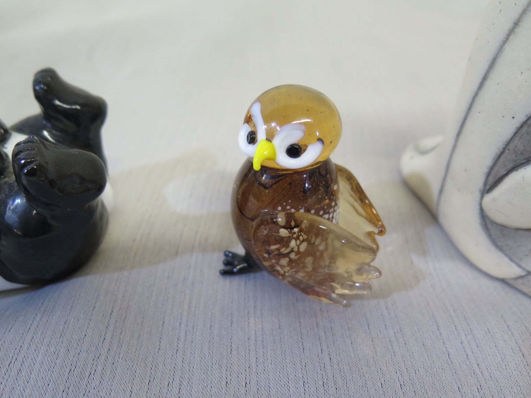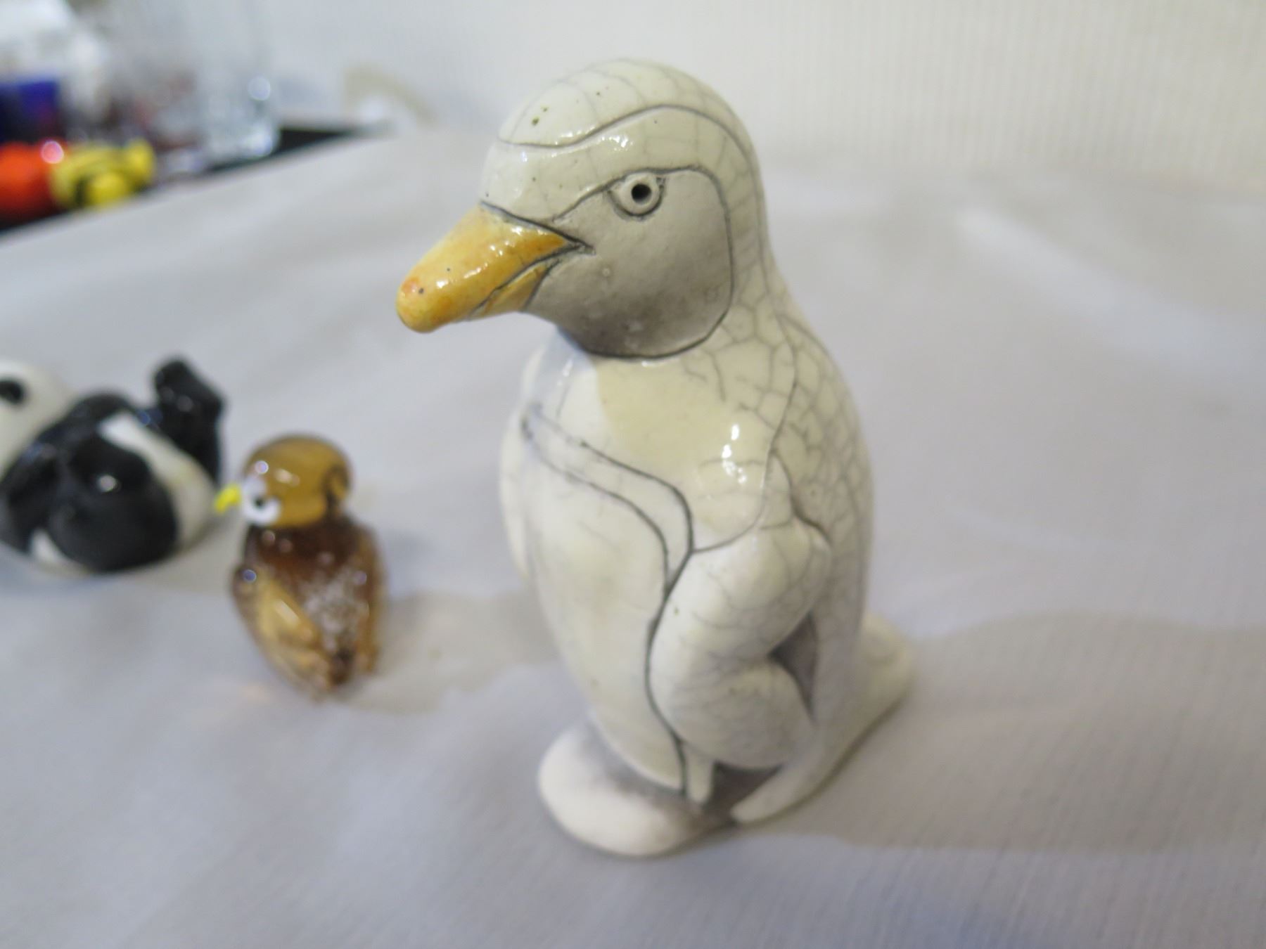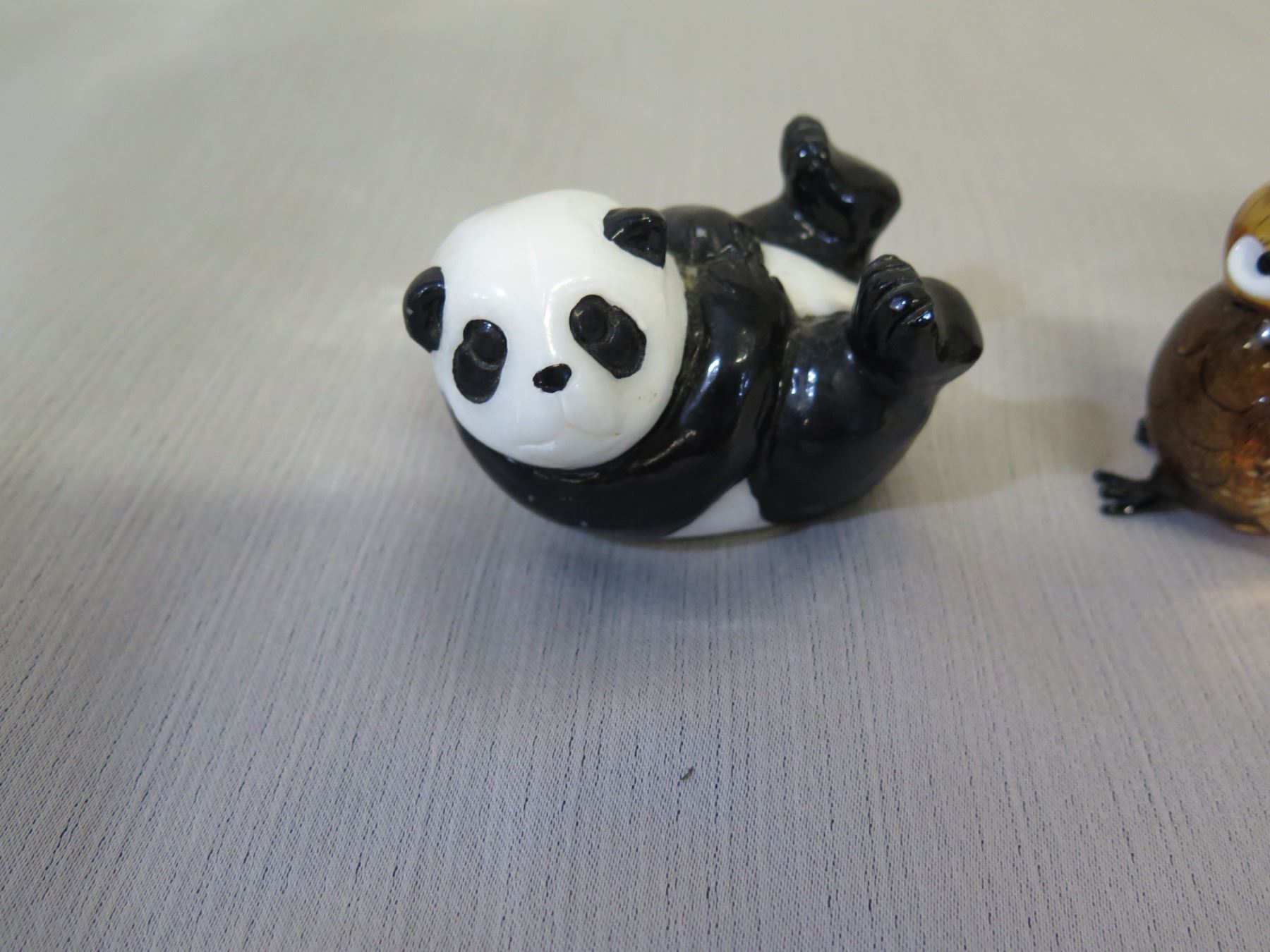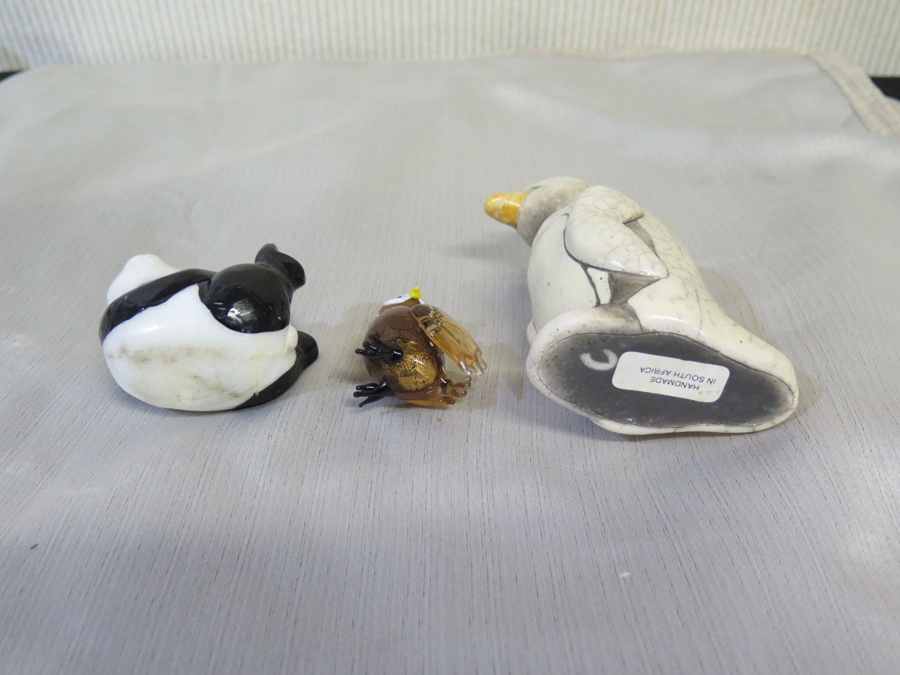 Qty 3 Figurines: Penguin Made in Africa, Owl & Panda Bear, Misc Sizes