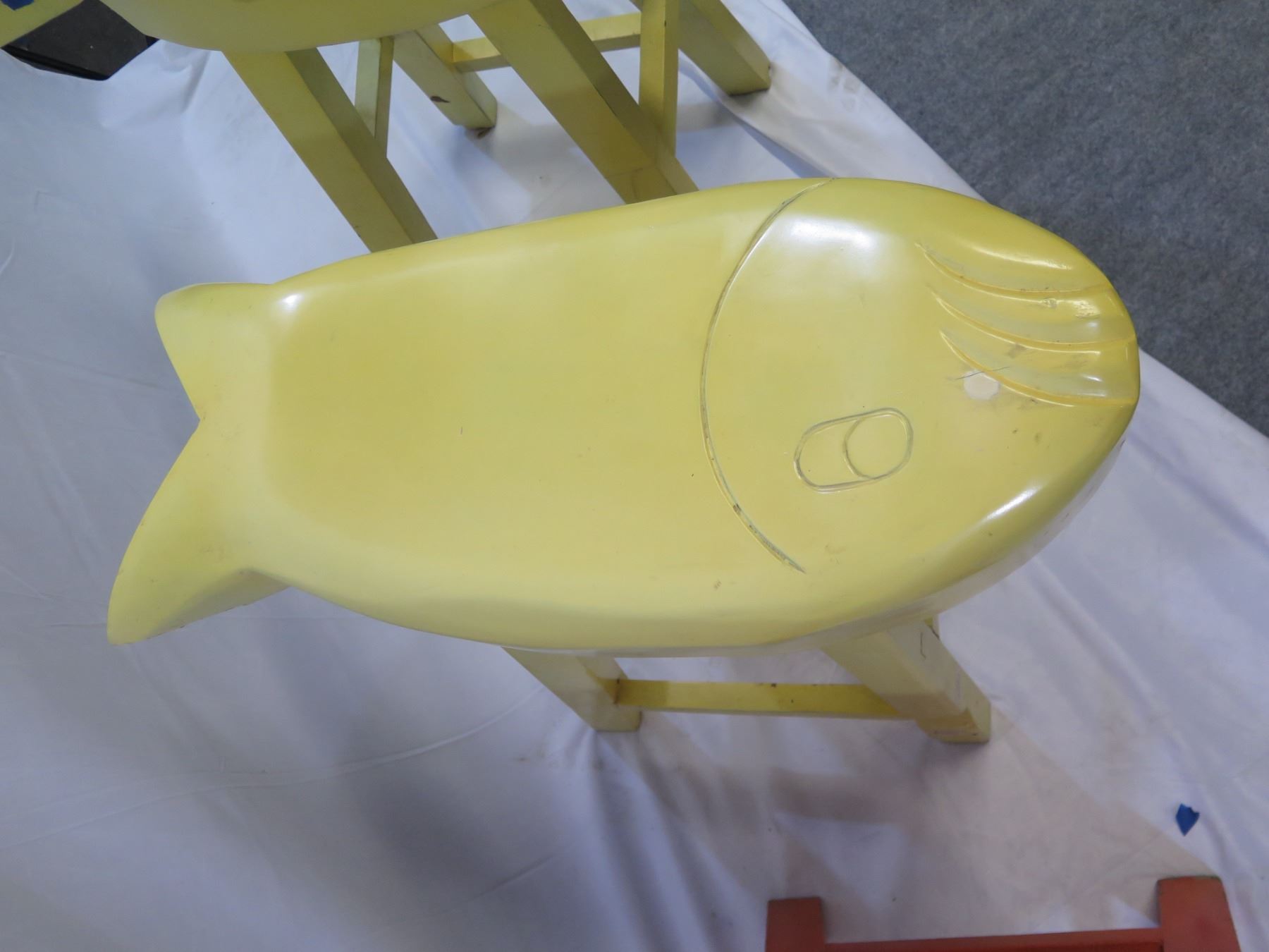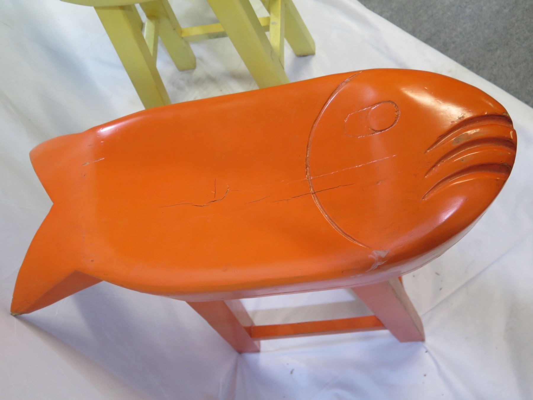 Qty 3 Fish Bar Stools Yellow & Orange 27"x11"x31"H (Retail $500)