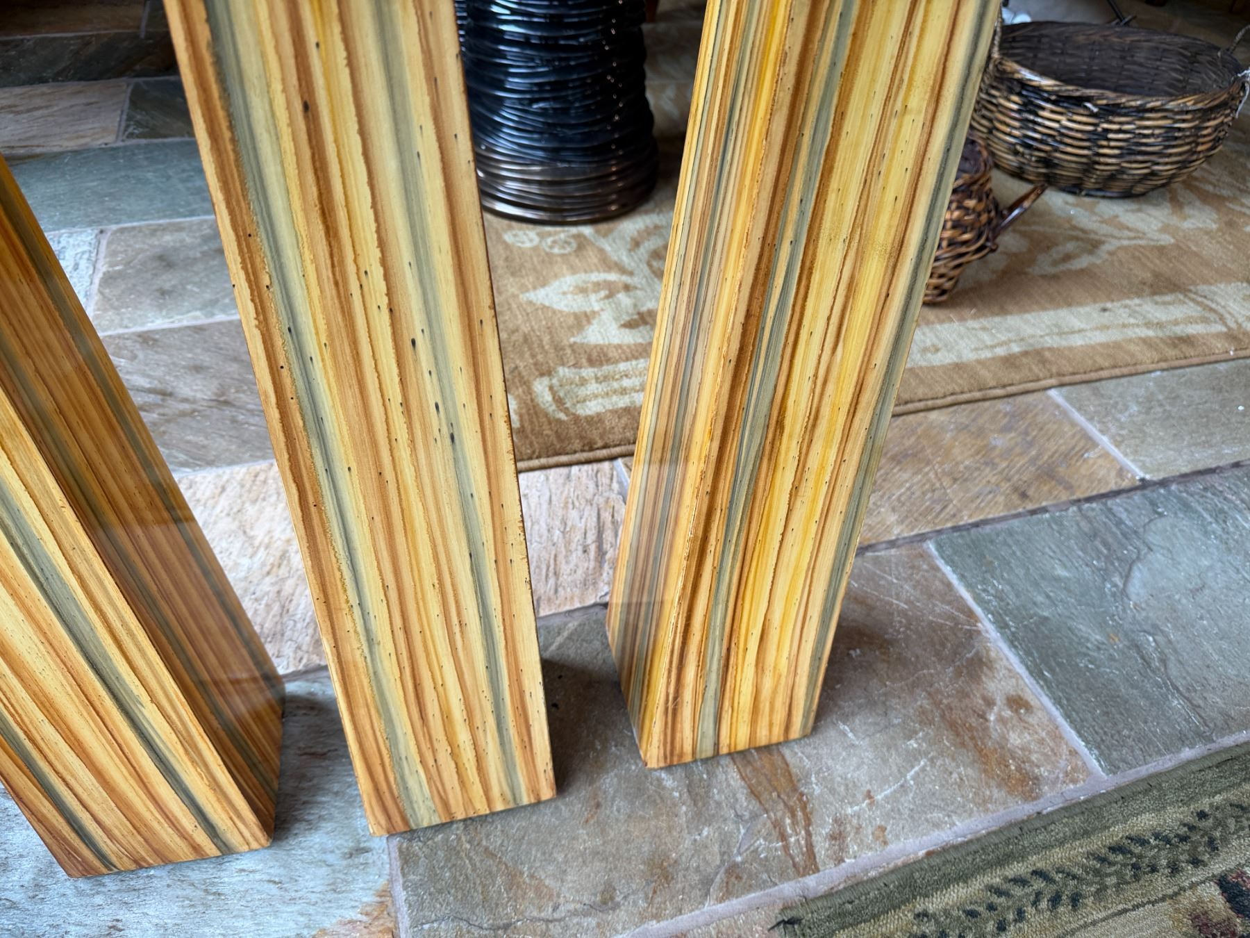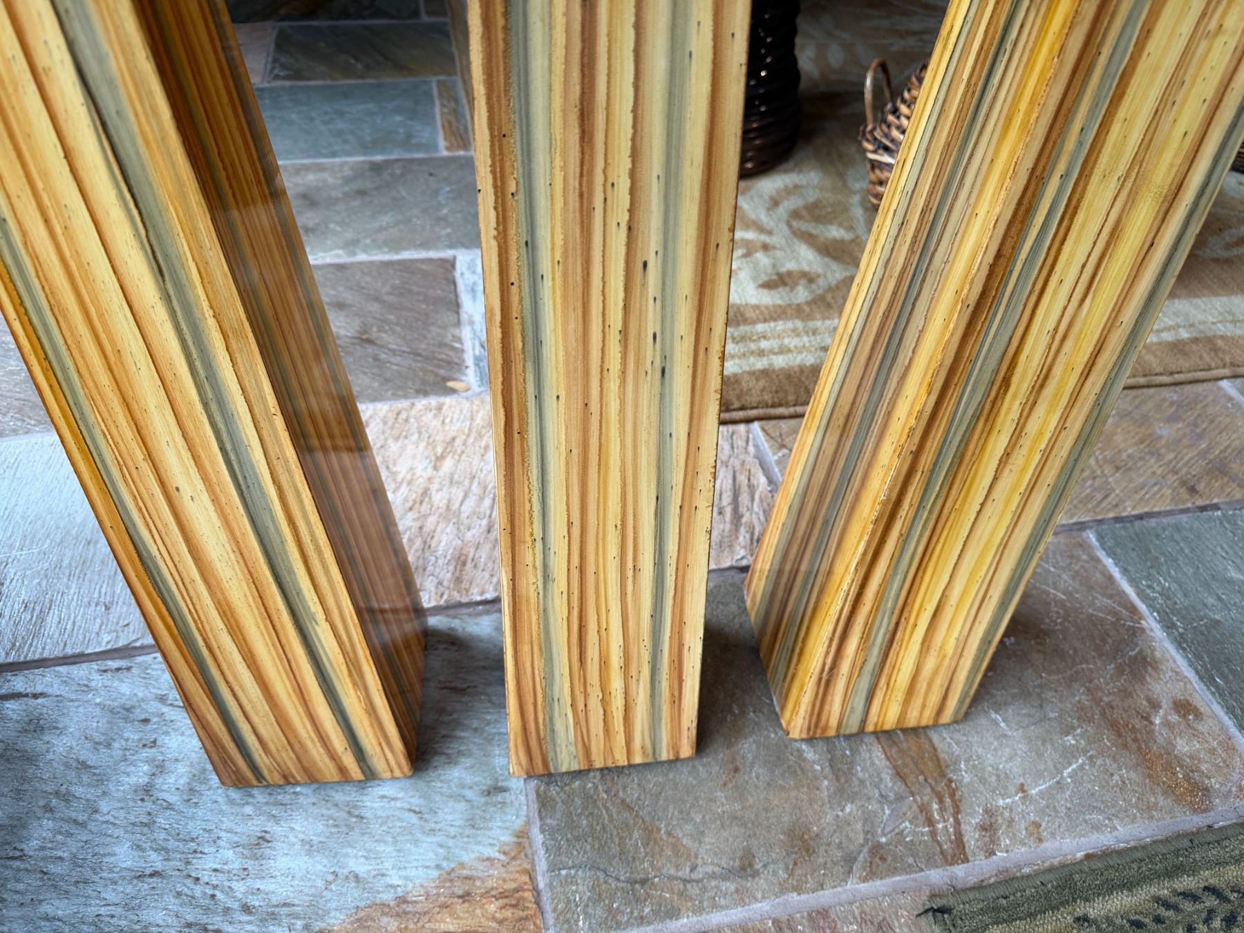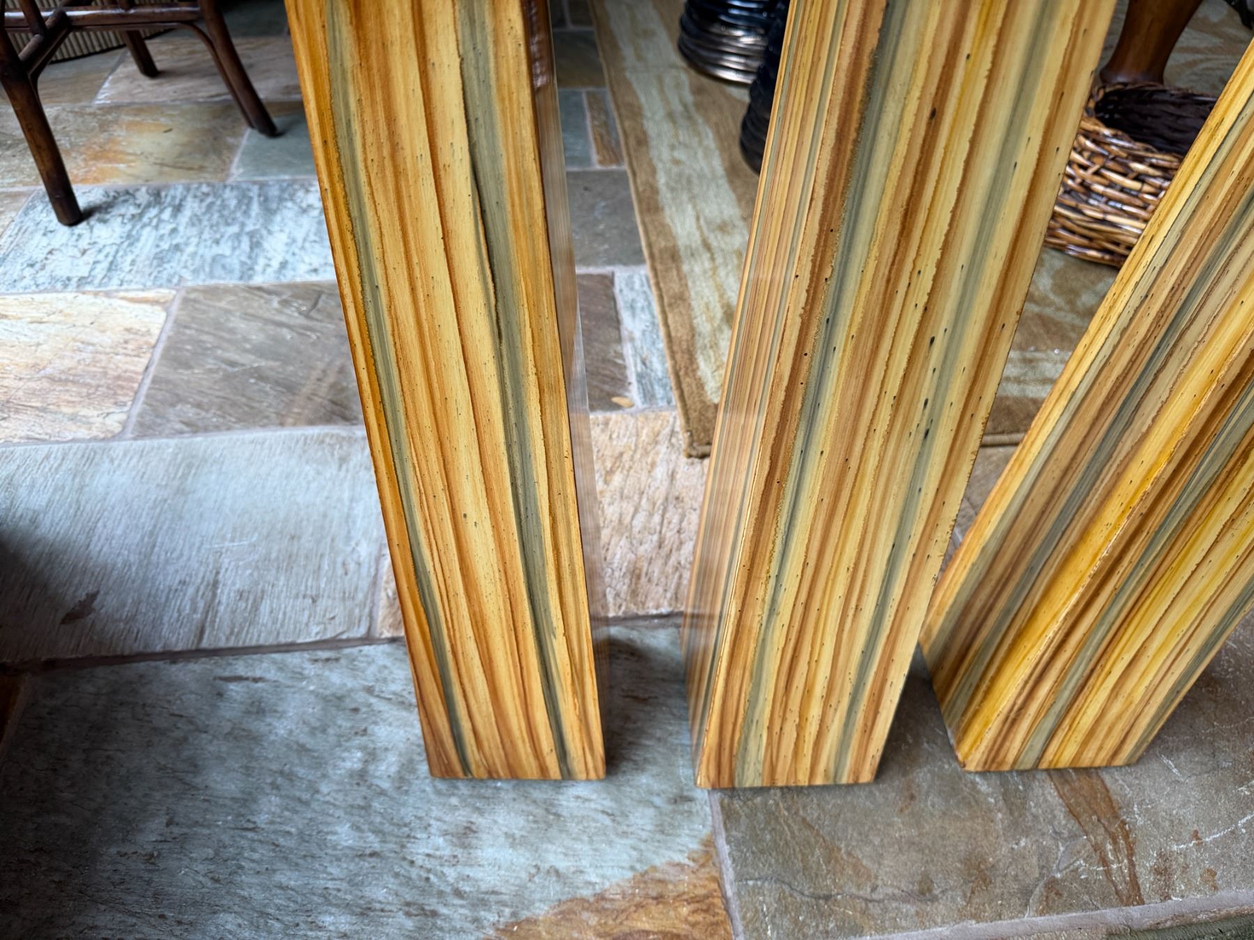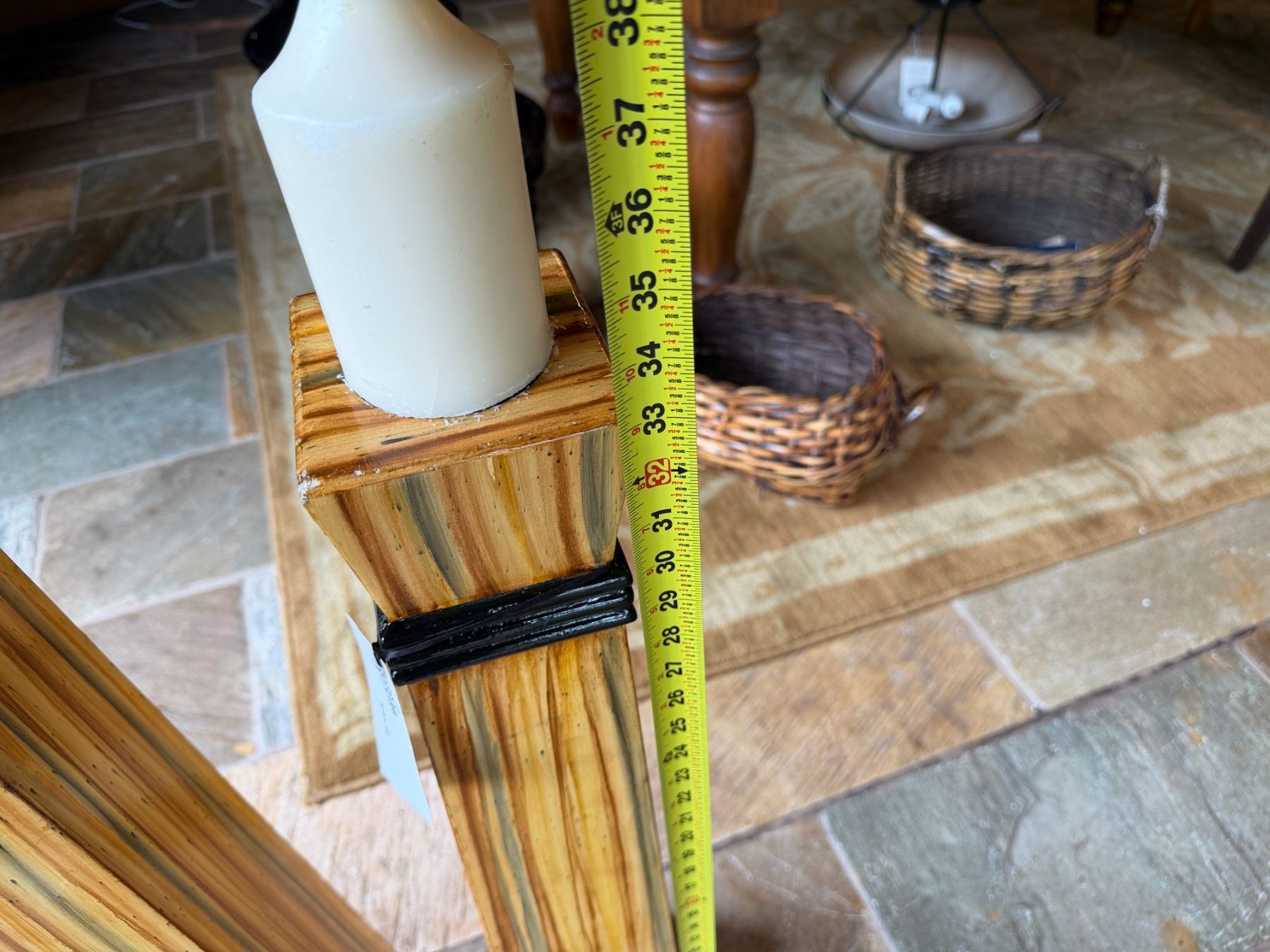 Qty 3 Floor Pillar Candle Holders w/ Striped Design & 3 White Candles, Misc Sizes