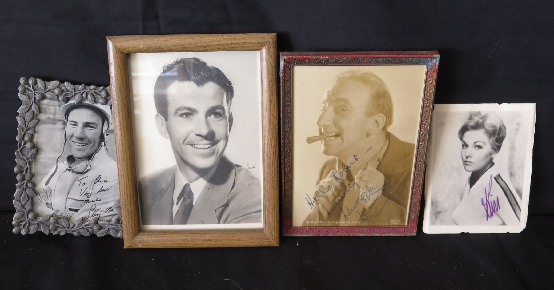 Qty 3 Framed & 1 Unframed Celebrity Photos of Durante, Kim Novak & 2 Others, All Signed