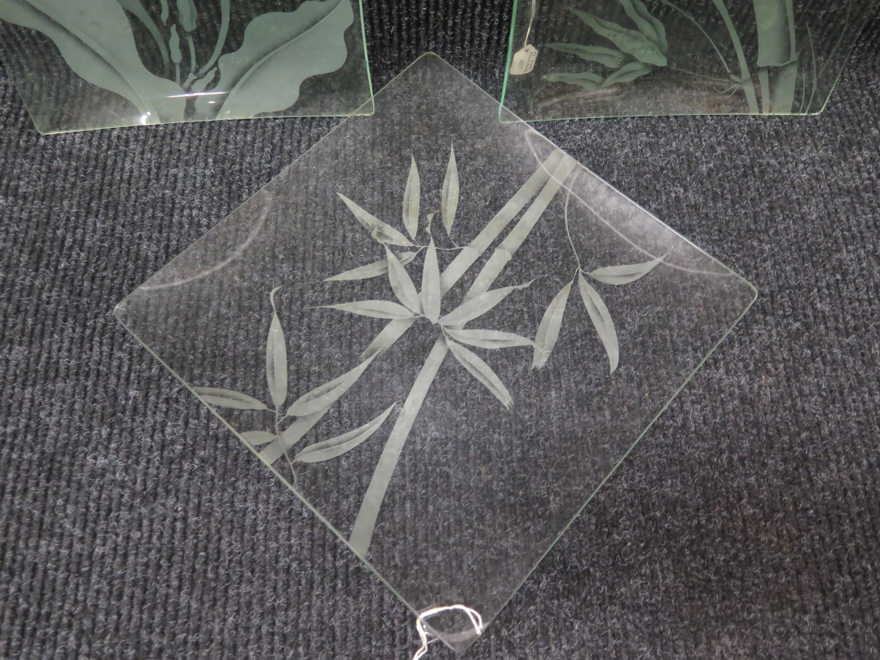 Qty 3 Frosted Floral & Bamboo Design Square Plates 10"x10" & 12"x12"
