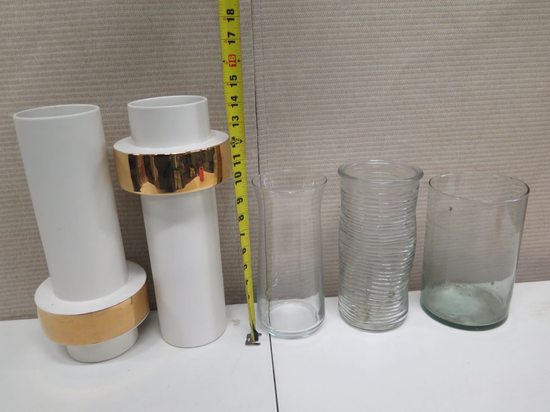 Qty 3 Glass Vases & 2 Global Views Containers w/ Gold Foil Accents