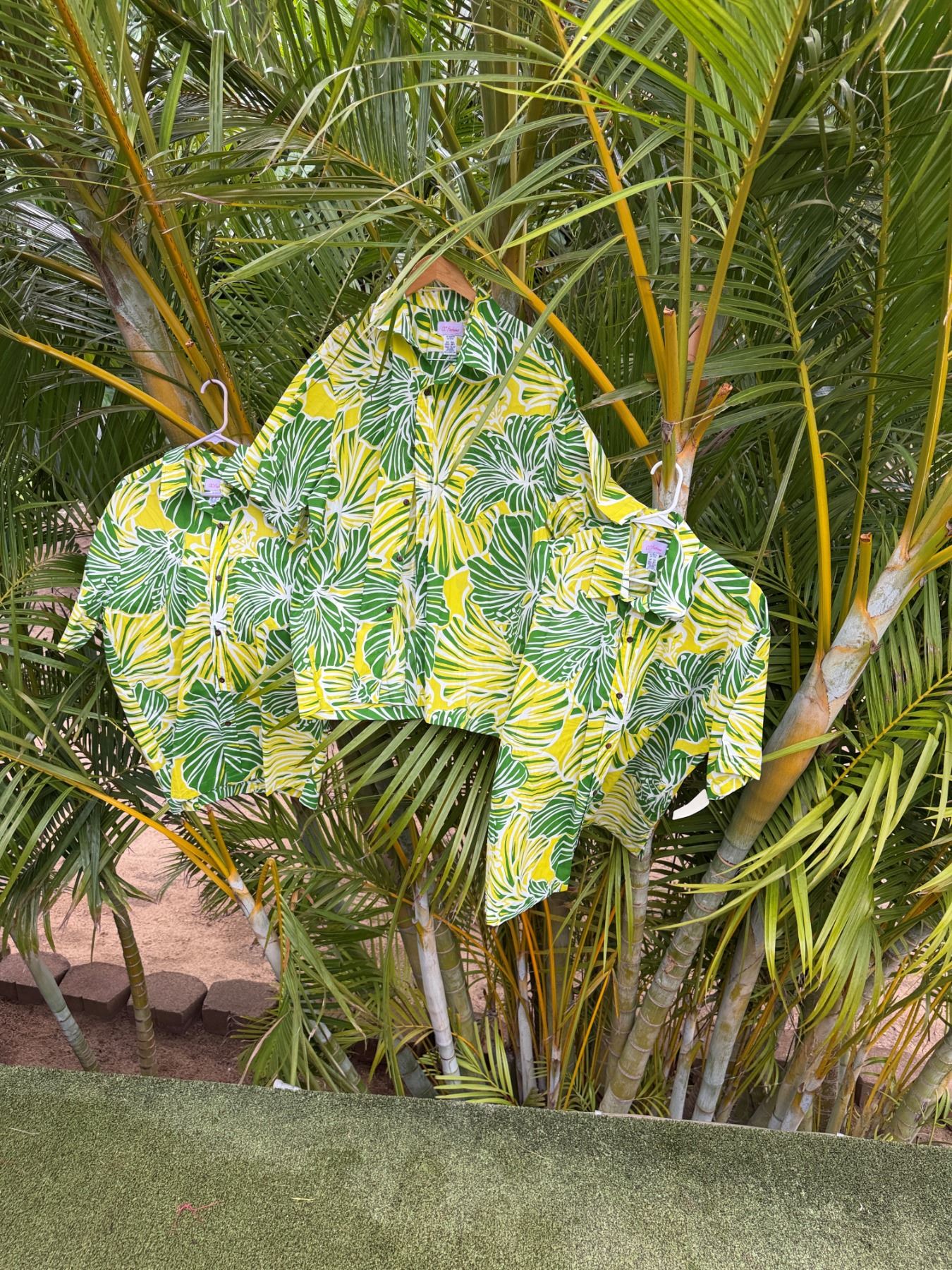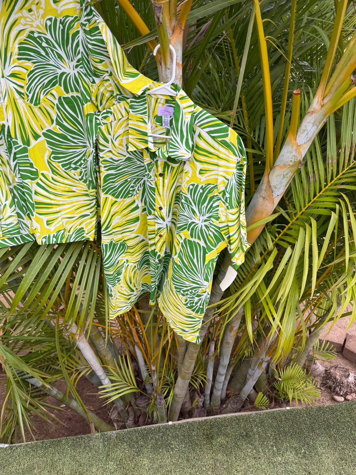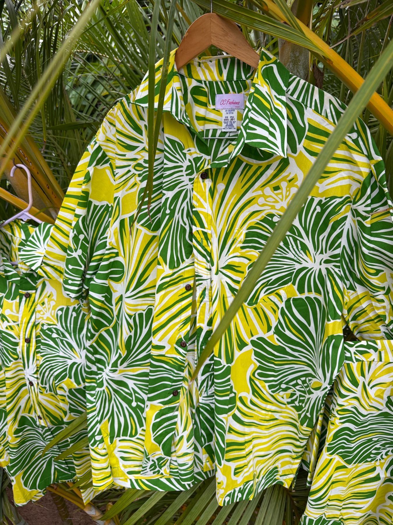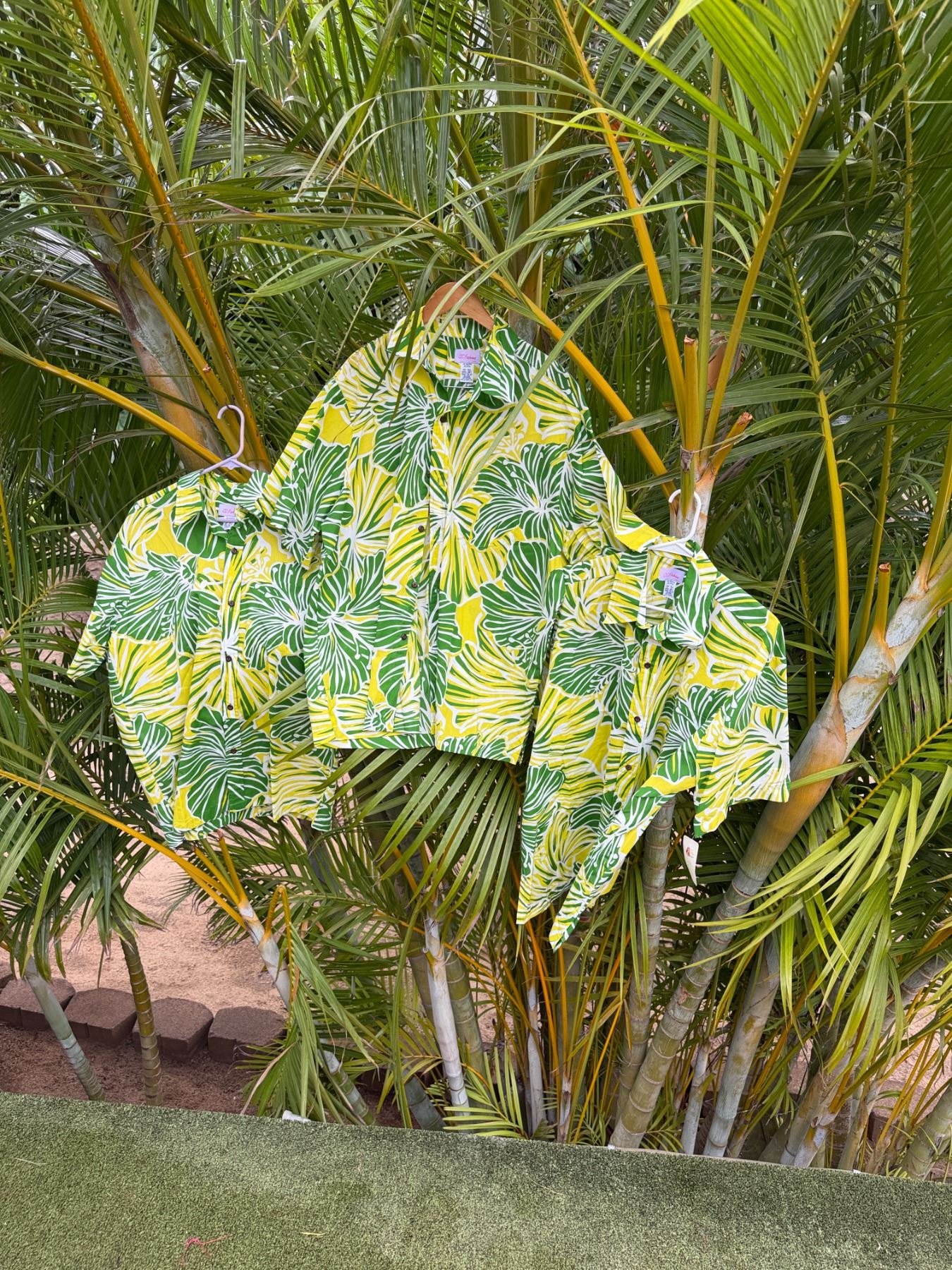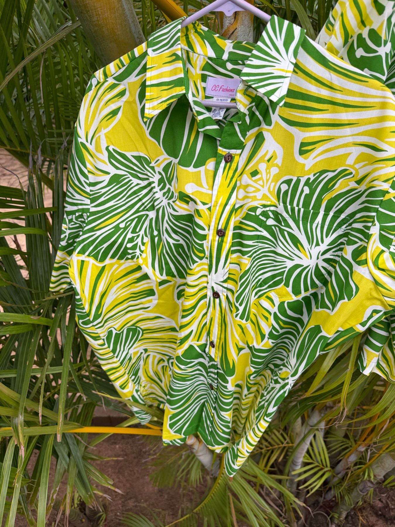 Qty 3 Green Leaf-Print Aloha Shirts, Misc Sizes XL - XXXL