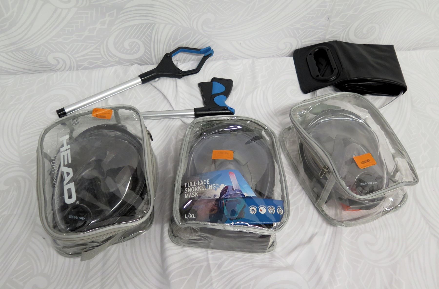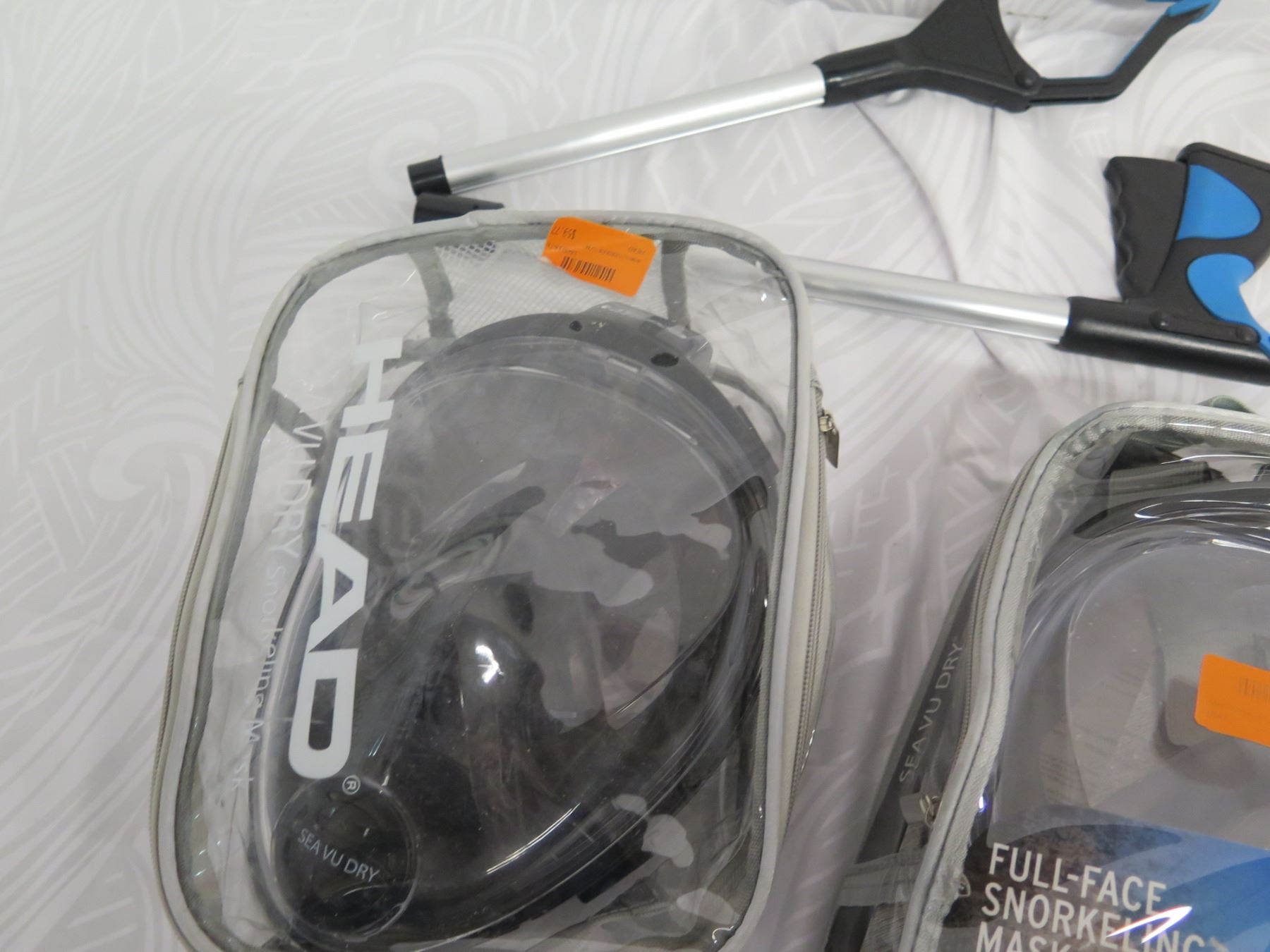 Qty 3 HEAD Full Face Snorkeling Masks, Picker Tool, etc