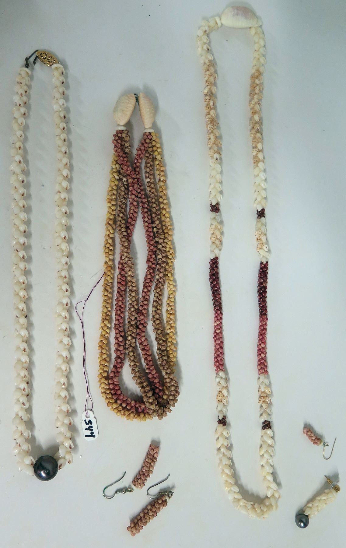 Qty 3 Hawaiian Shell Necklaces & Shell Earrings, Black Tahitian Pearls