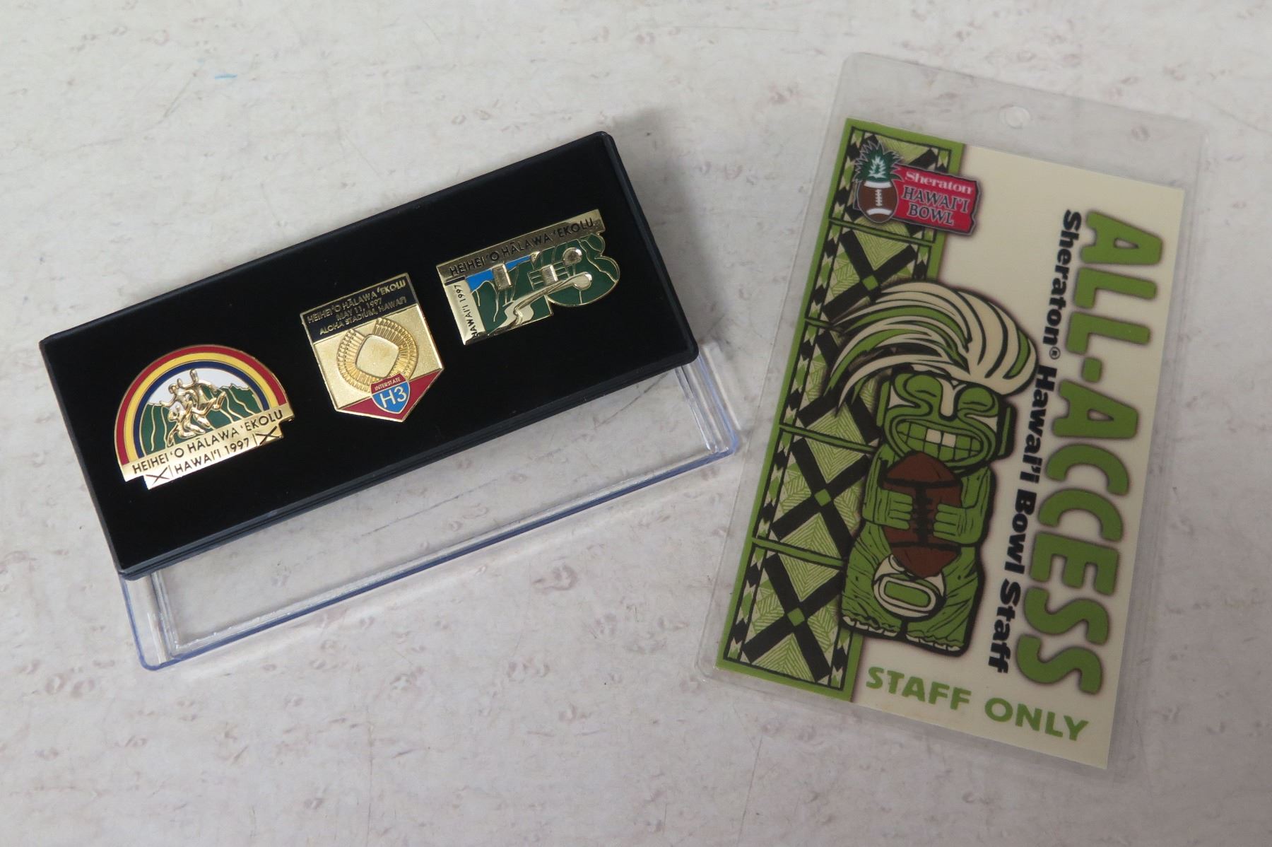 Qty 3 Heihei 'O Halawa 'Ekolu H3 1997 Pins in Plastic Case & All-Access Pass