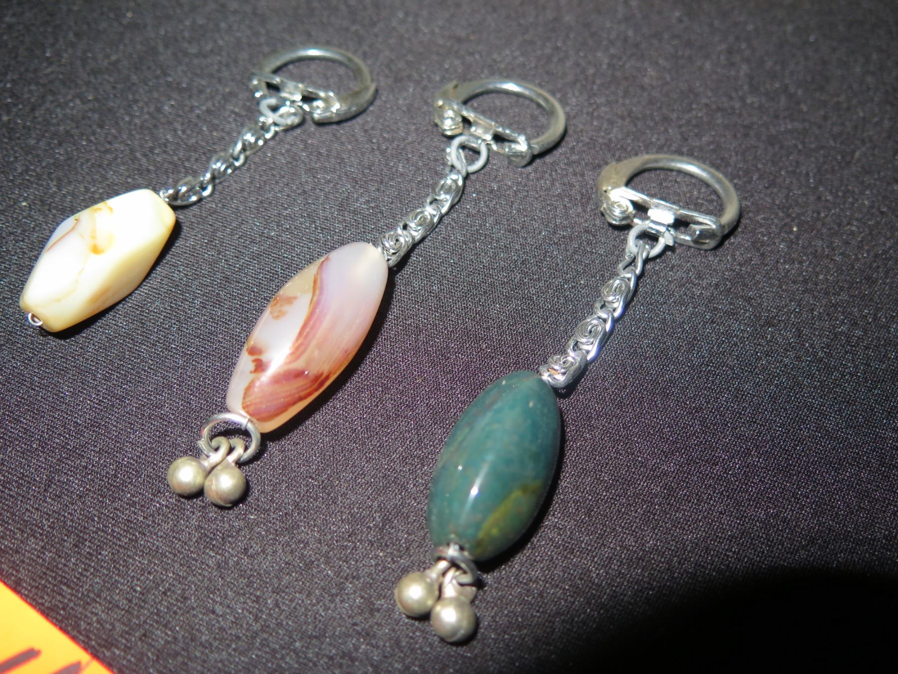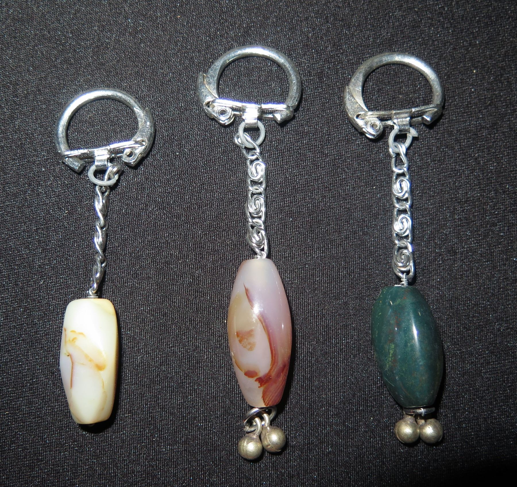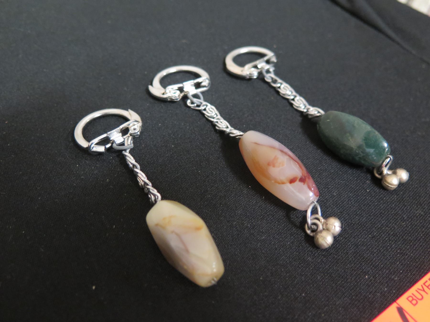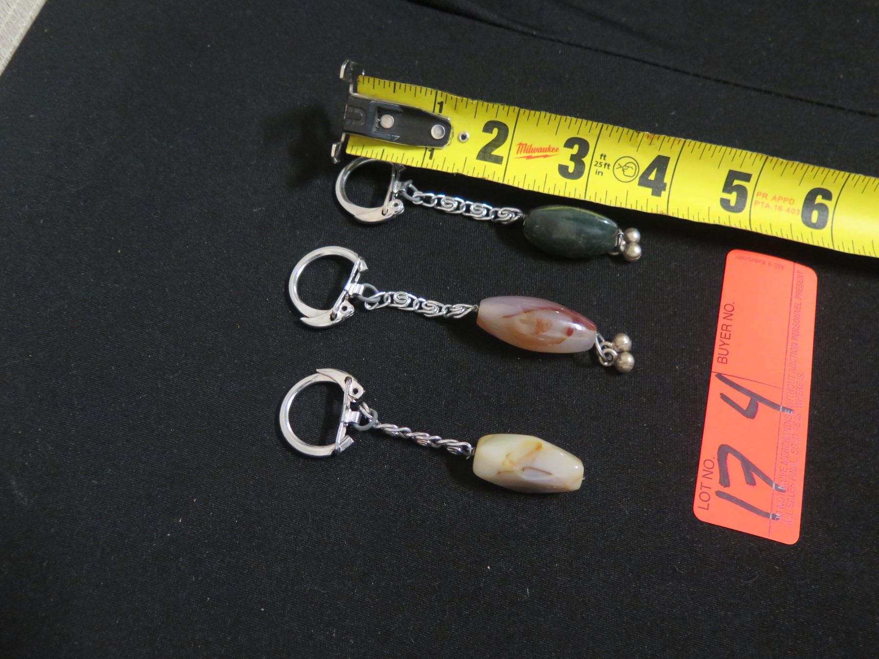 Qty 3 Key Chains w/ Polished Stones Approx. 4"L