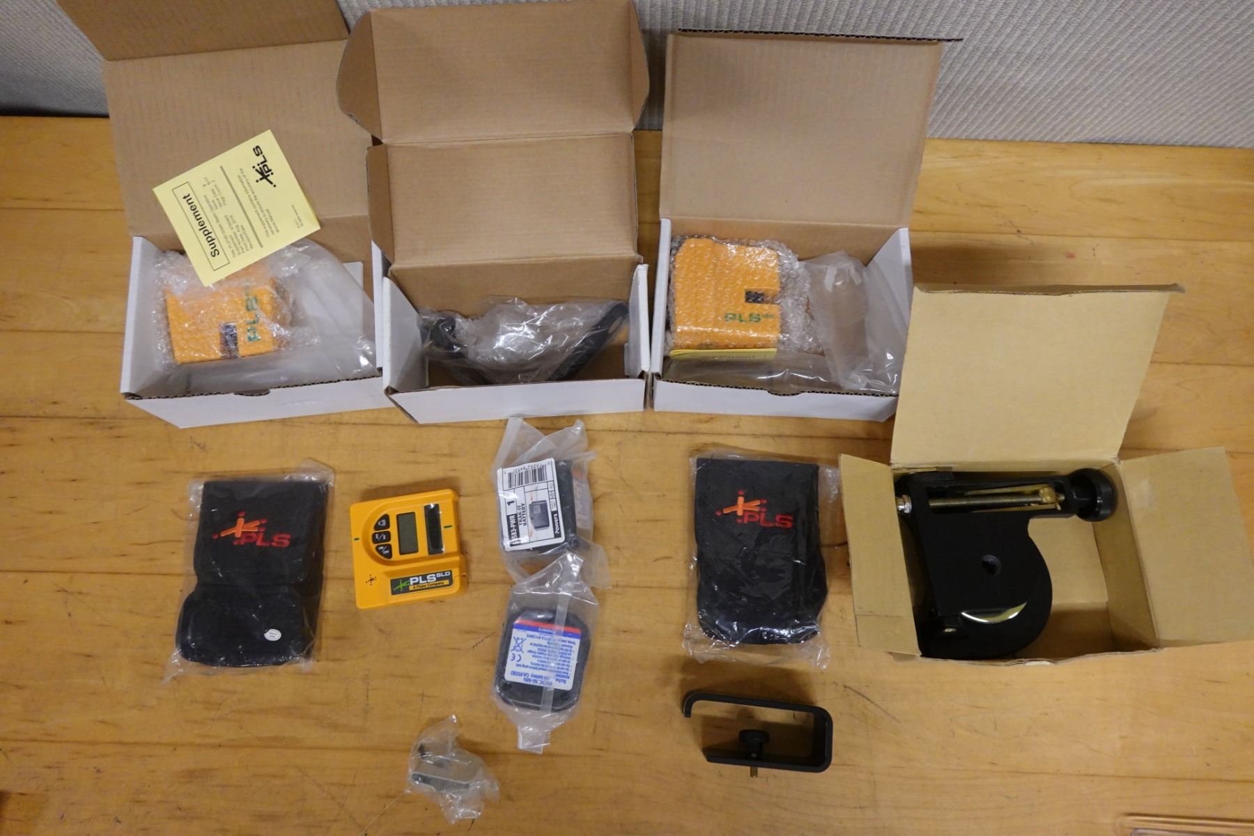 Qty 3 Laser Levels, Laser Bracket, Powers Battery, etc New in Box