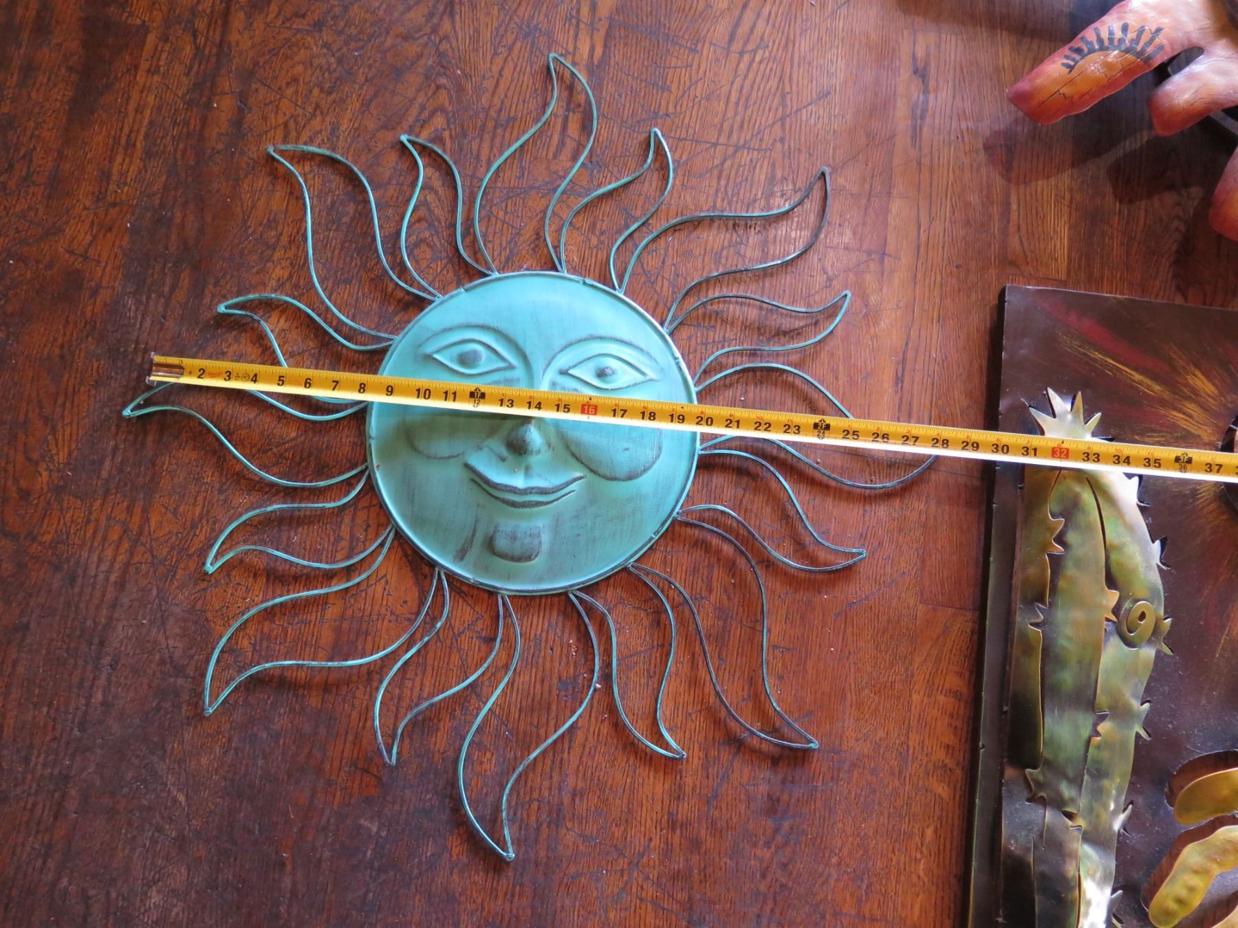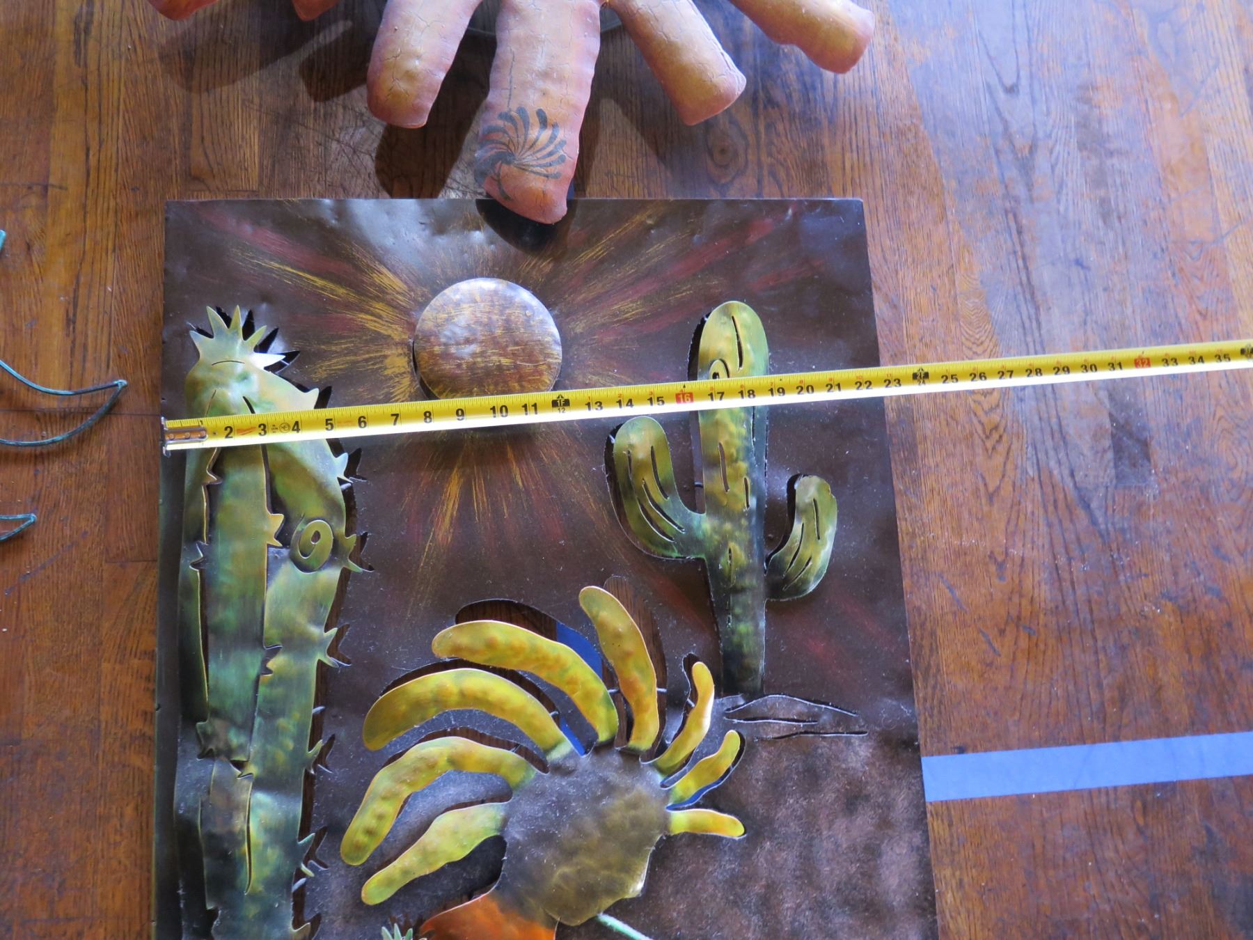 Qty 3 Lightweight Metal Mexican Wall Hangings: Sunshine & Cactus Kokopelli, Misc Sizes
