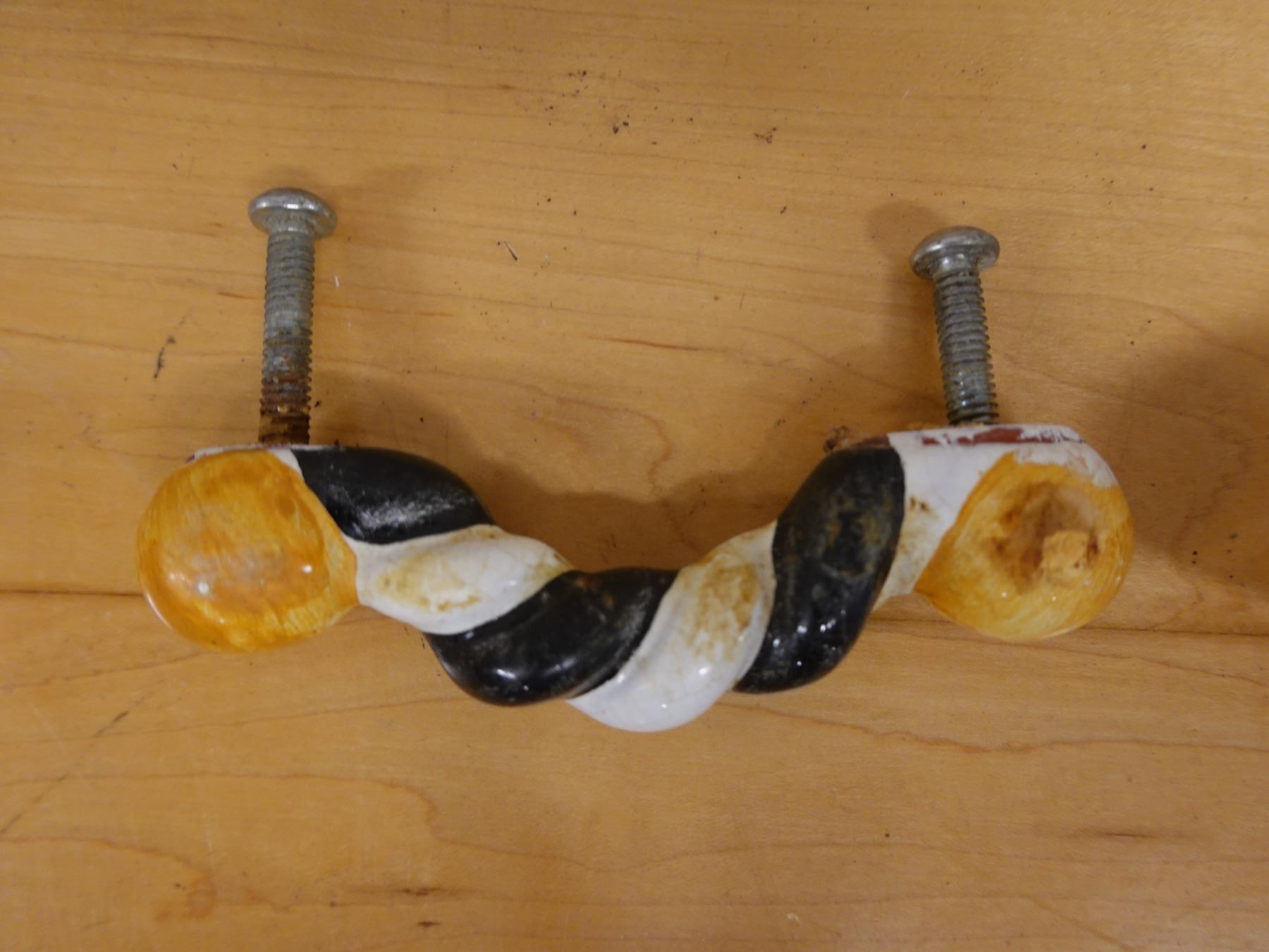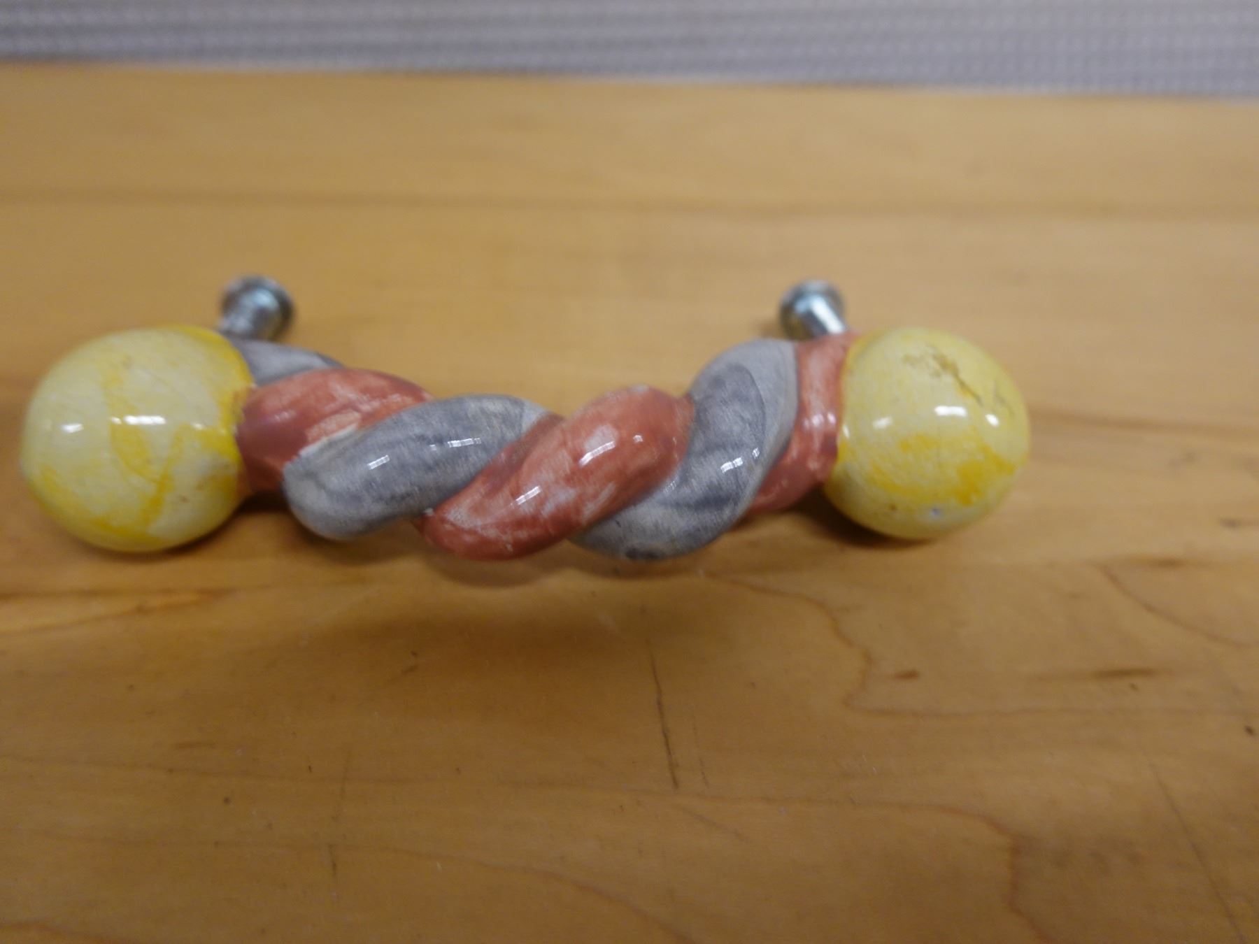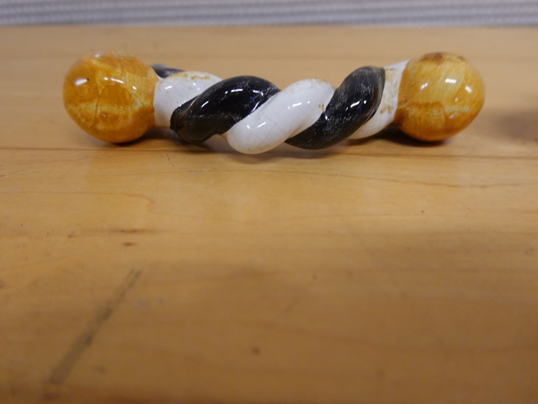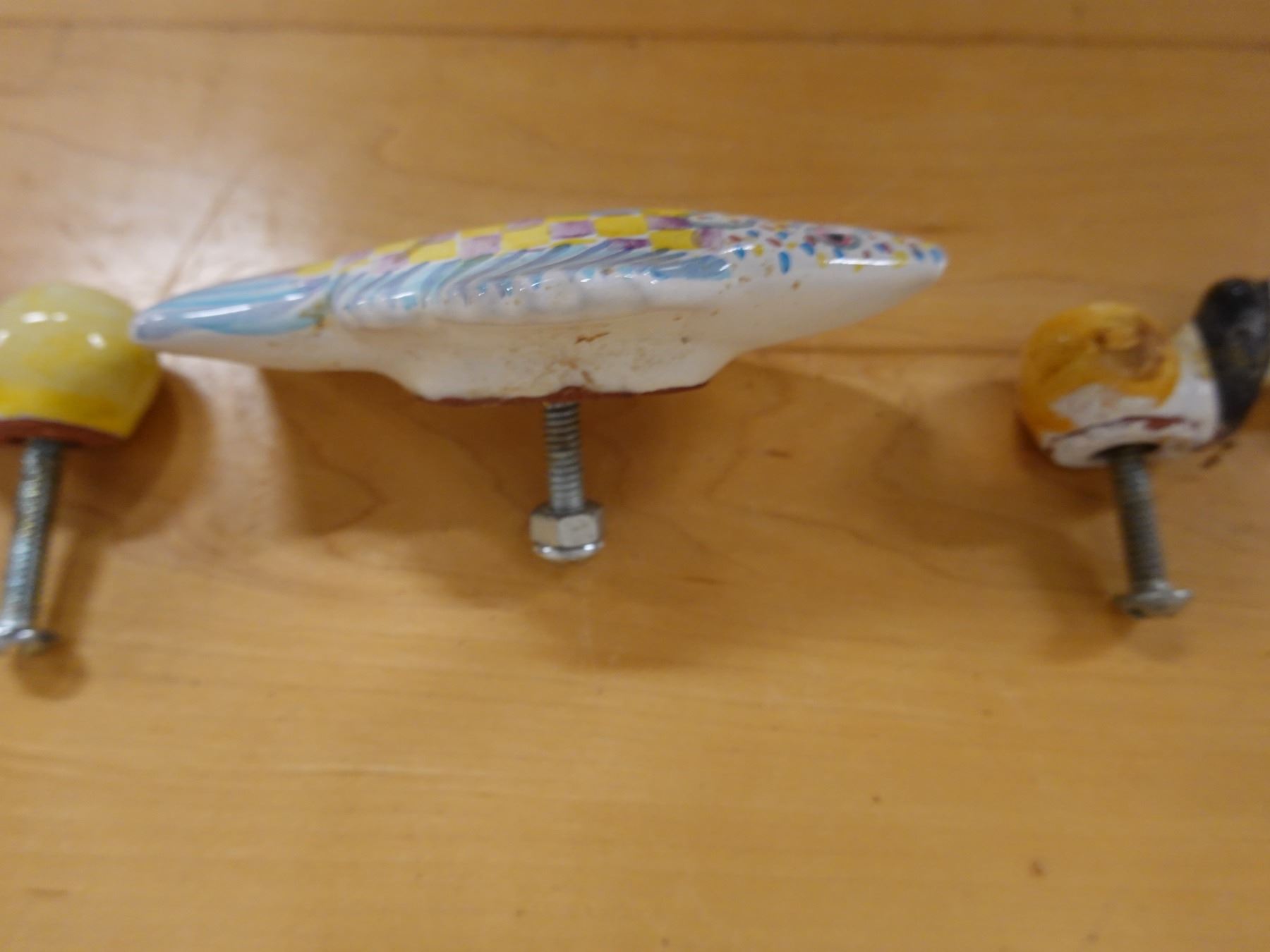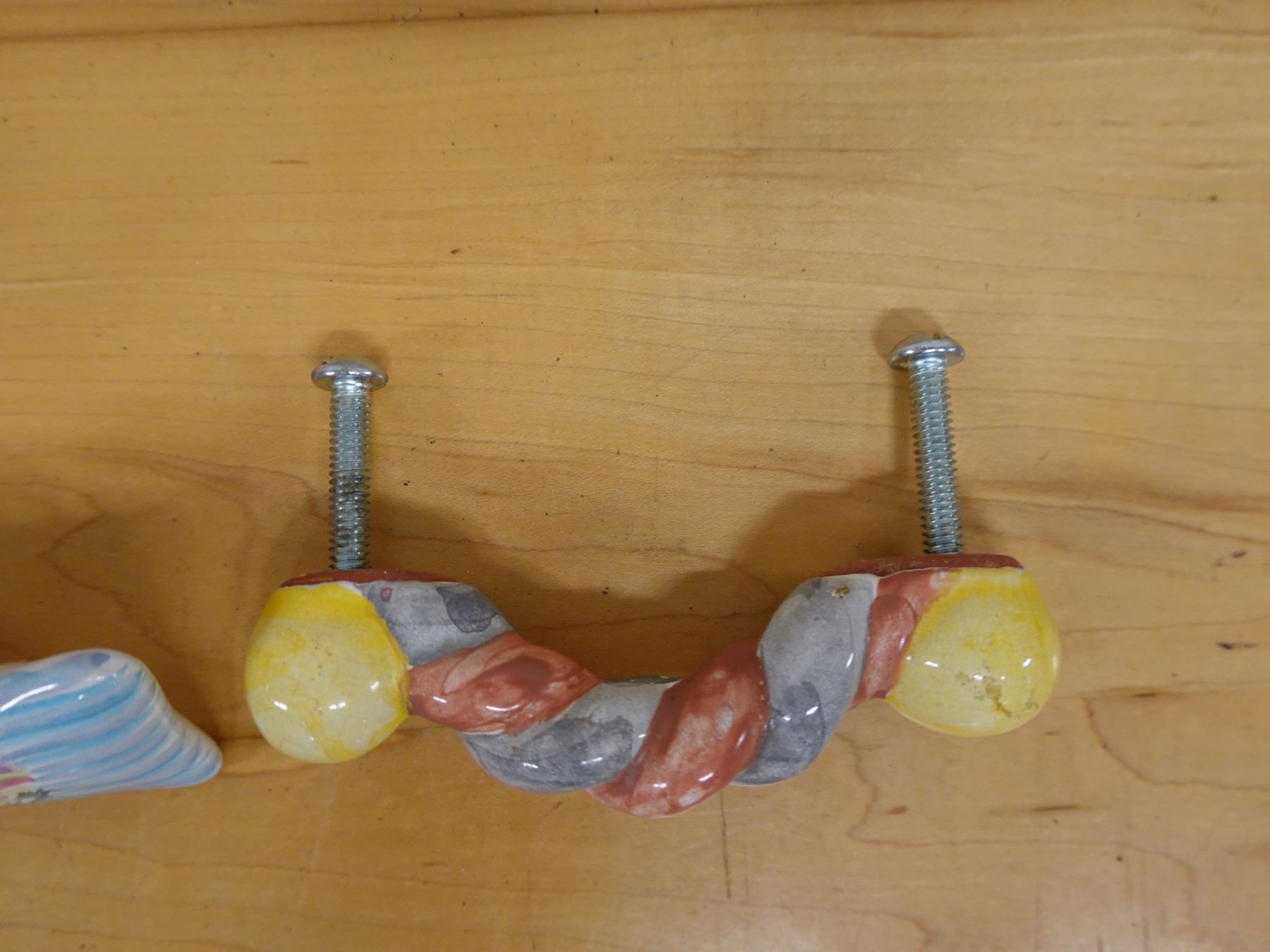 Qty 3 Mackenzie Childs Ceramic Cabinet Pulls: 2 Ropes & 1 Fish, Misc Sizes