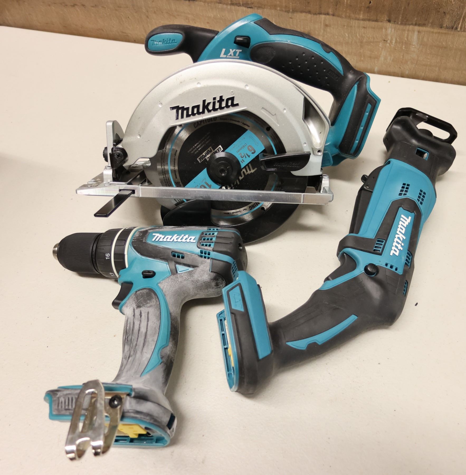 Qty 3 Makita Power Tools: XPH01 Hammer Drill, XRJ01 Reciprocating Saw & XSS02 Circular Saw