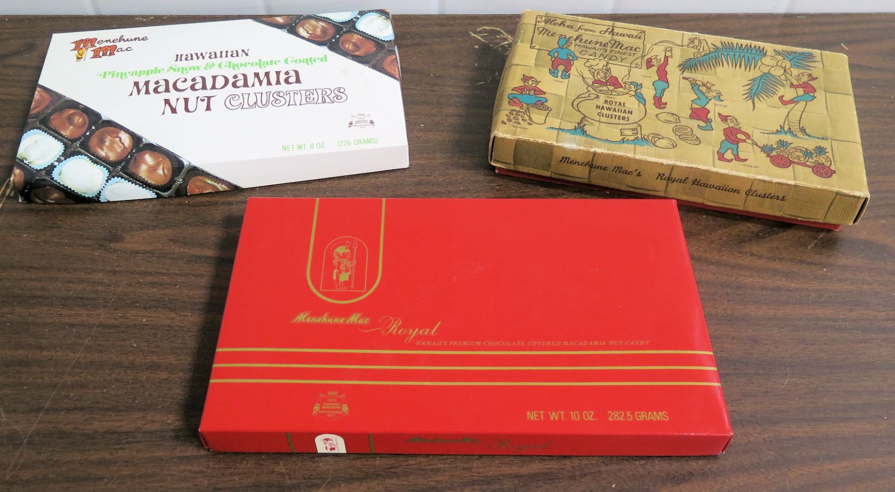 Qty 3 Menehune Mac Candy Boxes, Different Design (Empty)