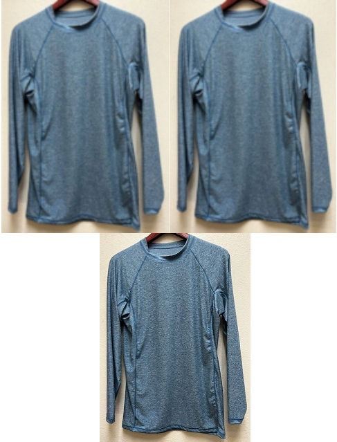 Qty 3 Mens Performance Fit Long Sleeve Lycra UV Tops, Royal Heather Blue, Size XL