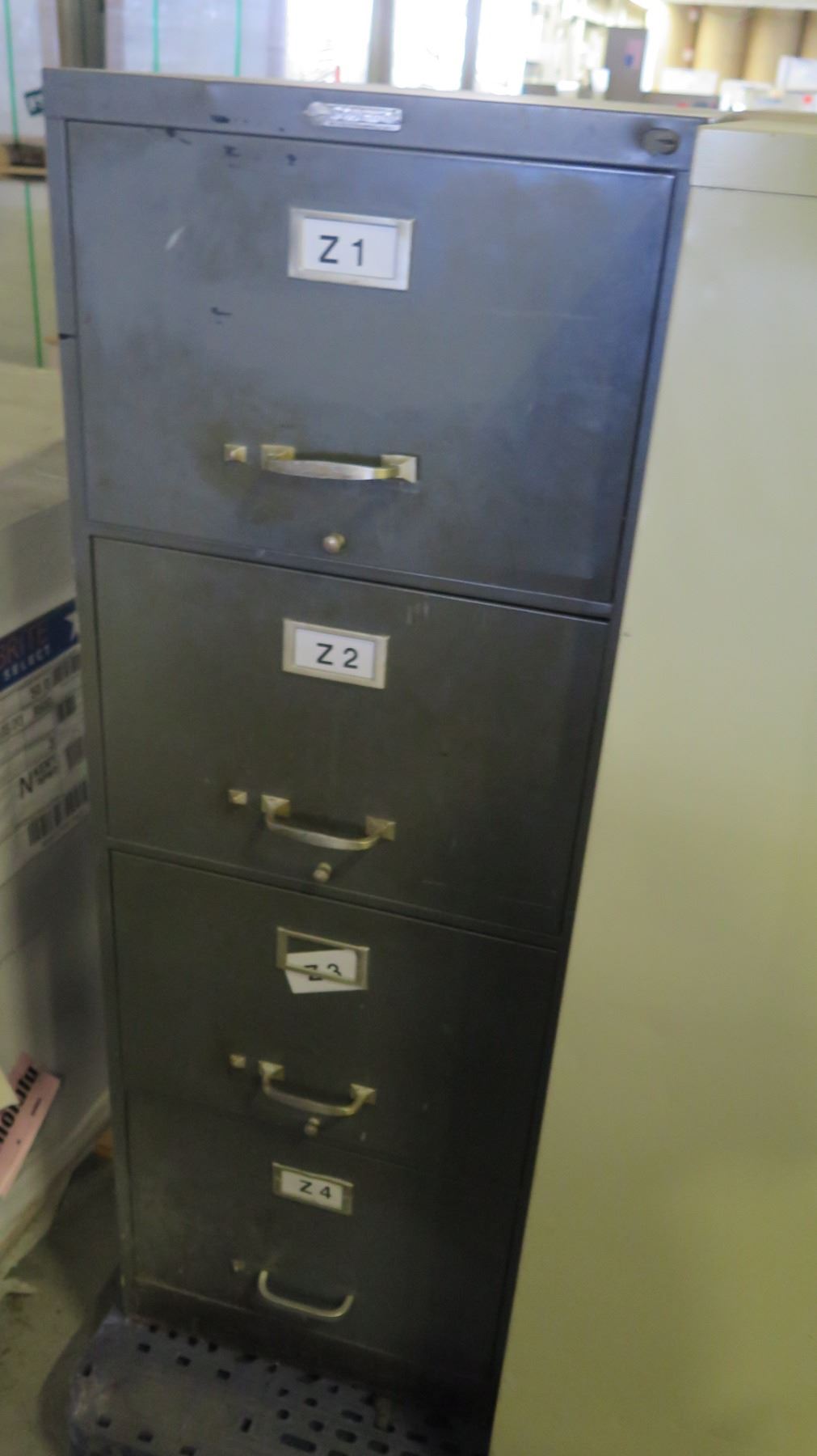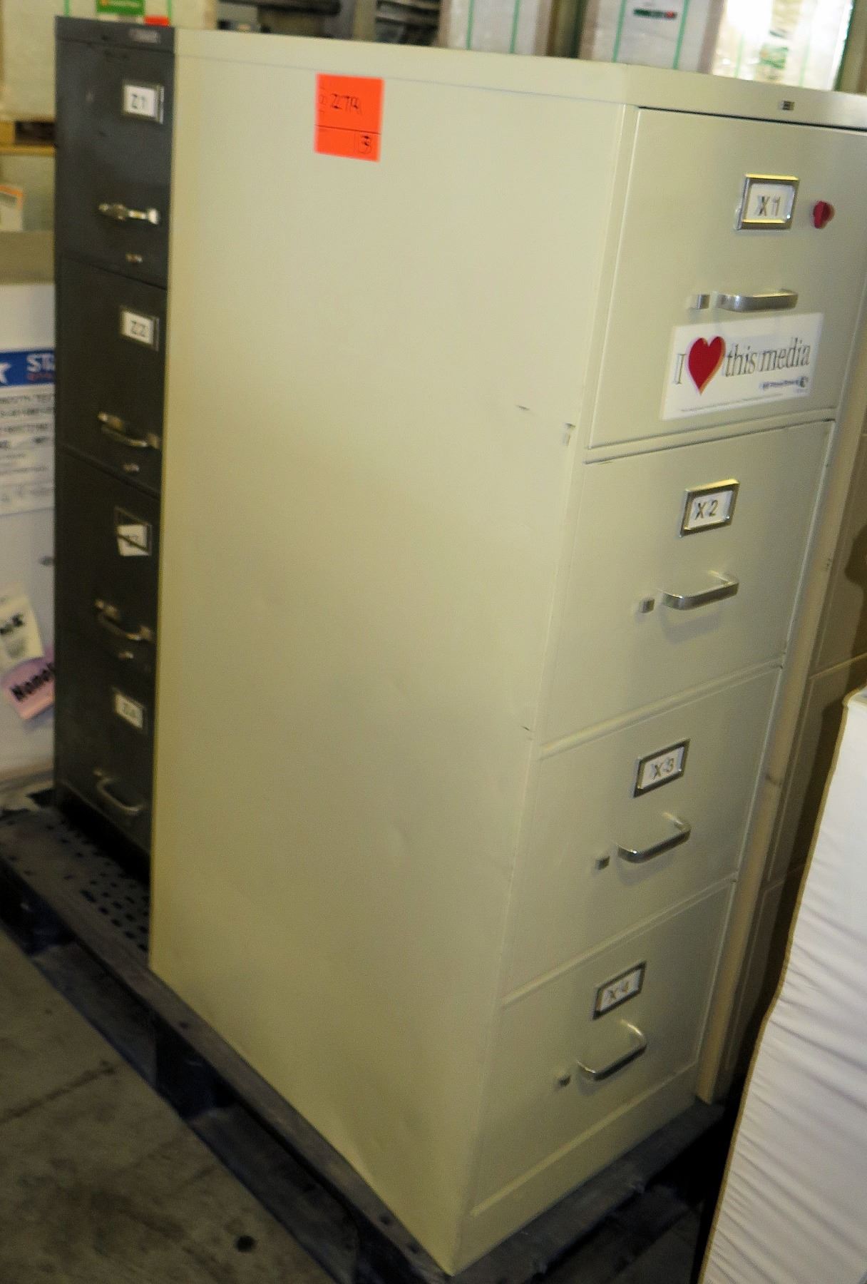 Qty 3 Metal 4 Drawer Filing Cabinets - 1 Beige/1 Drk Gray/1 Brown