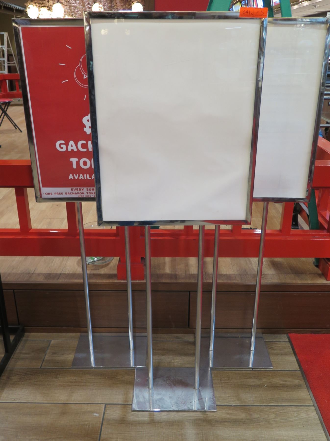 Qty 3 Metal Display Signs on Pedestal Base 23"x28"x60"H