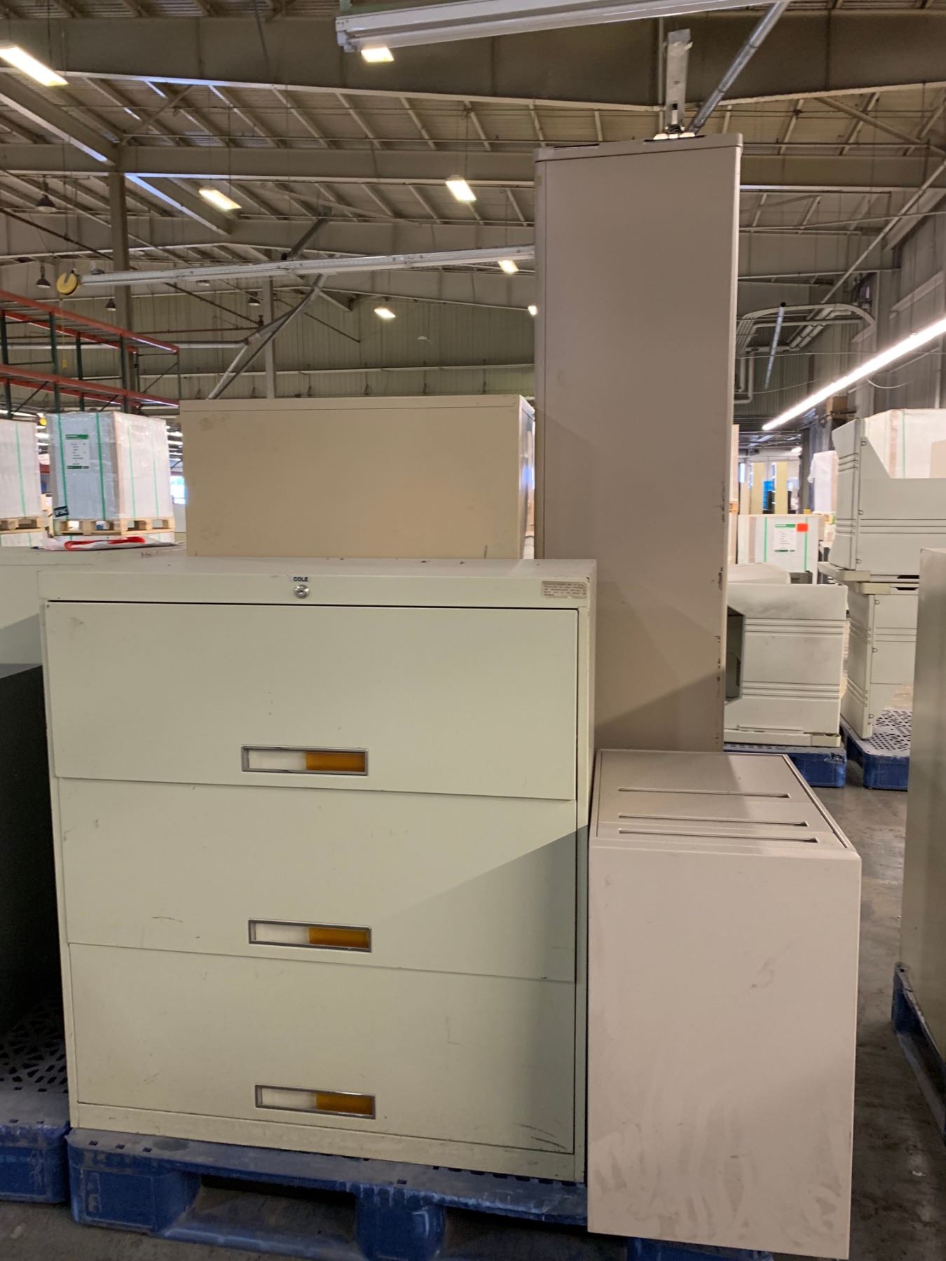 Qty 3 Metal Filing Cabinets w/ Drawers, 1 Tall Metal Cabinet
