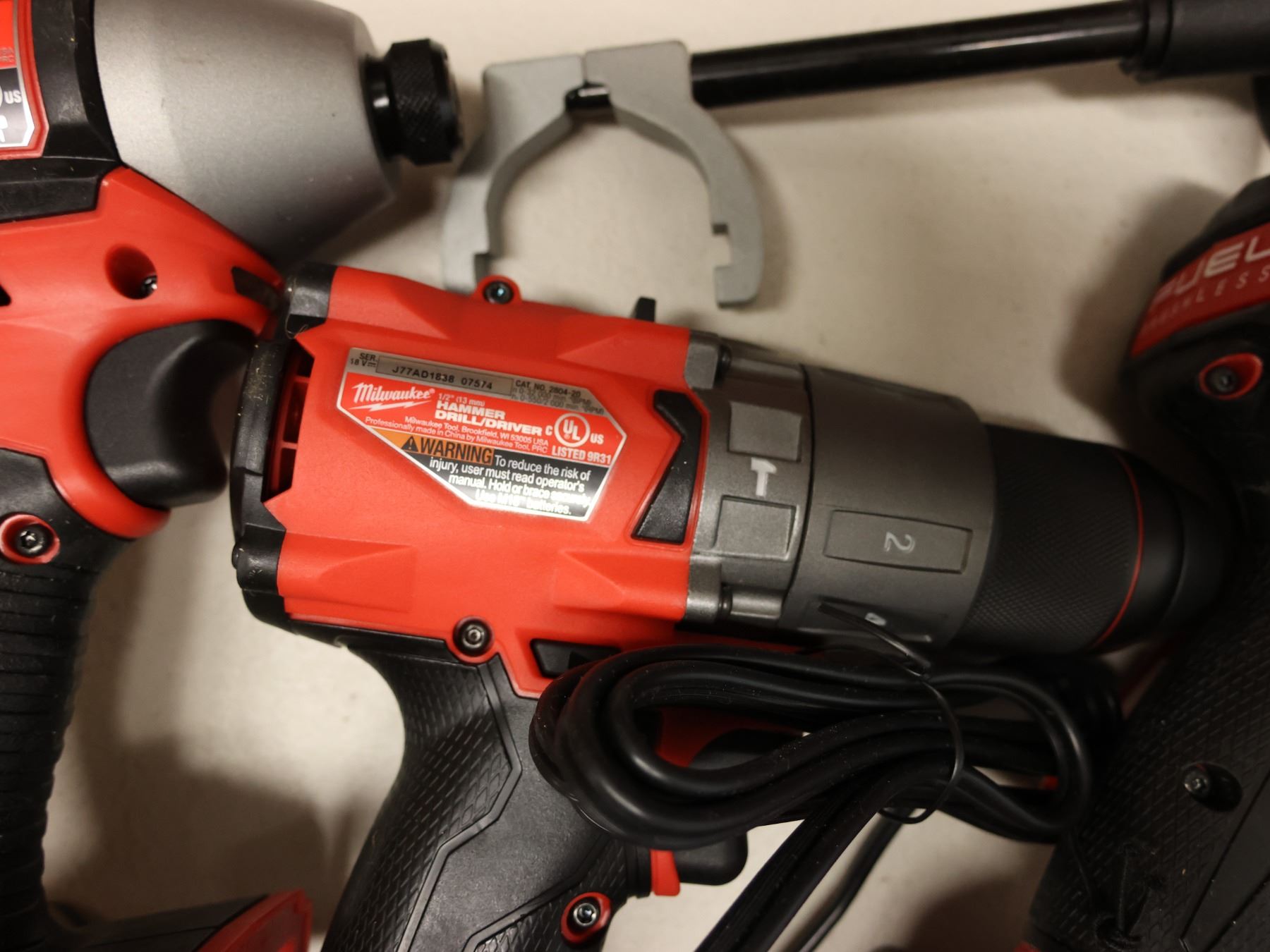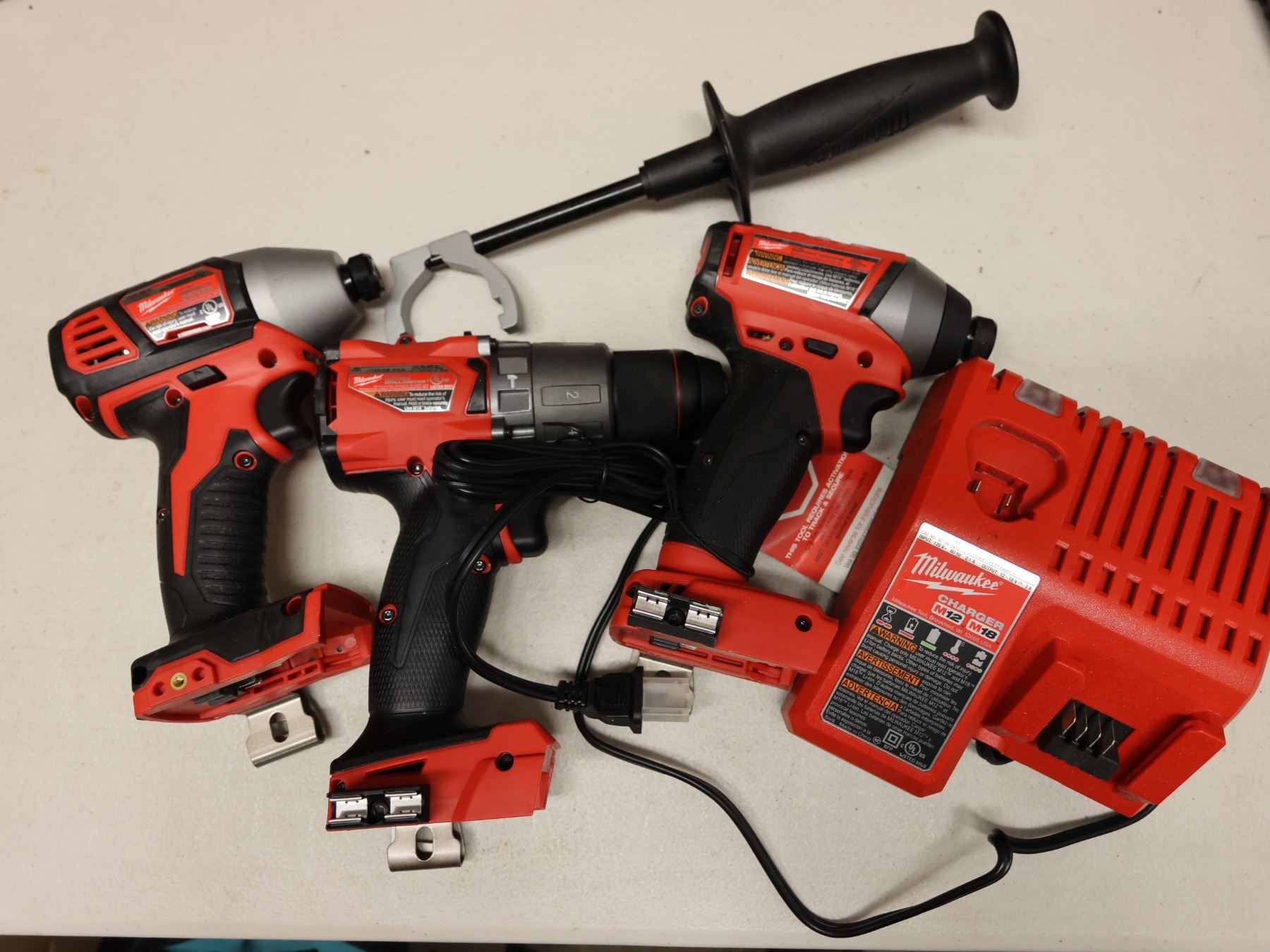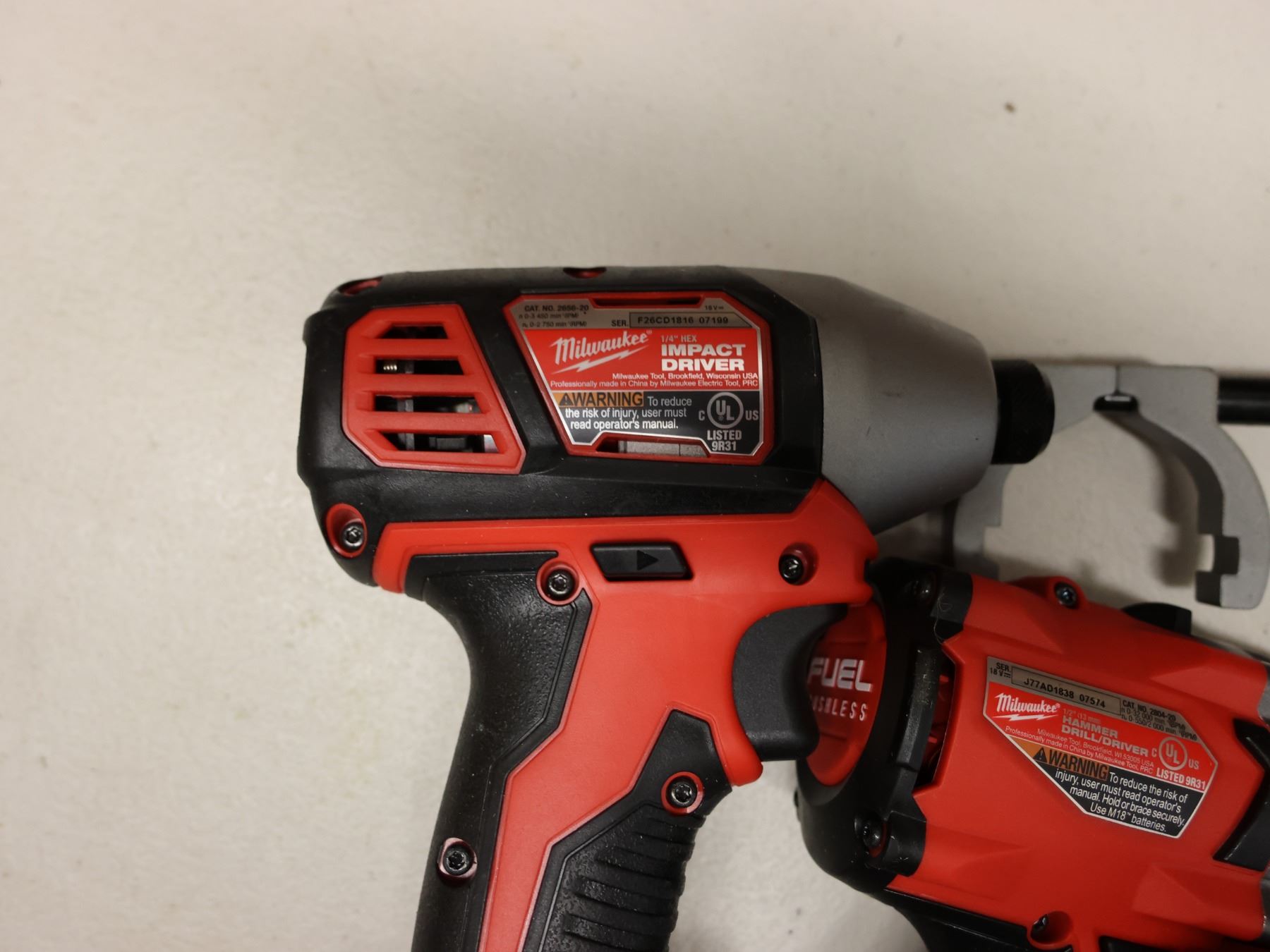 Qty 3 Milwaukee Power Tools & 1 Charger: 2757-20 & 2656-20 Impact Drivers & 2804-20 Hammerdrill/Driver