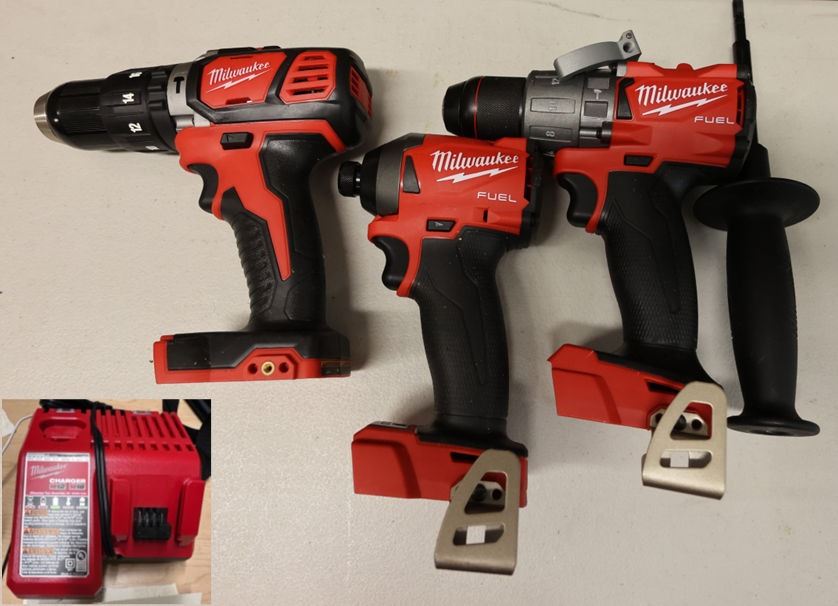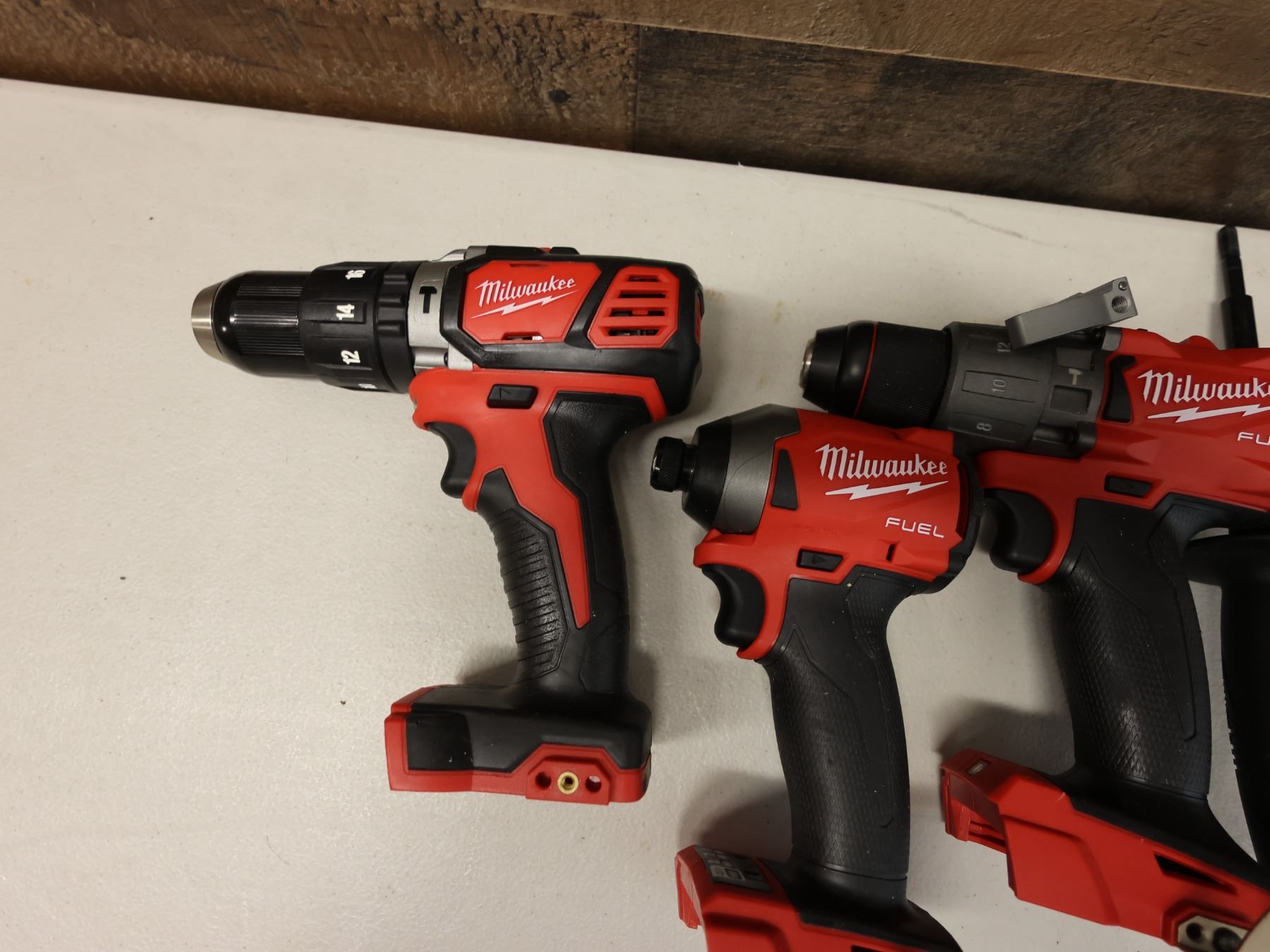 Qty 3 Milwaukee Power Tools & 1 Charger: 2804-20 Hammer Drill/Driver, Impact Driver & 2607-20 Hammer Drill