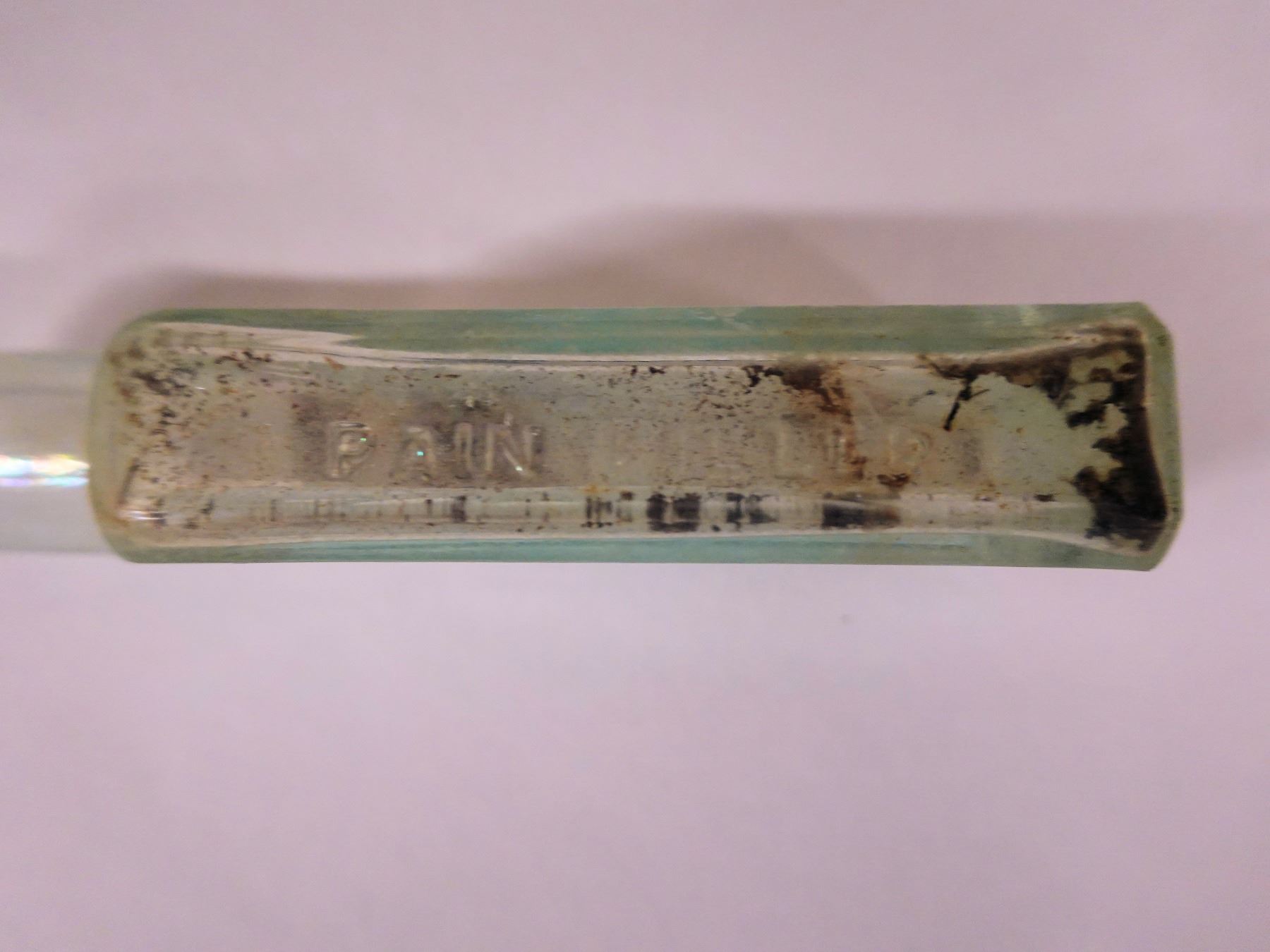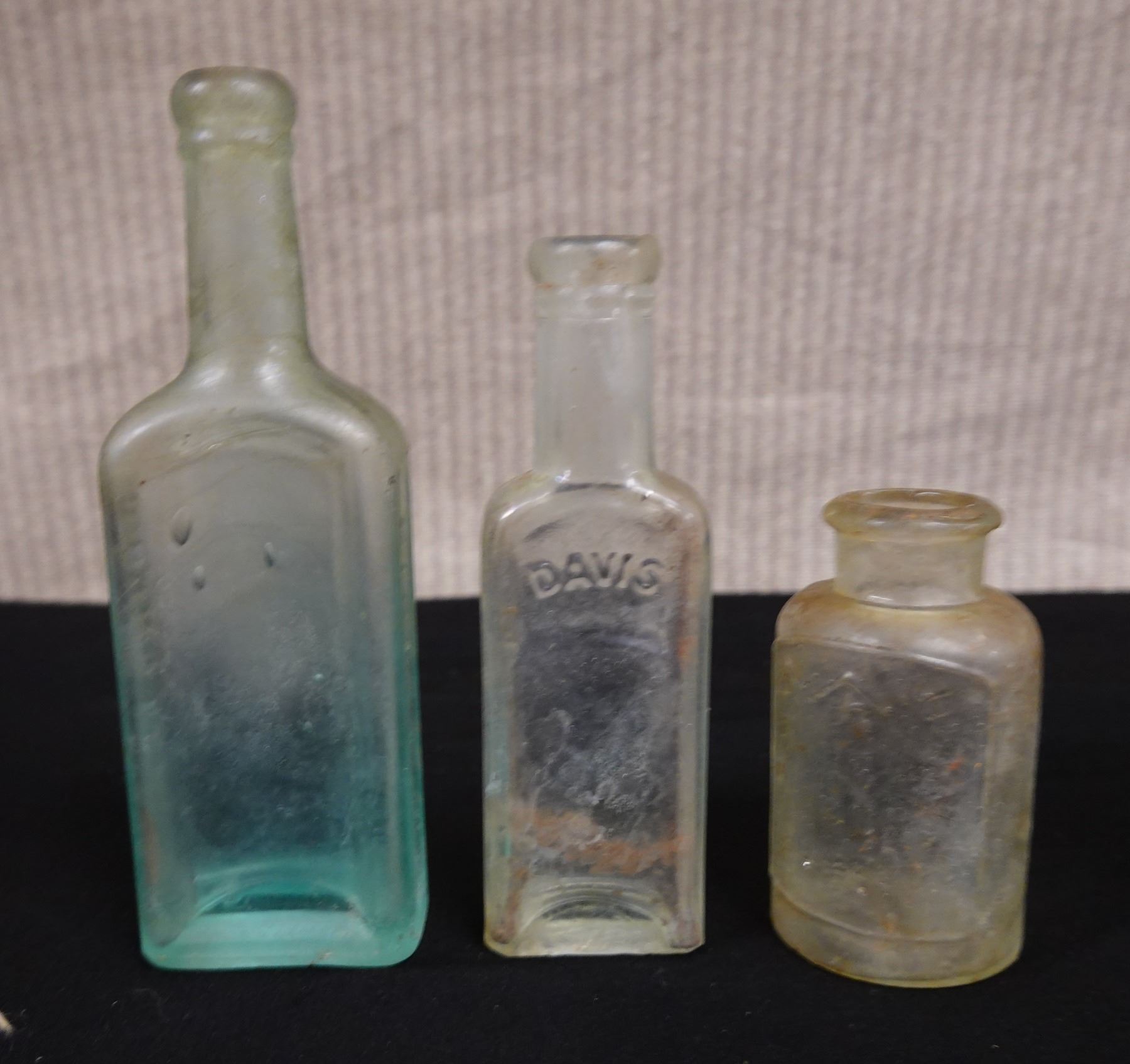 Qty 3 Miniature Glass Bottles: Marked Davis, Castoria, etc, Misc Sizes to 6 H