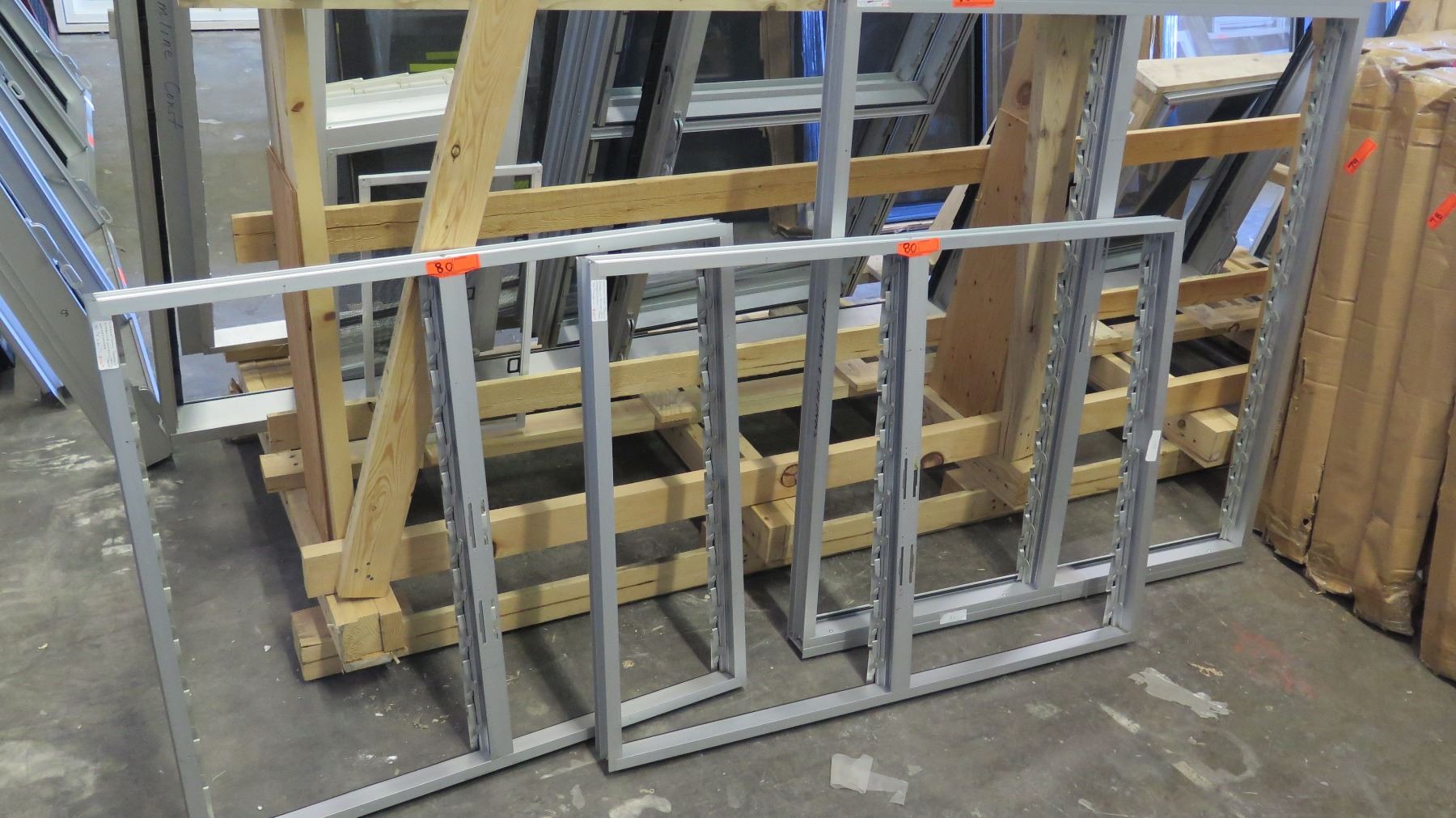 Qty 3 Misc. 4" Jalousie Window Frame (#1) 48-1/4" x 52", (#2) 48-1/4" x 36-1/4", (#3) 3/8" x 36-1/4"