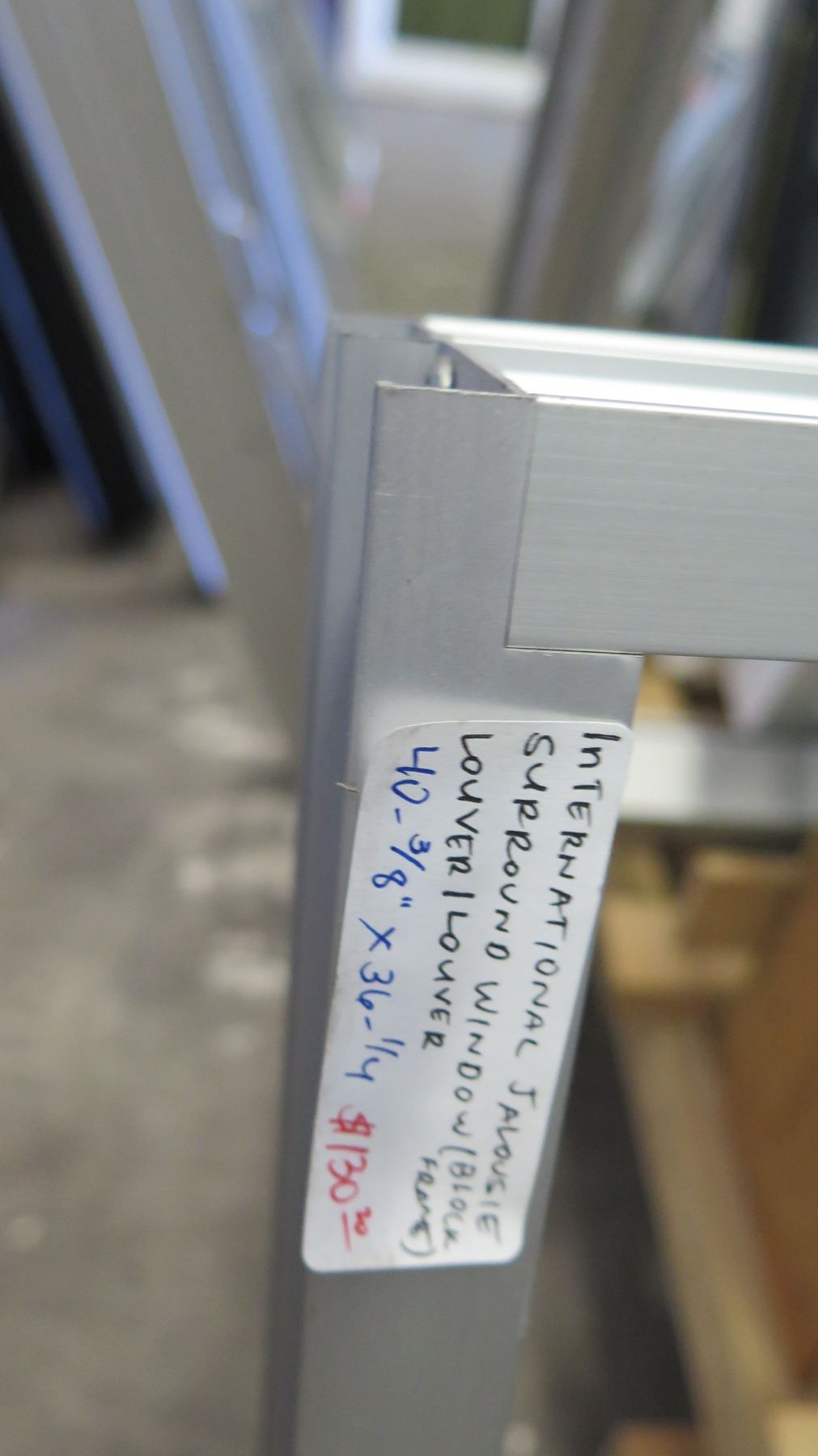 Qty 3 Misc. 4" Jalousie Surround Windows (#1) 4" International Jalousie Surround (Block Frame) / Clear Ano / With Fillers Louver | Louver 48-1/4" x 52", (#2) 4" International Jalousie Surround (Block Frame) / Clear Ano / With Fillers Louver | Louver 48-1/4" x 36-1/4" (#3) 4" International Jalousie Surround (Block Frame) / Clear Ano / With Fillers Louver | Louver 40-3/8" x 36-1/4". No Glass Panes